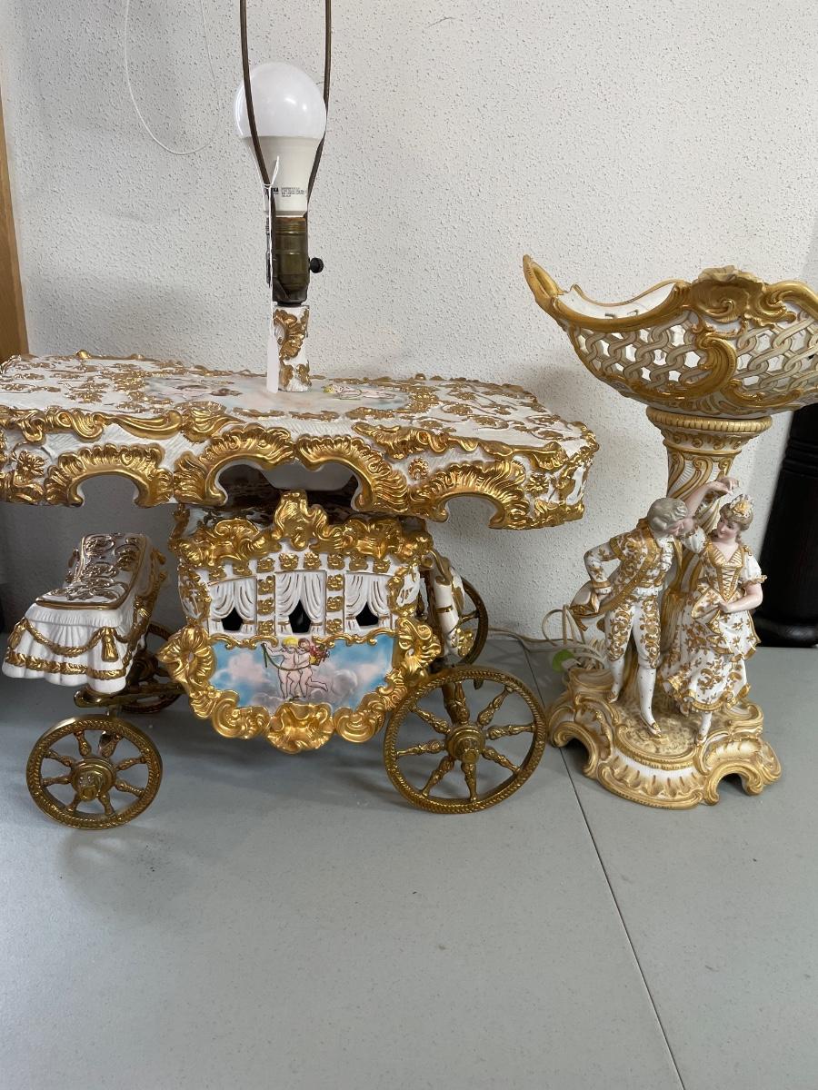 Gorgeous Porcelain Carriage Lamp & Pedestal Vase