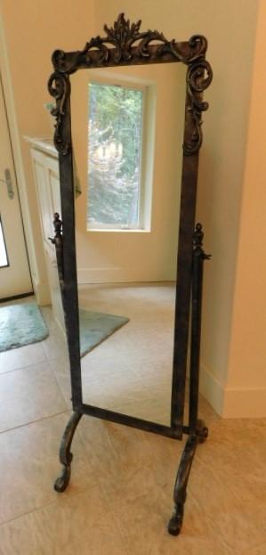 Gorgeous Decorative Metal Frame Cheval Mirror 22"x63" this mirror and frame is extremely heavy and well built
