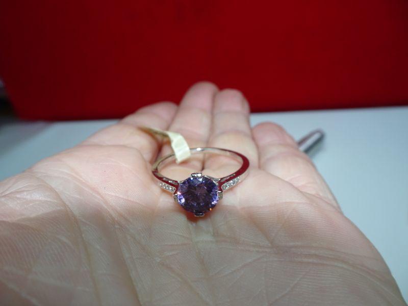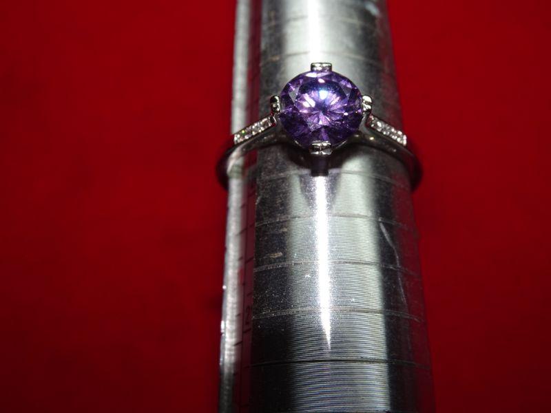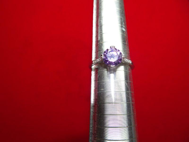 Gorgeous Purple Colored Amethyst Rhinestone Ring, Size 10