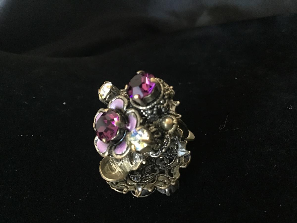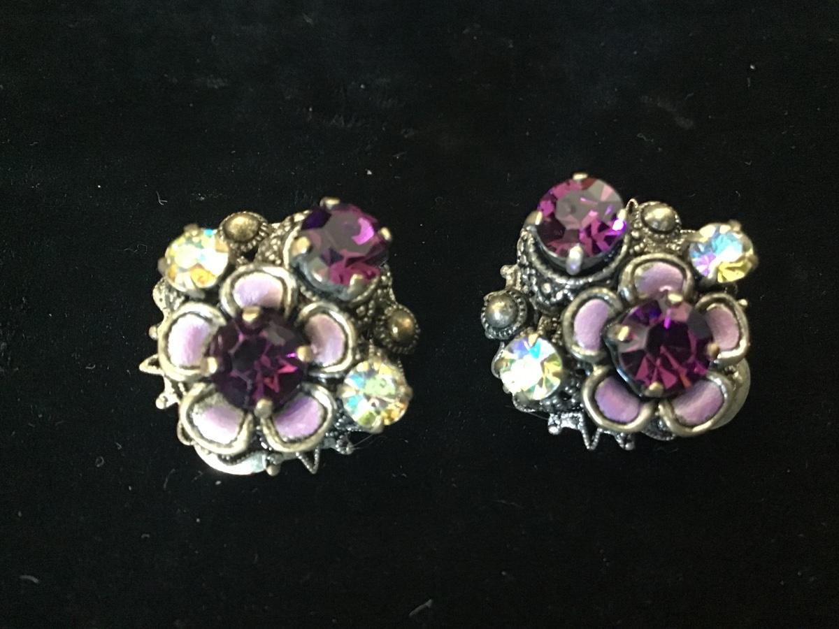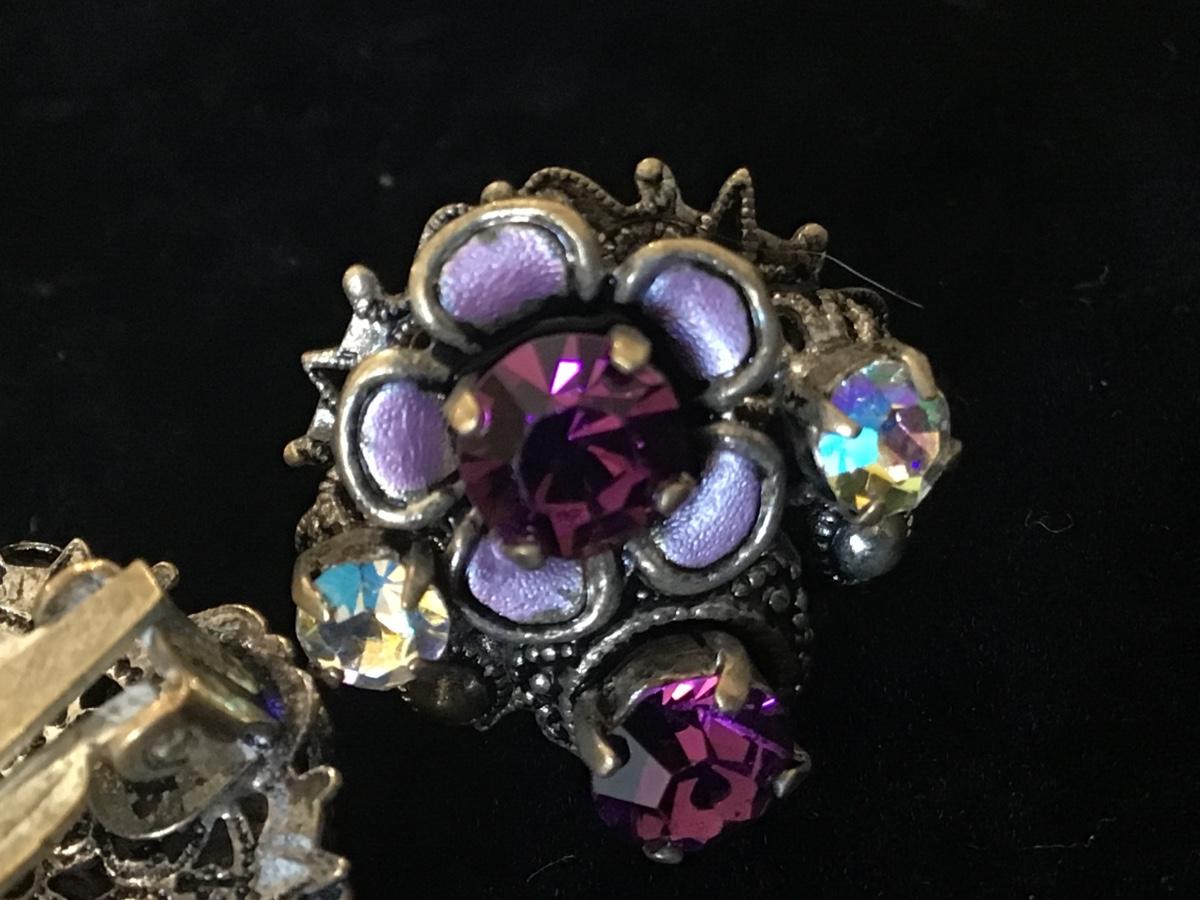 Gorgeous Purple Rhinestone aurora Borealis Enamel Floral Earrings Vintage