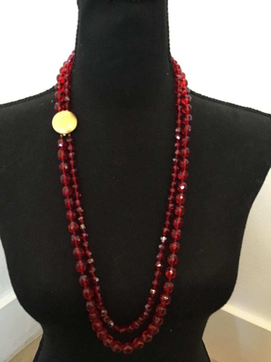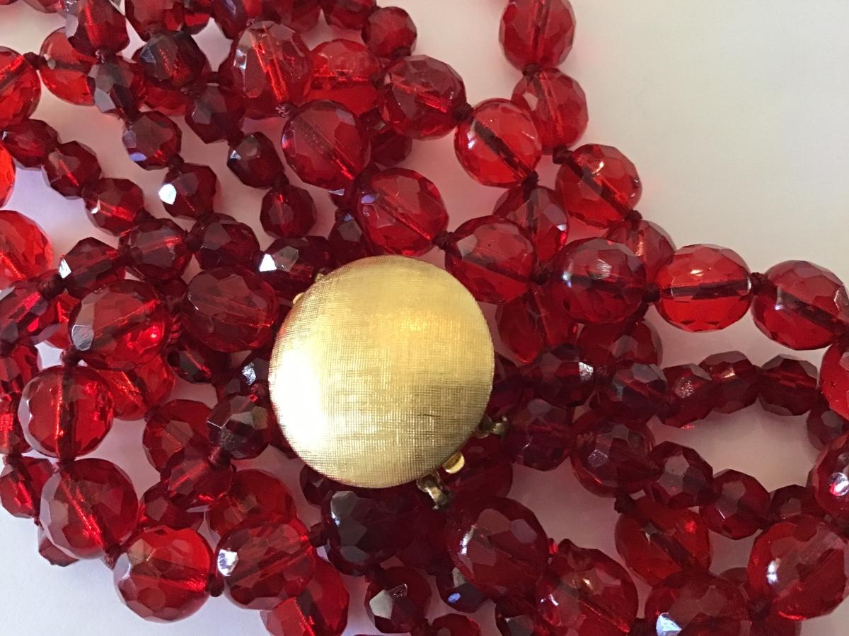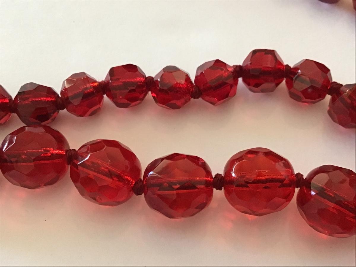 Gorgeous Red Knotted Fauceted Glass Necklace