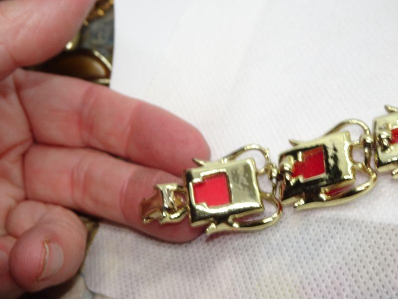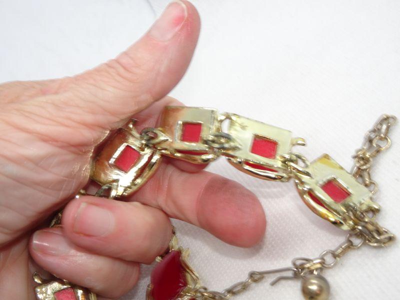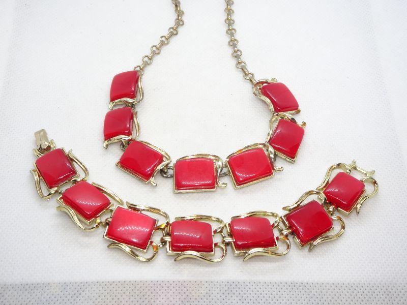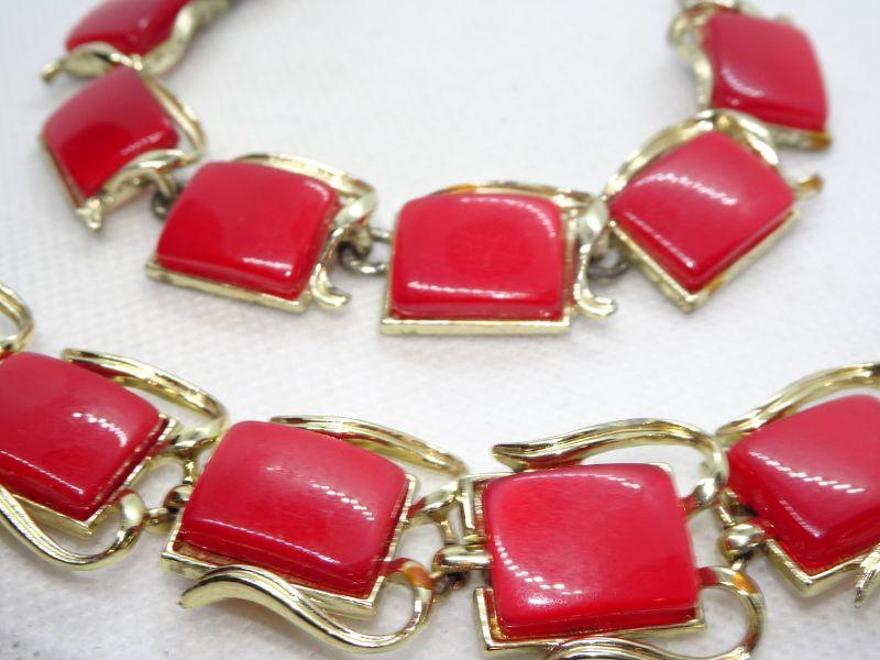 Gorgeous Red Thermoplastic & Gold Tone Necklace & Bracelet Set