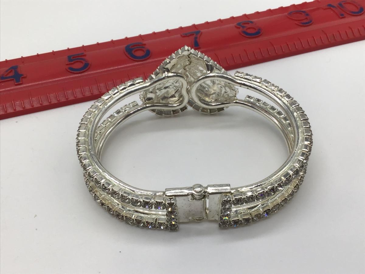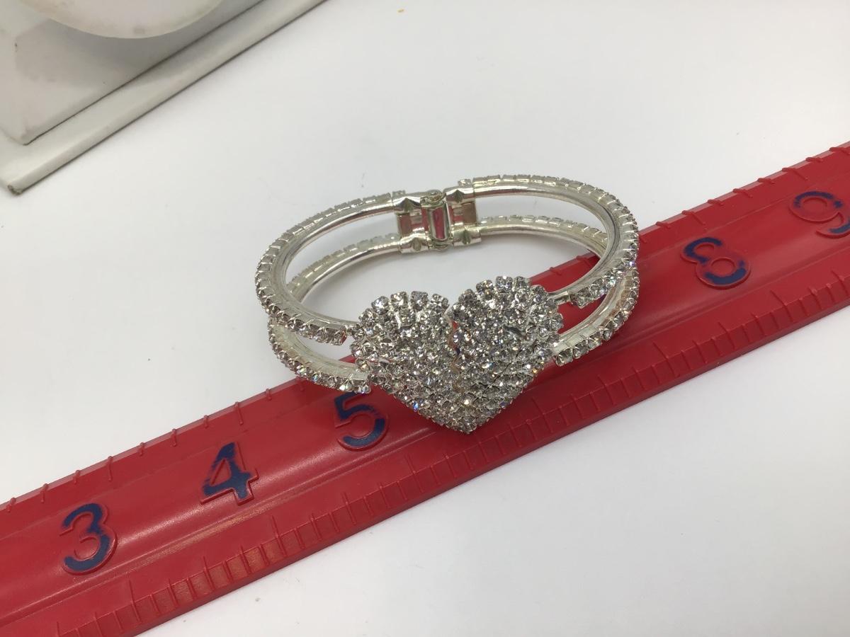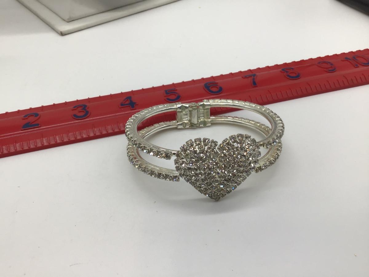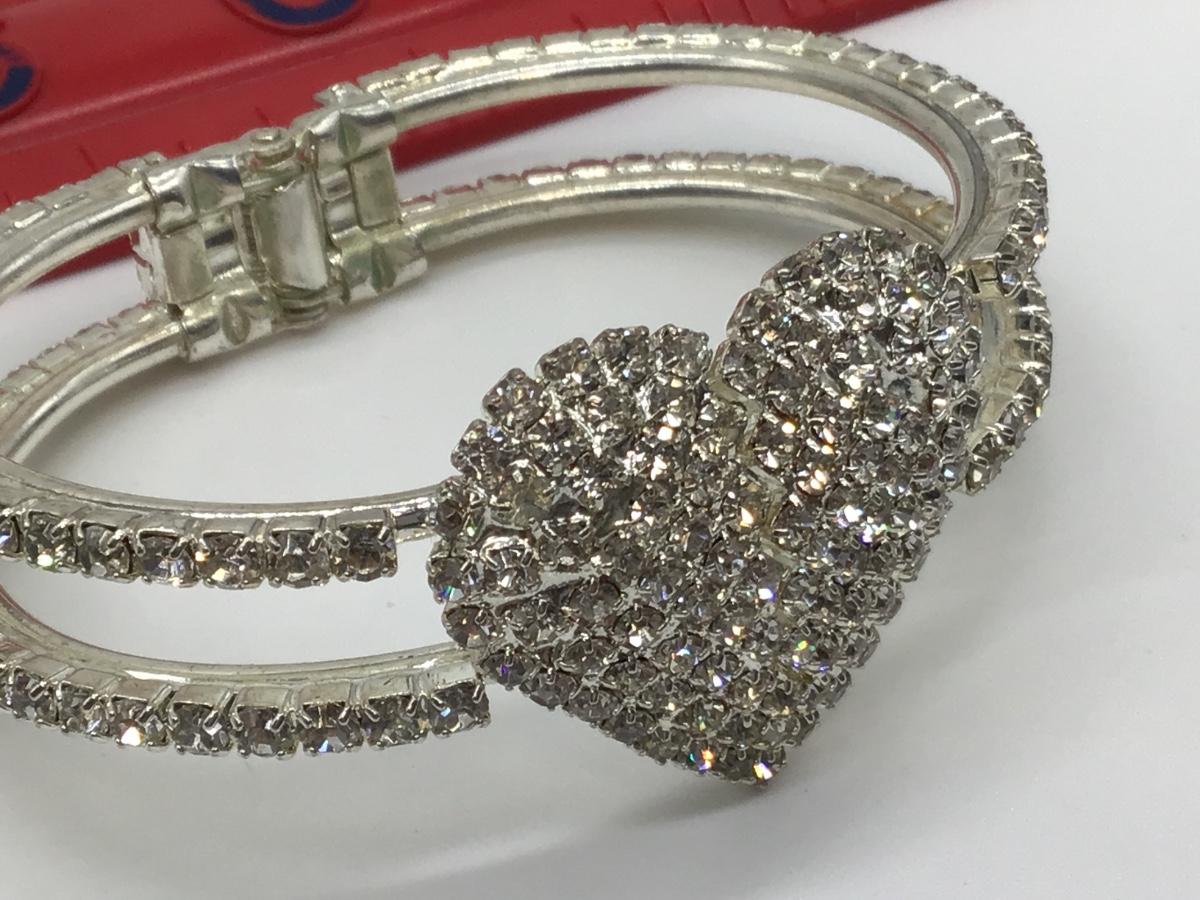 Gorgeous Rhinestone Heart Hinged Bracelet. No stones missing