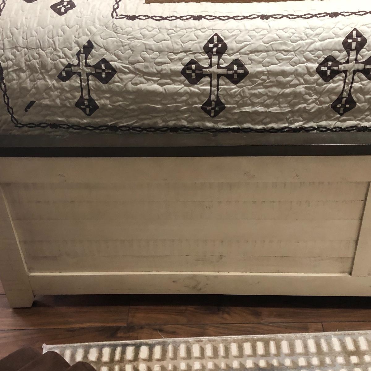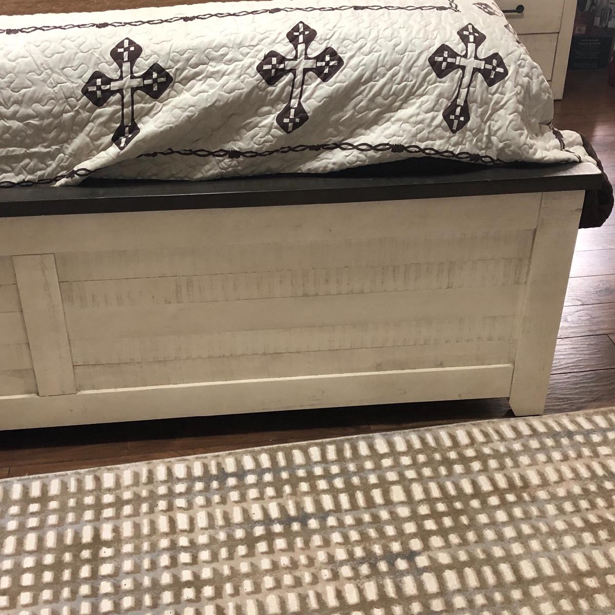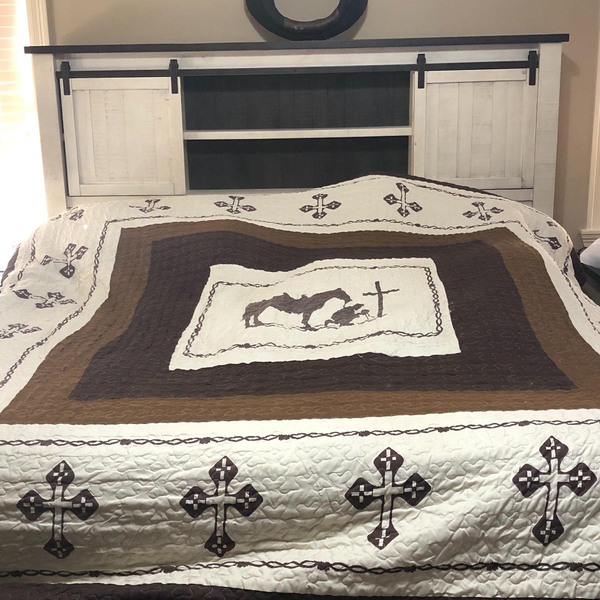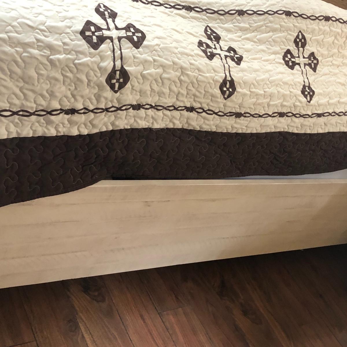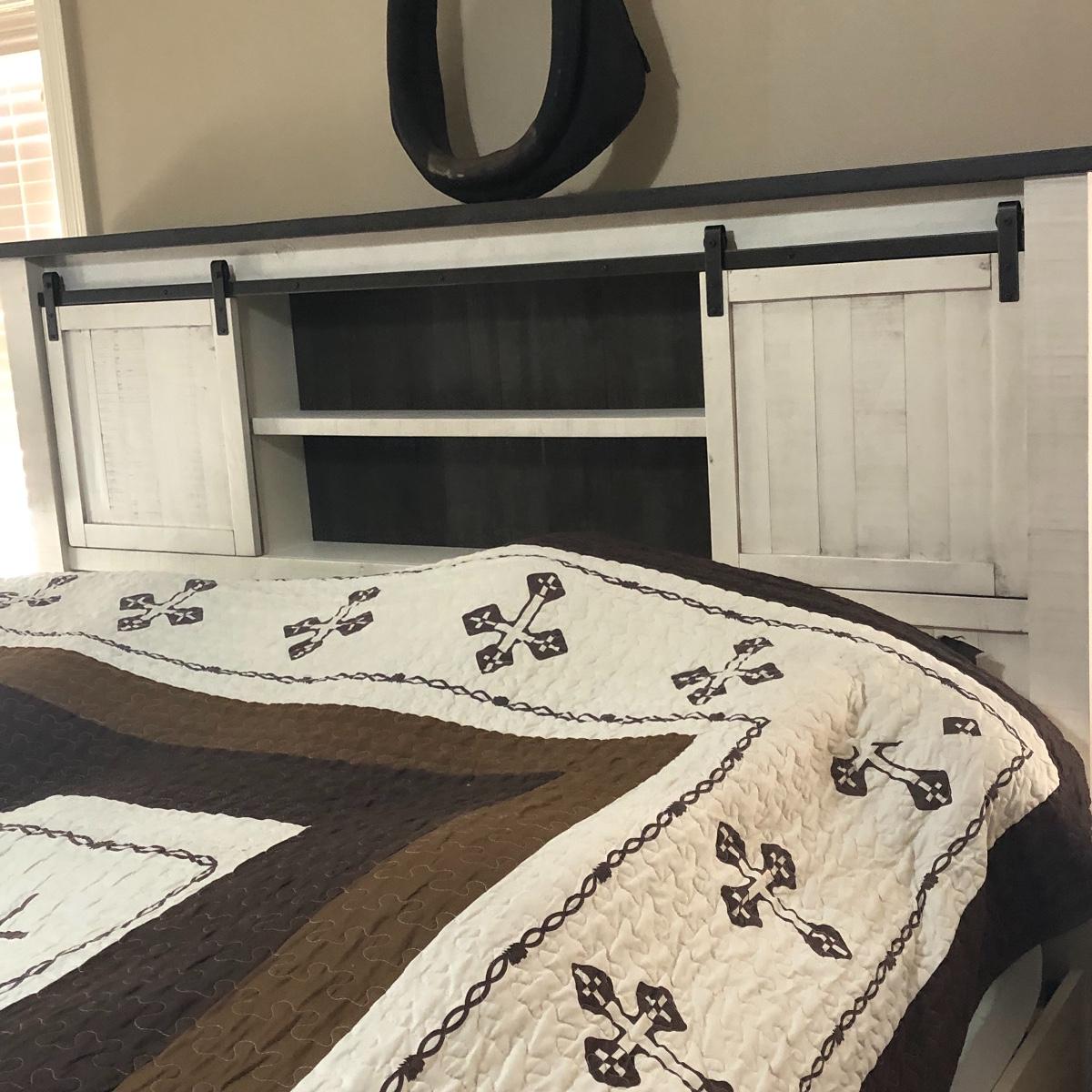 Mattress is not included. This set is like new and stunning. Includes headboard, footboard and all rails included plus the headboard shelf. This set also has the barn doors.
