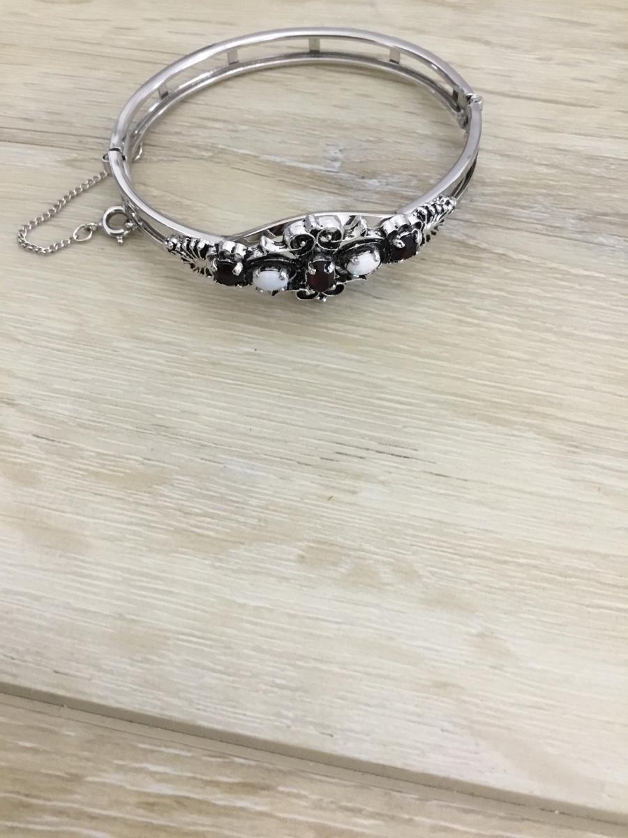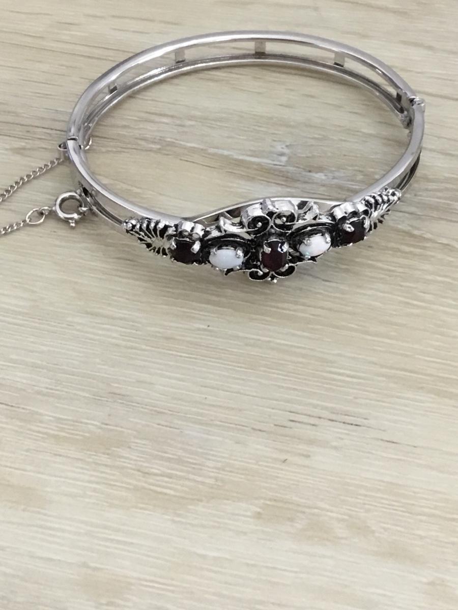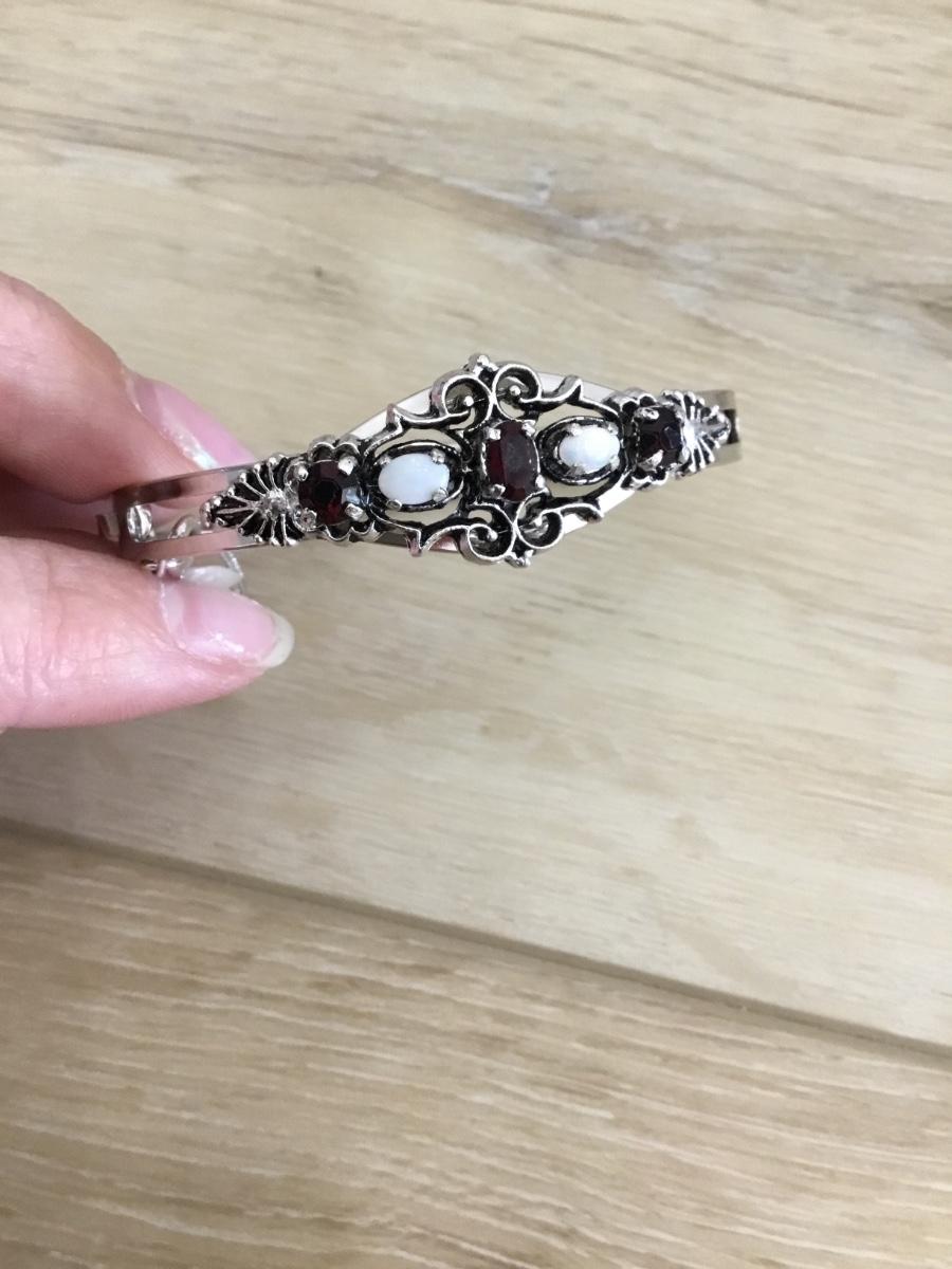 Gorgeous, Sarah Coventry Silver-tone, red ruby stone & opal stone hinged bracelet