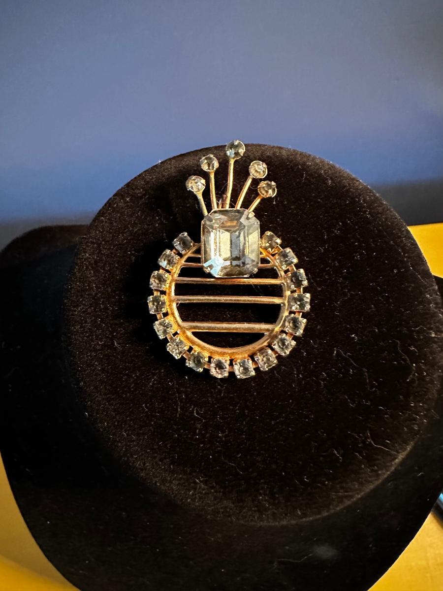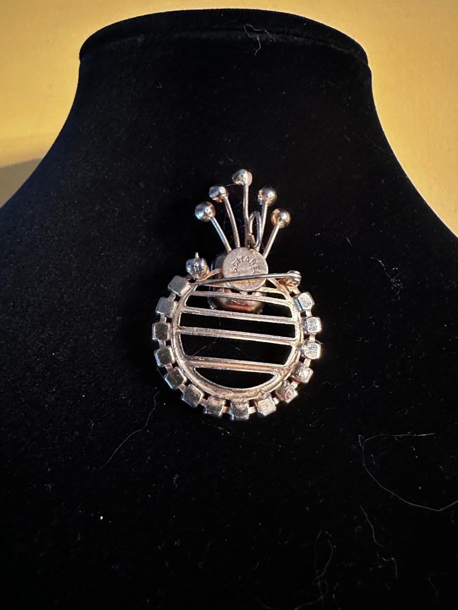 Gorgeous Signed Scitarelli Brooch/Pin with a gold tone backing. Closure still intact and working properly.