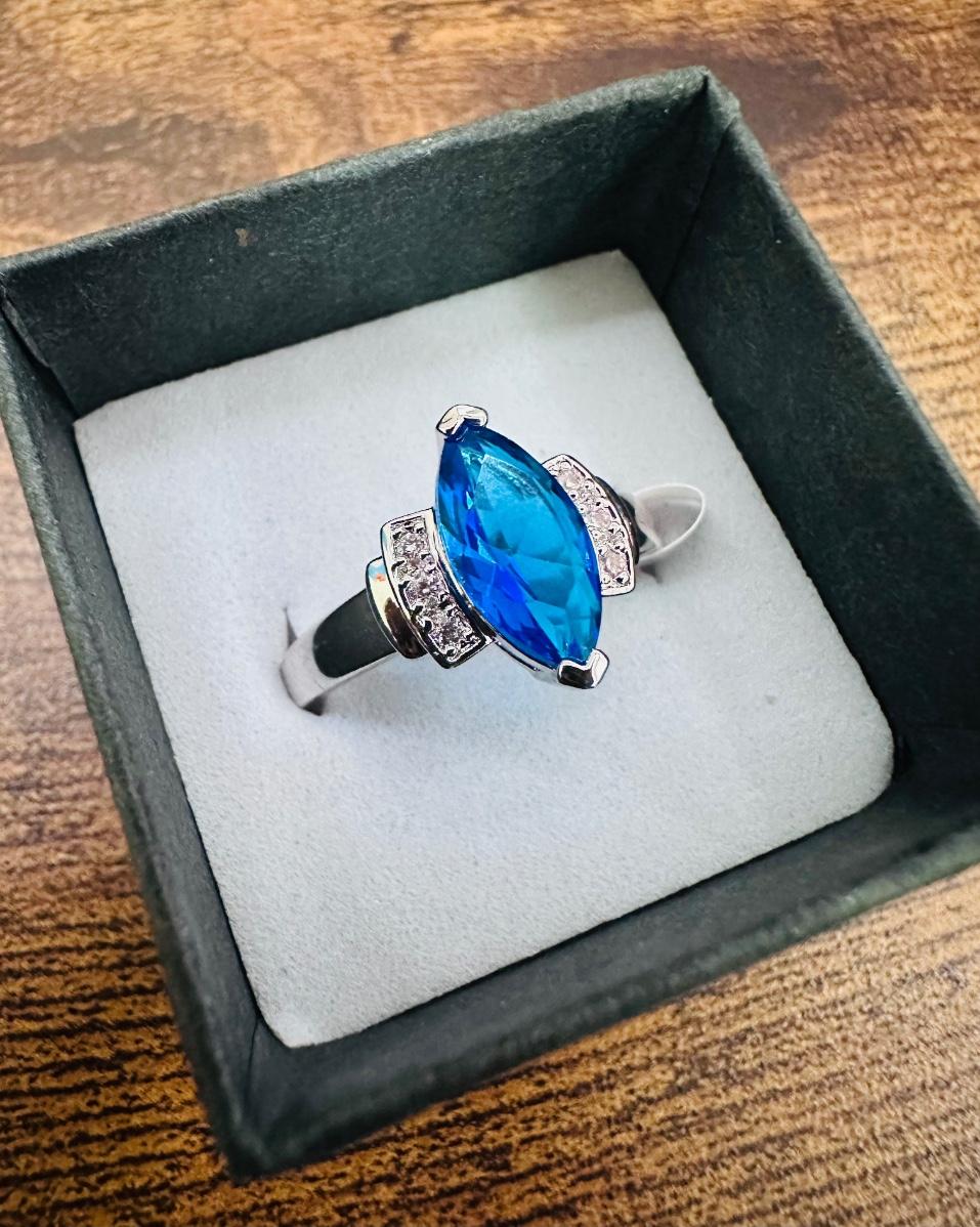 Gorgeous Silver Blue Stone Fashion Ring