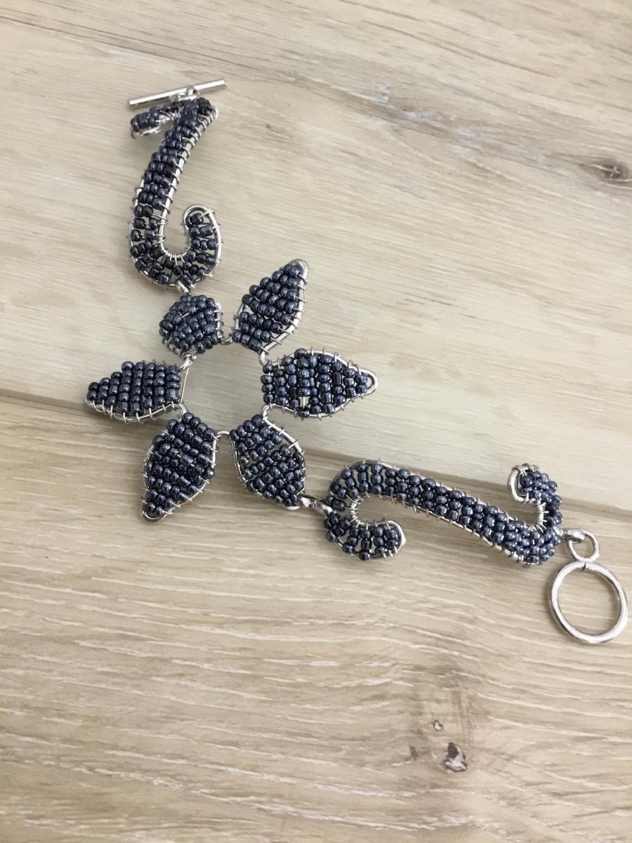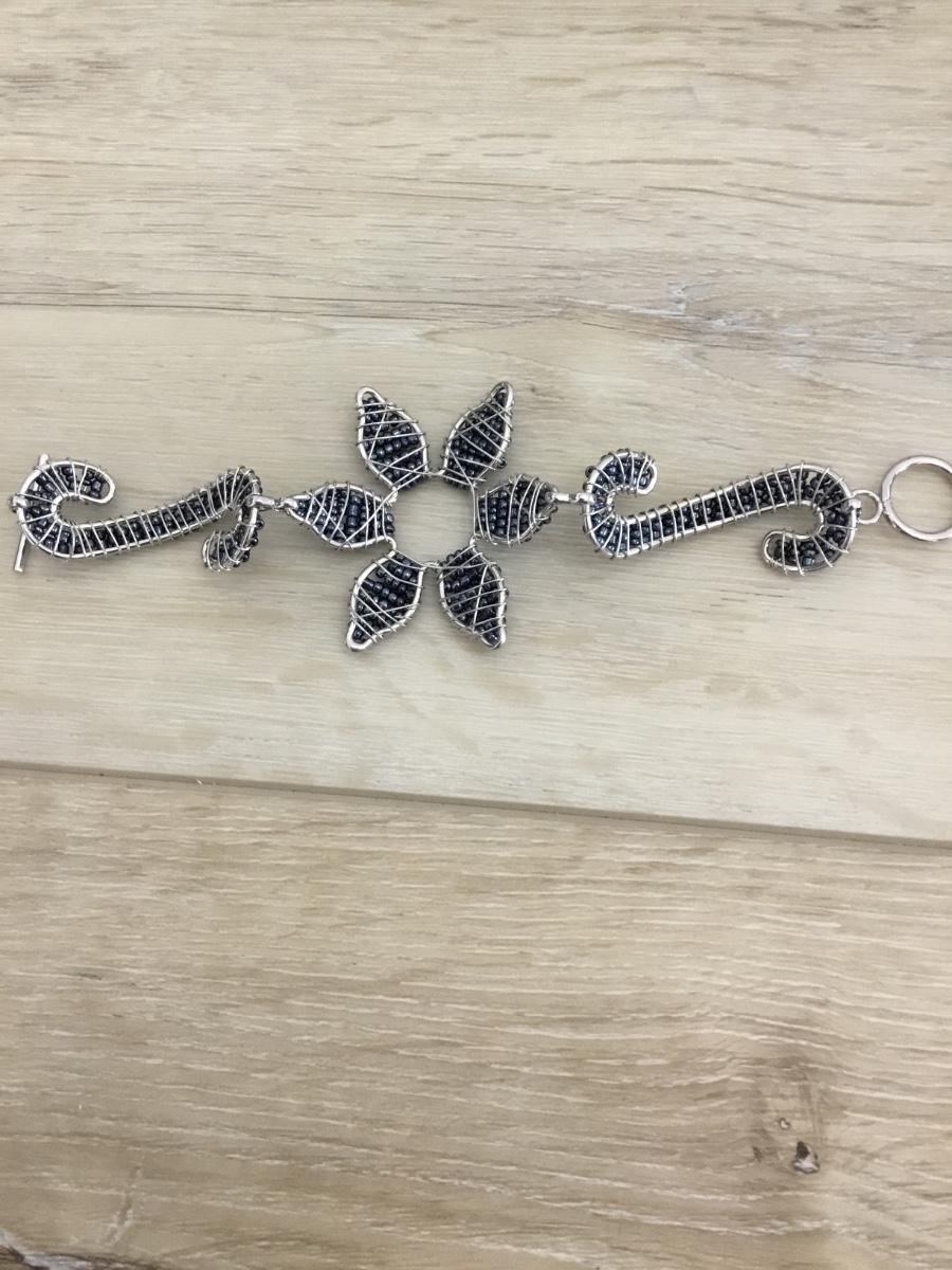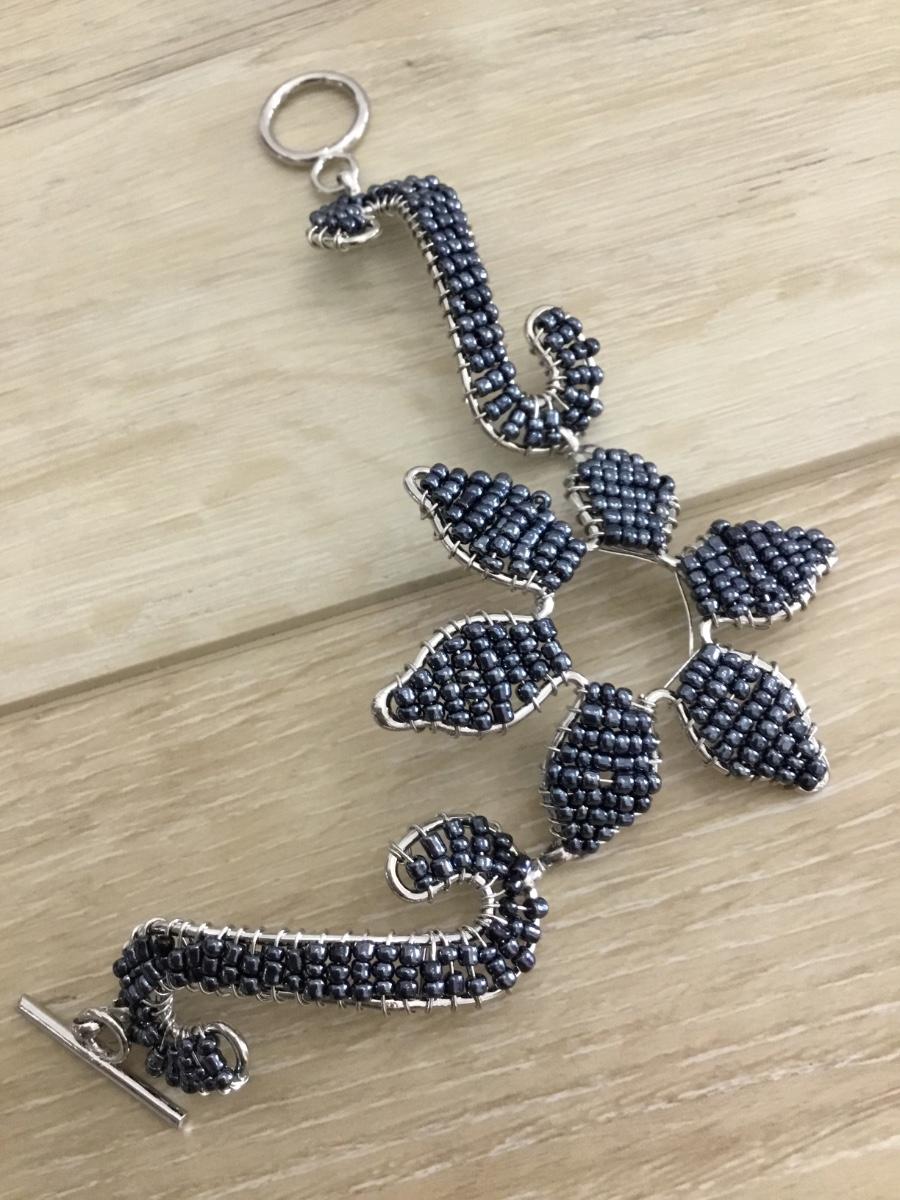 Gorgeous, silver tone wire wrapped Seed bead toggle bracelet