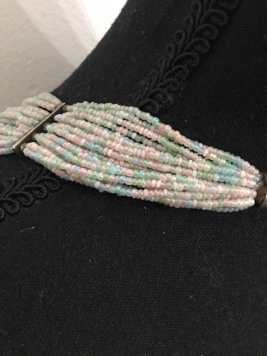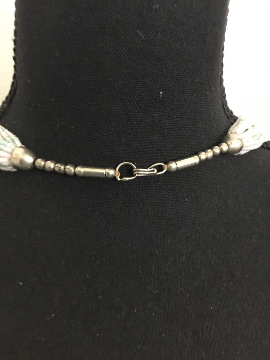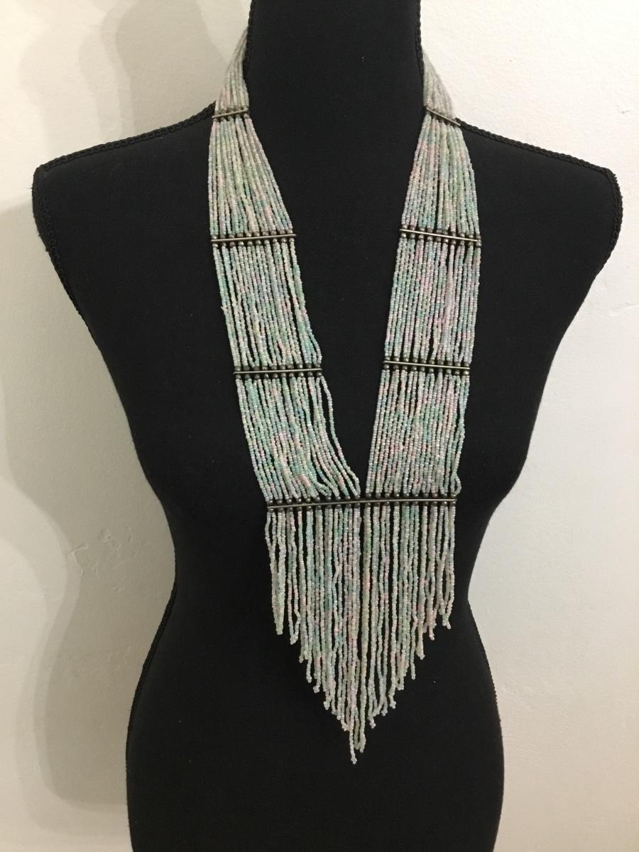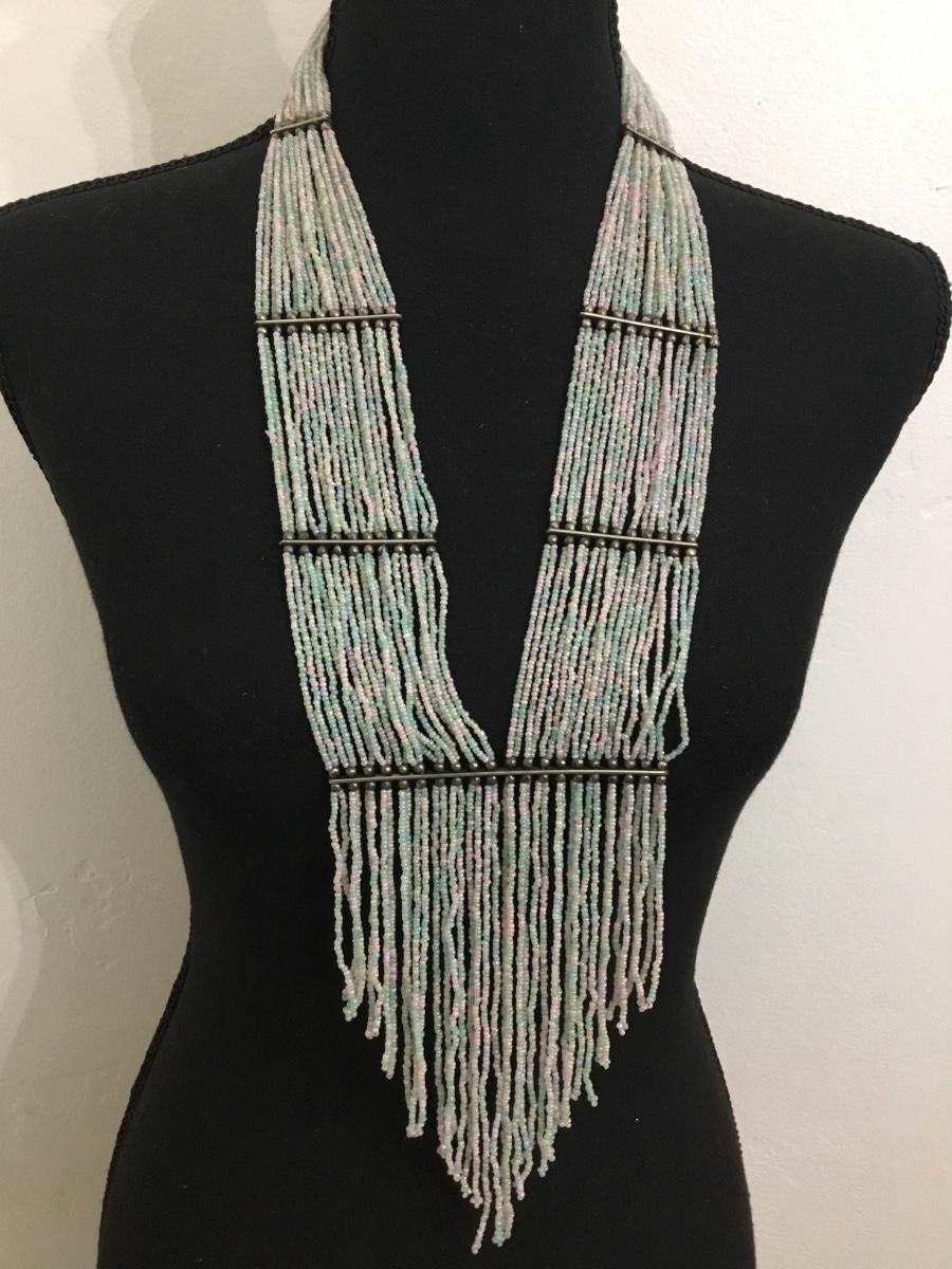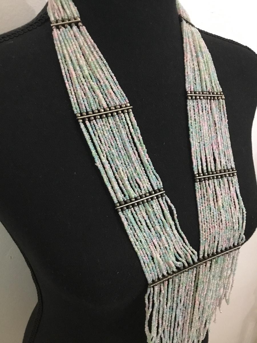 Gorgeous, silver toned cotton candy color seed bead native statement necklace