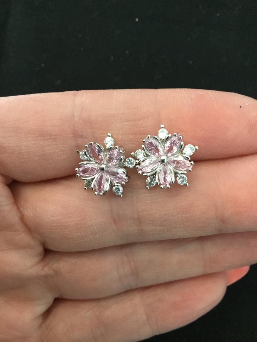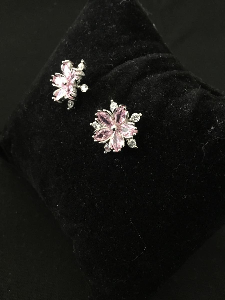 Gorgeous, silver toned, vintage, light, pink flower, crystal stud airings