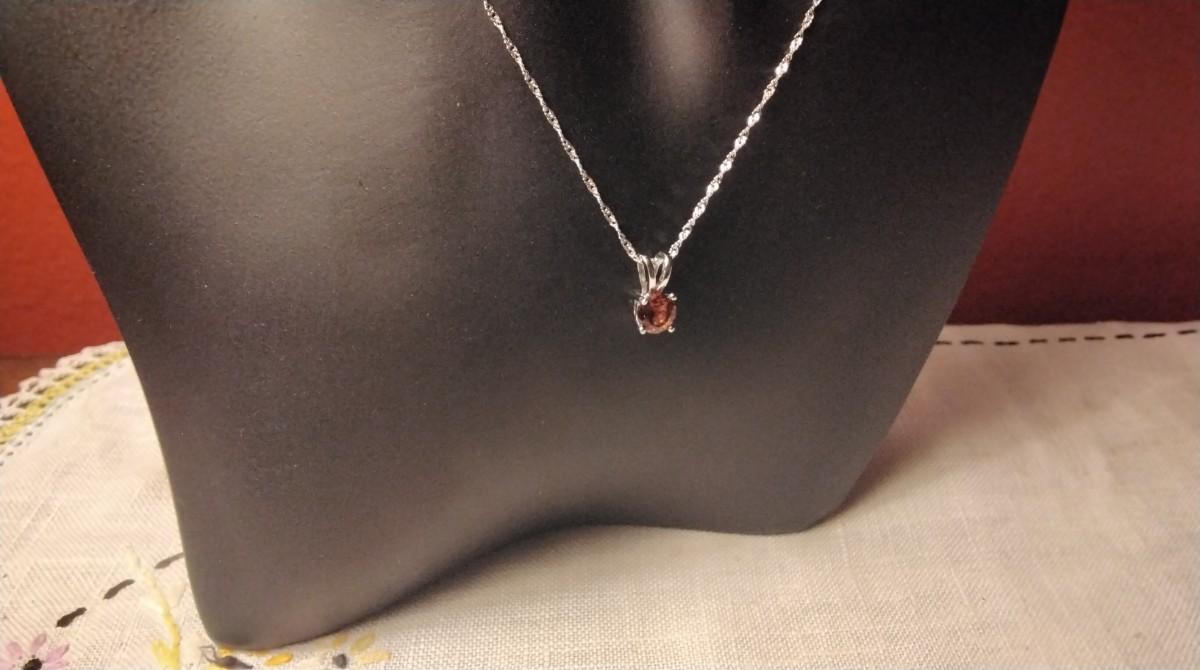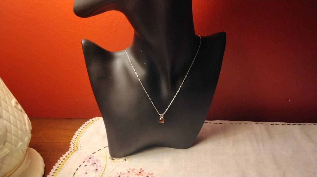 Gorgeous Solitare Garnet 16" 925 Necklace