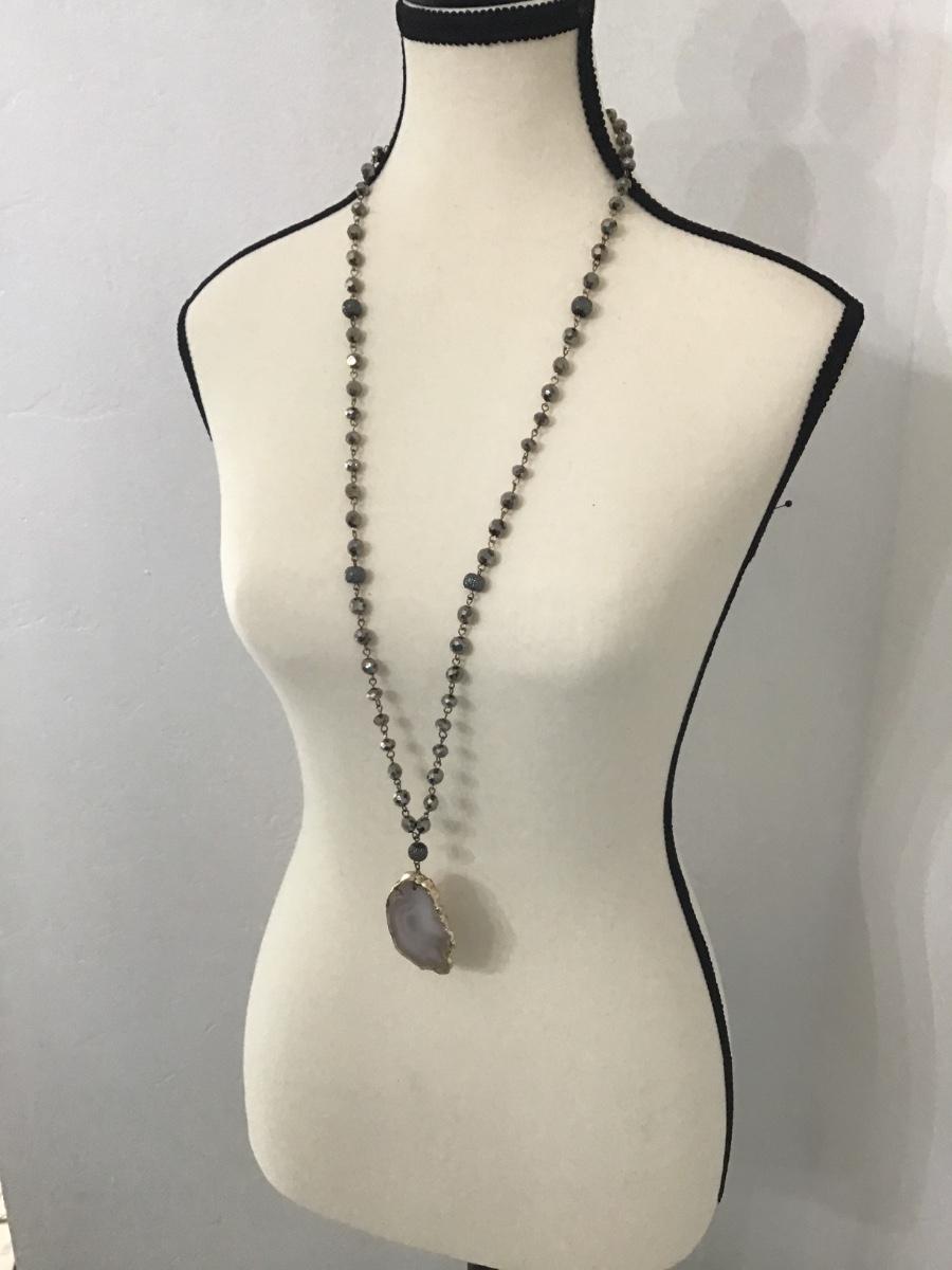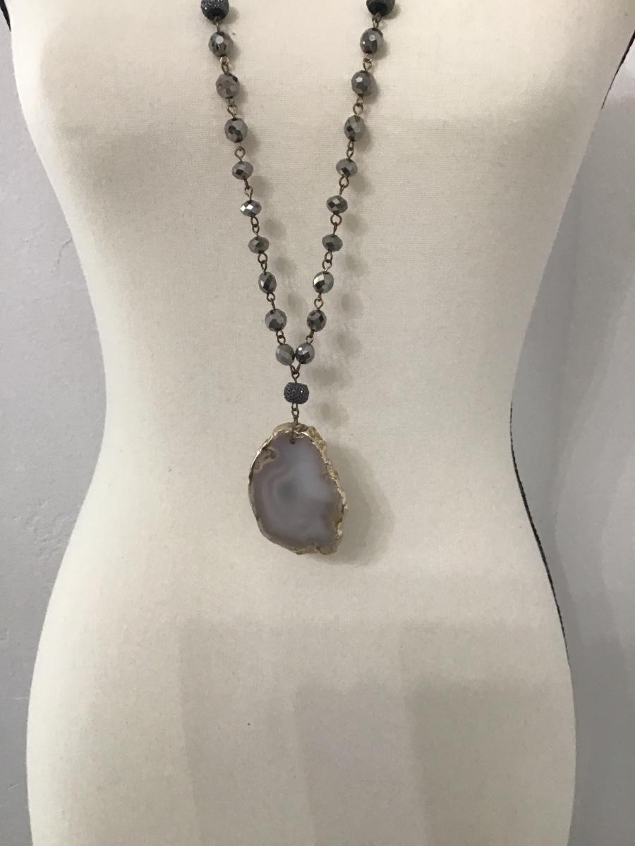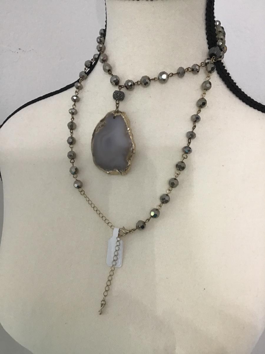 Gorgeous sparkly glass beaded, gold, toned necklace Agate slice pendant necklace