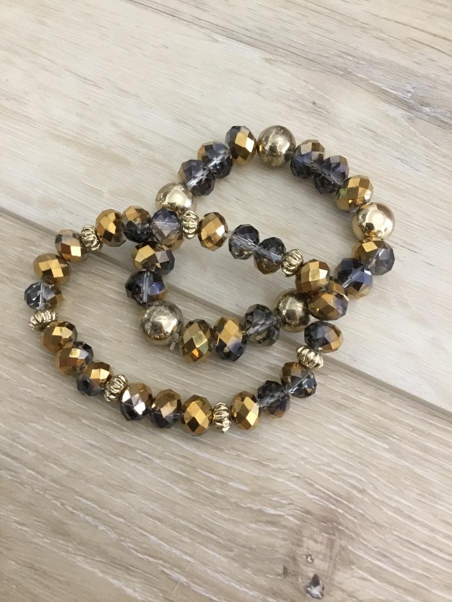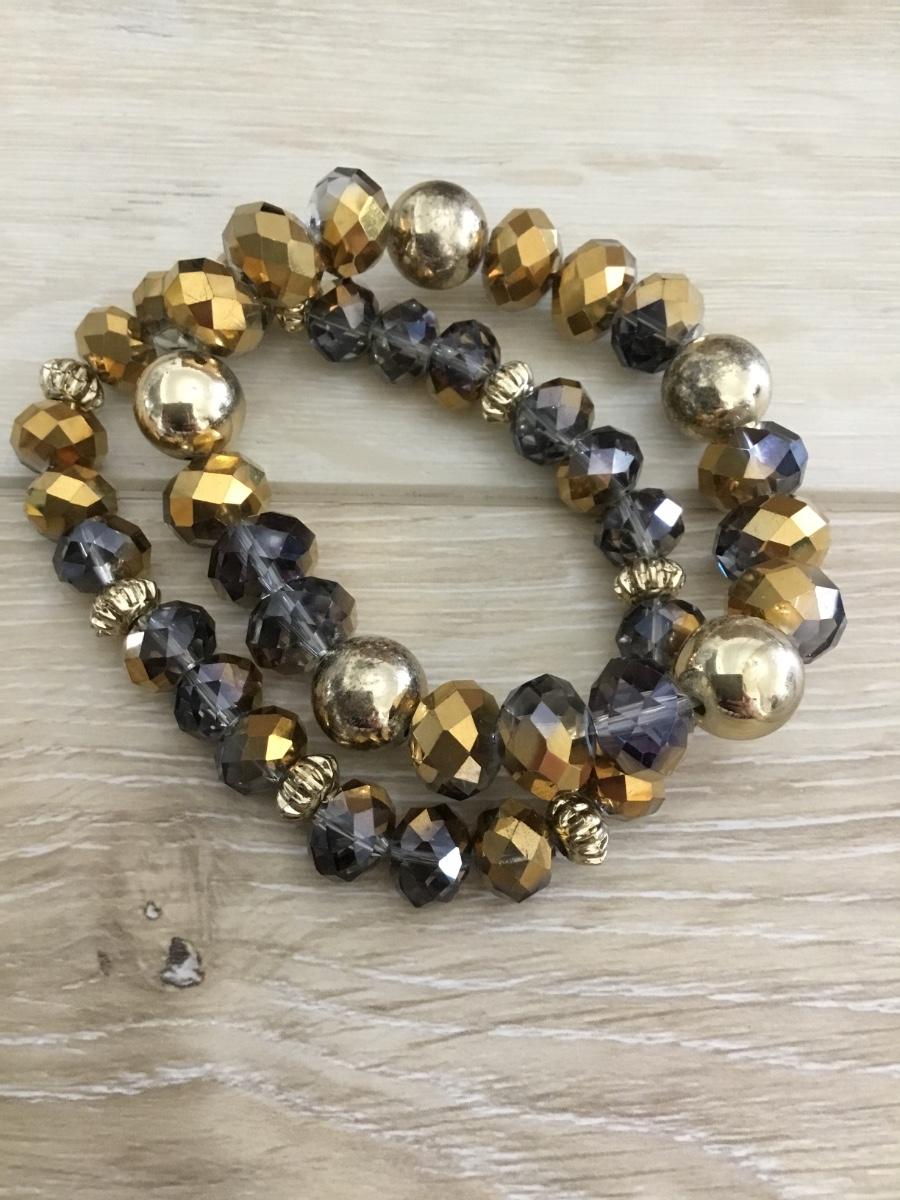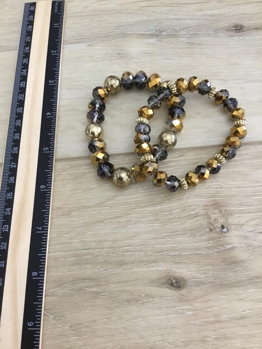 gorgeous sparkly gray gold accent glass bead stretch bracelets