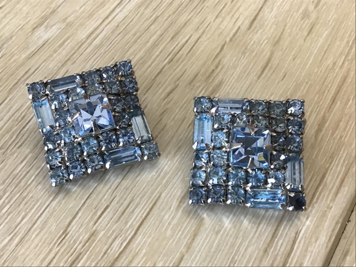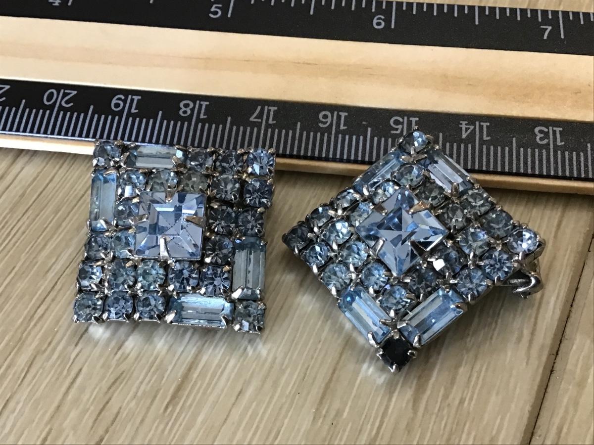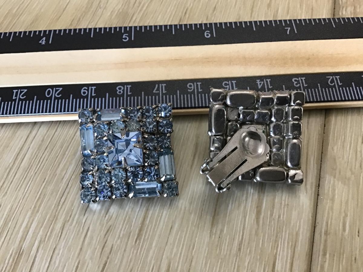 Gorgeous Square Blue Crystal Clip on Earrings vintage