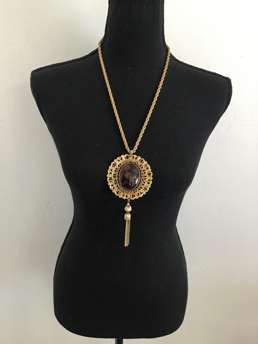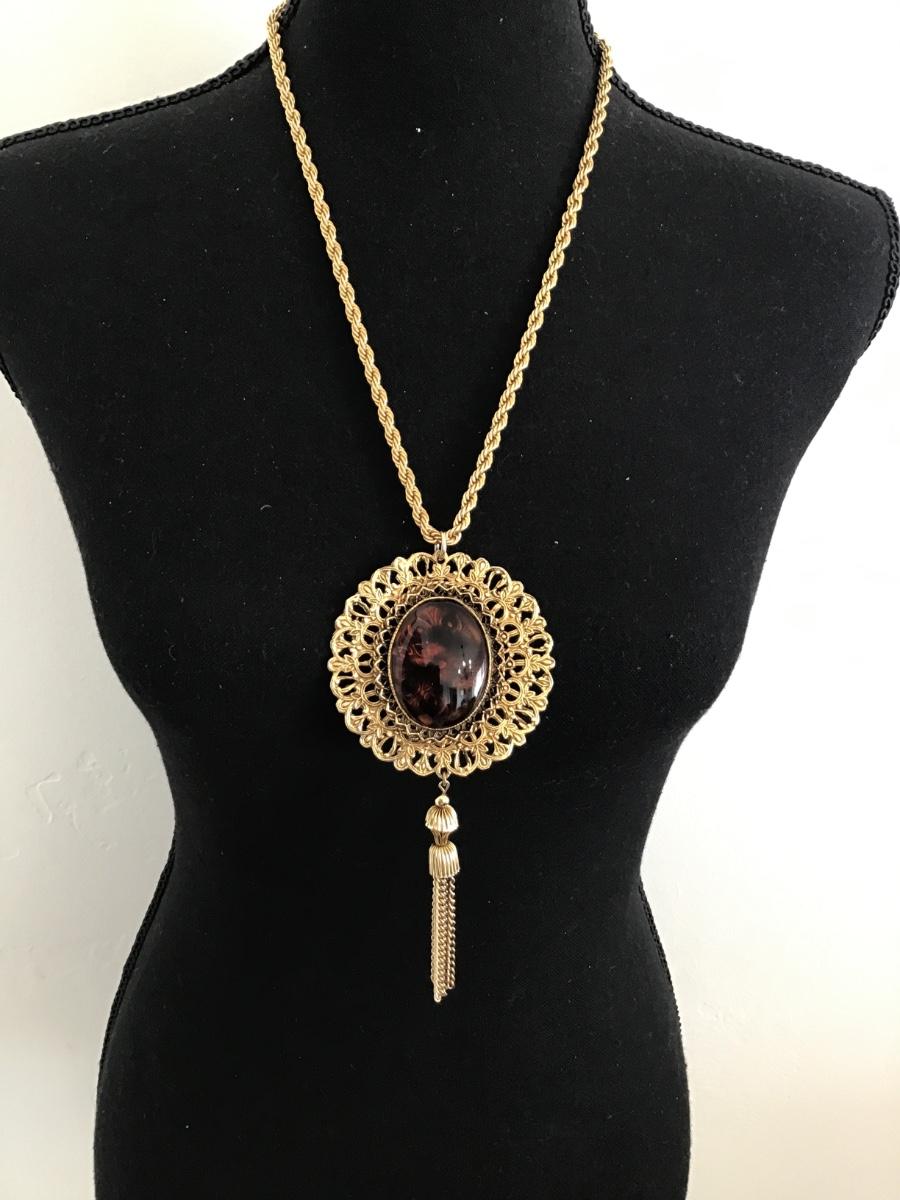 Gorgeous Statement Glass Pendant with Tassel A Nice Chain