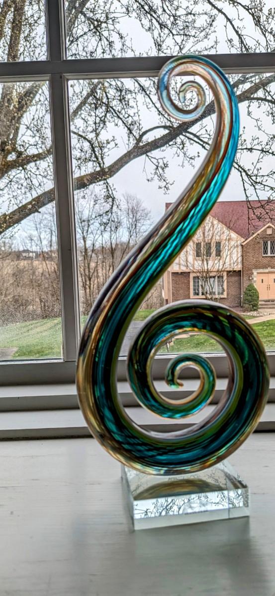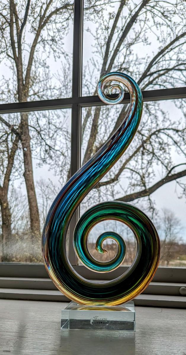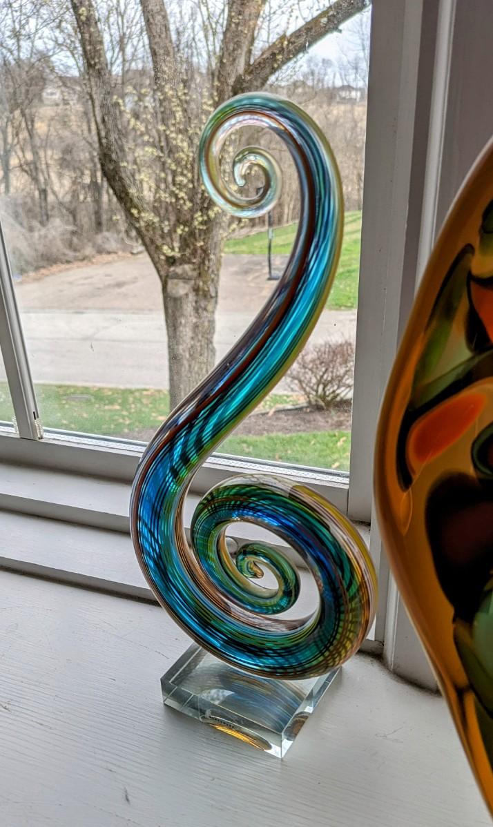 Hand Blown Glassware Art Glass Fused Sculpture Music Clef Note 12" tall