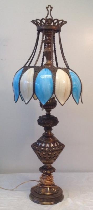 Description: Gorgeous Tiffany Style shade brass table lamp. Measurement approximate: 42 H x 7 Wide. Shipping cost: $75 excluding Hawaii, Alaska and California