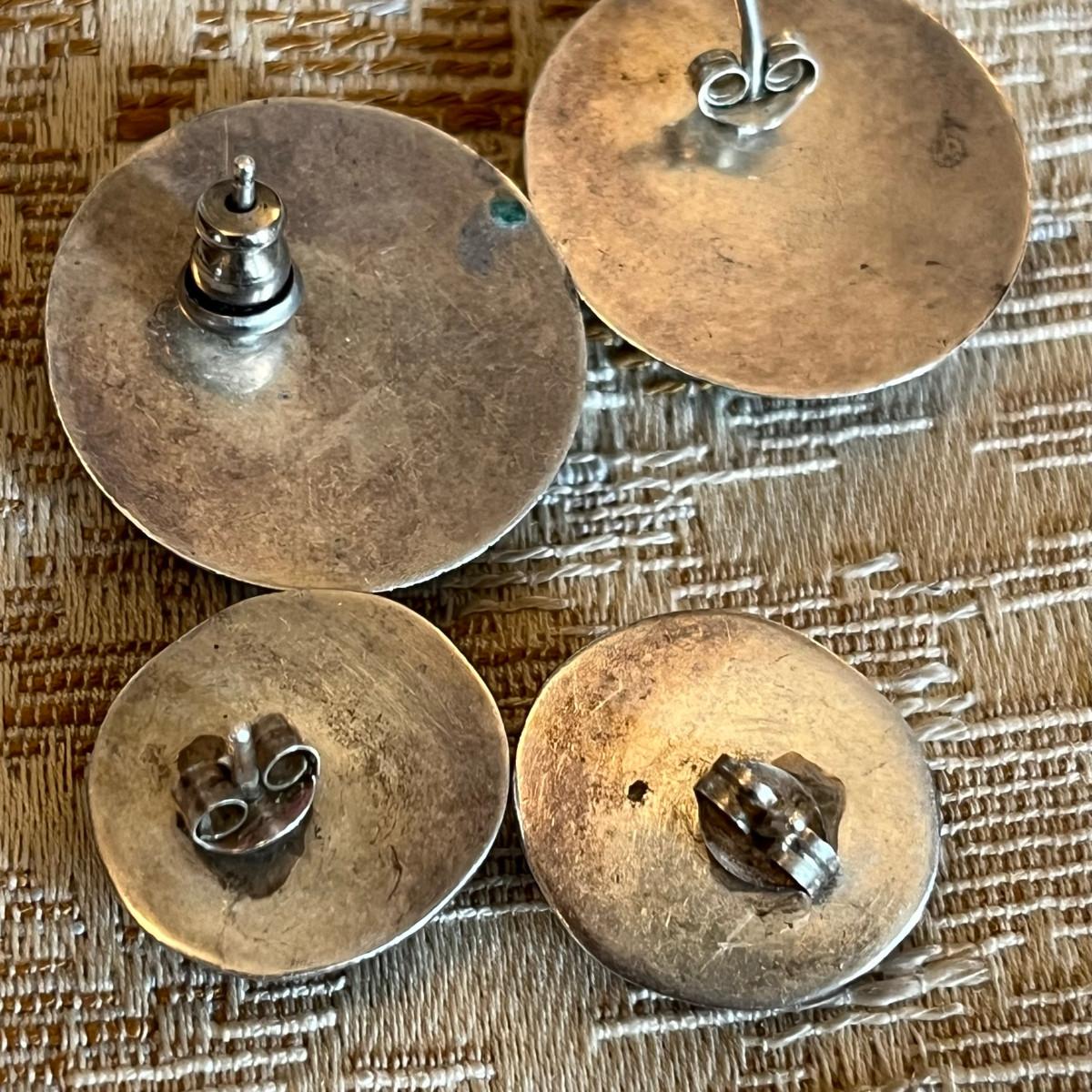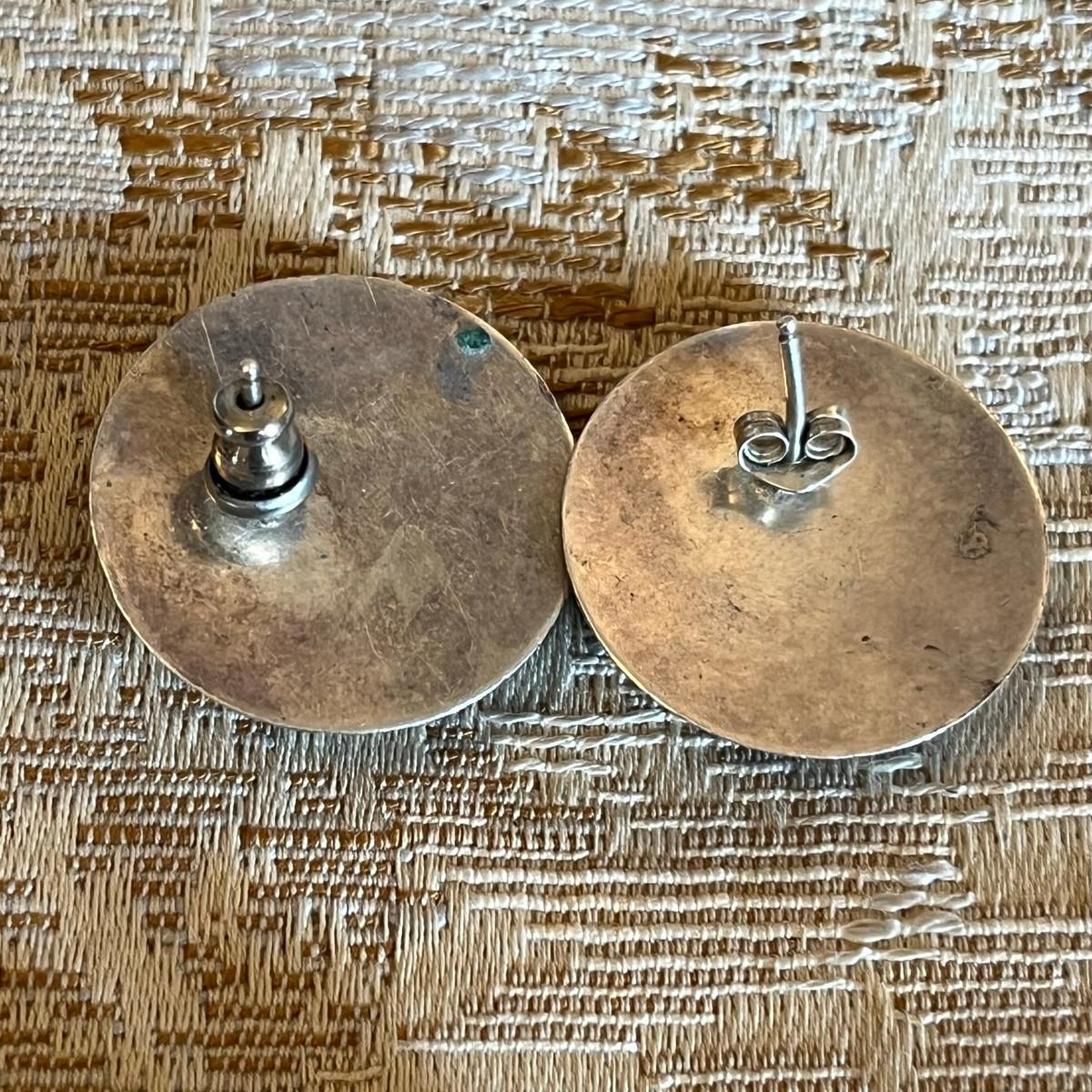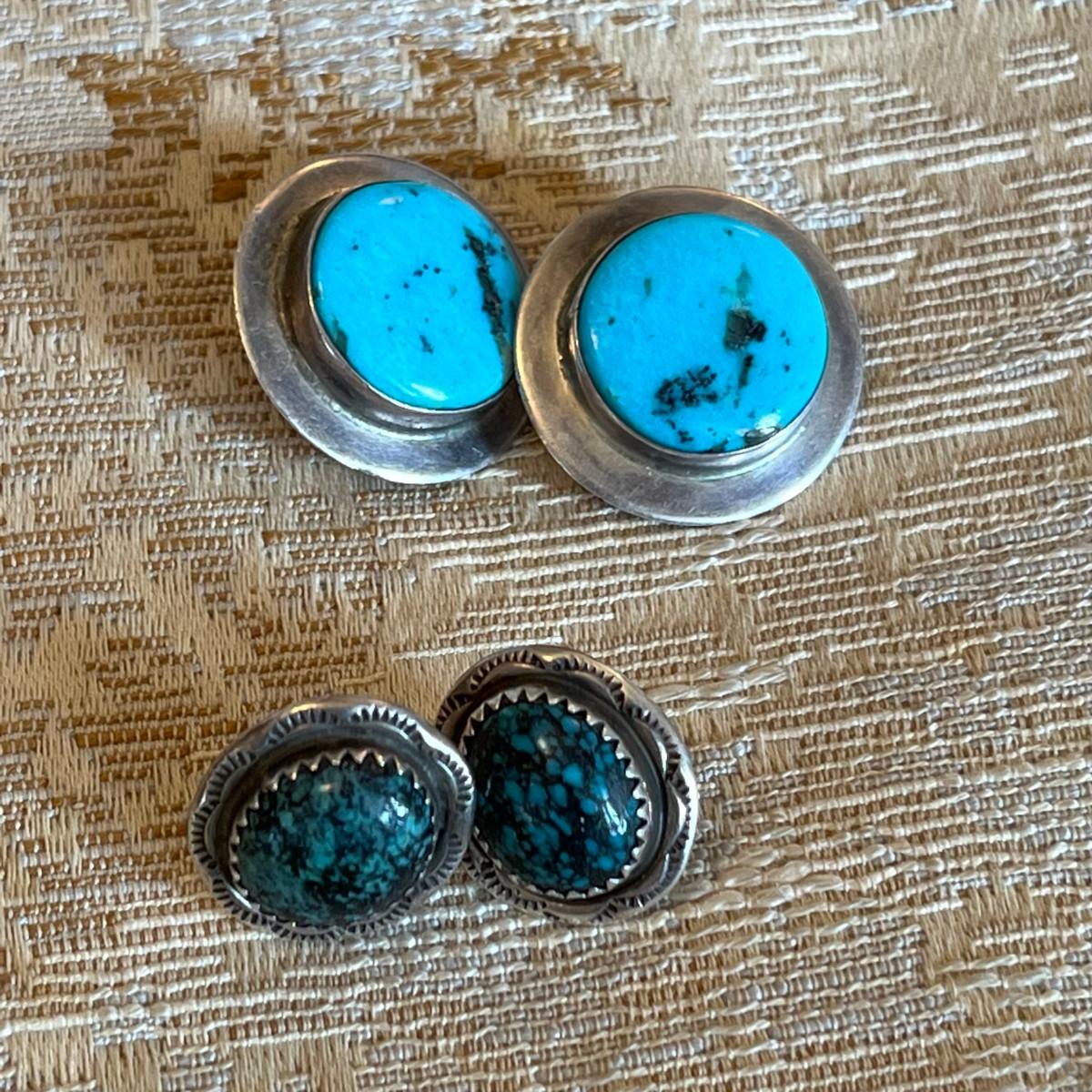 Nice Native American style earrings. The bottom looks like Bisbee Turquoise. Though there is a Chinese turquoise mine that is similar. 11 grams total weight. Ready to wear!