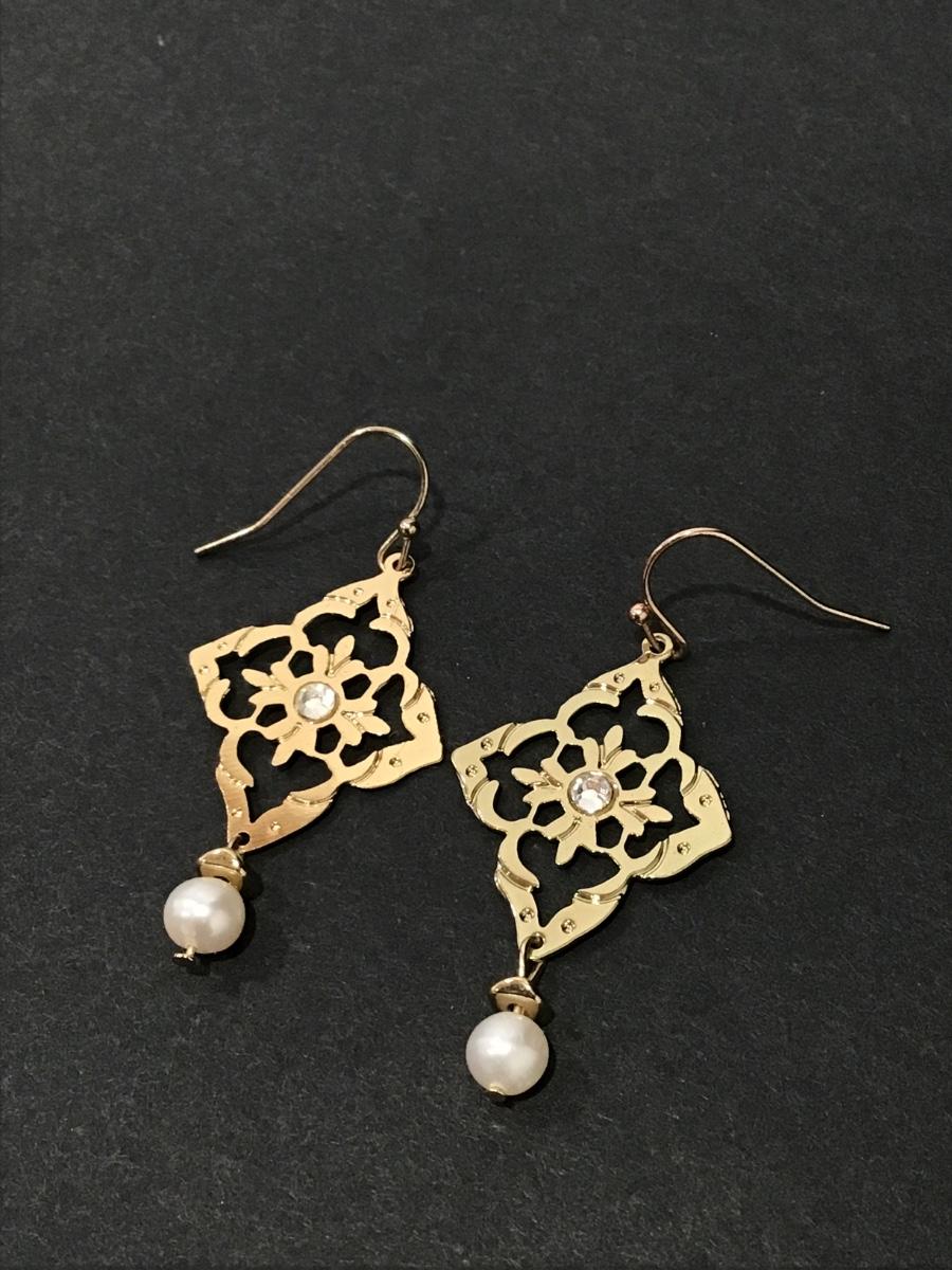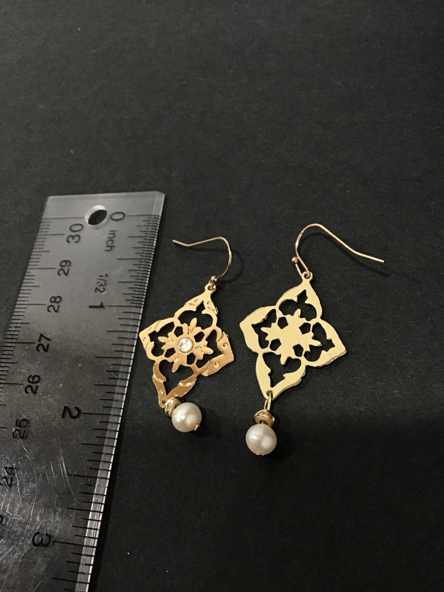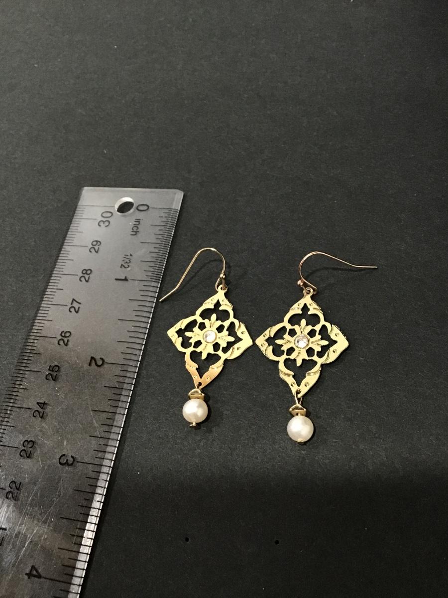 Gorgeous, very nice gold toned dangle earrings with genuine pearls