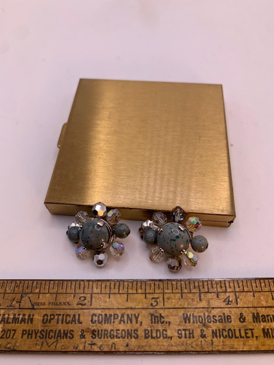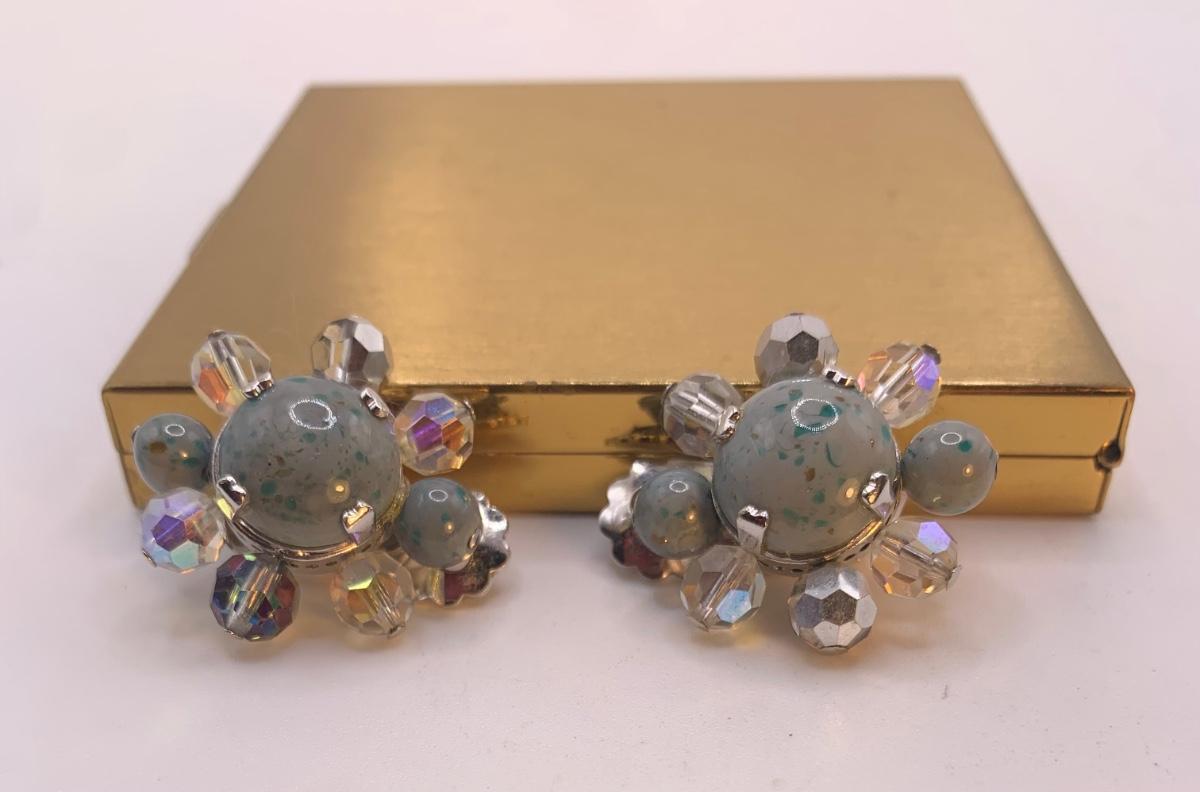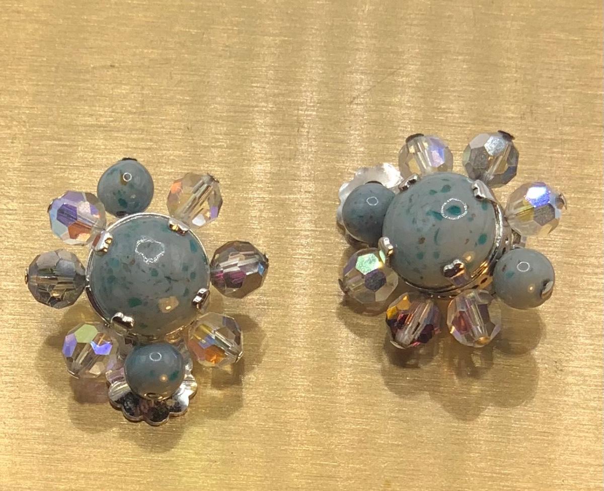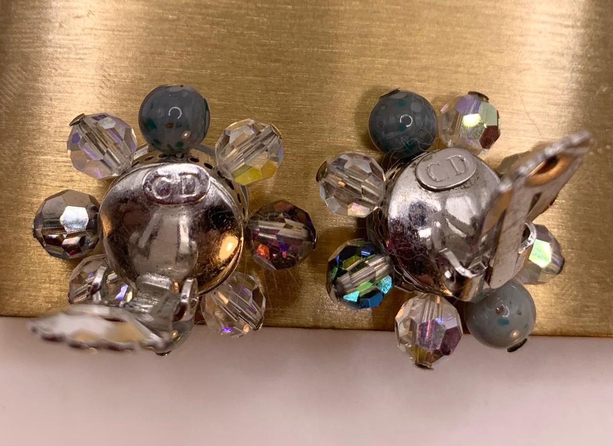 Gorgeous Vintage 1950s Designer Christian Dior Speckle Grey Glass Earrings