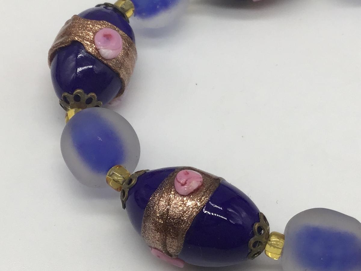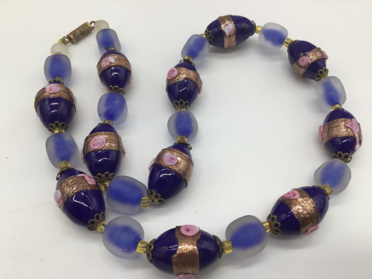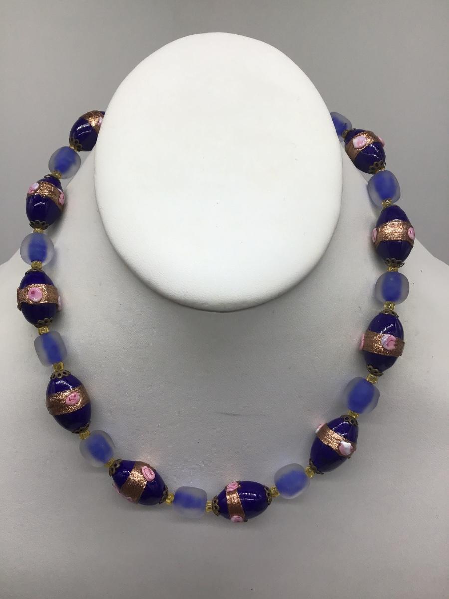 Gorgeous Vintage Lampwork Type Necklace Cobalt Blue Glass Beaded Barrel Clasp