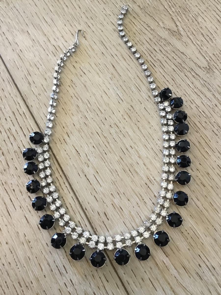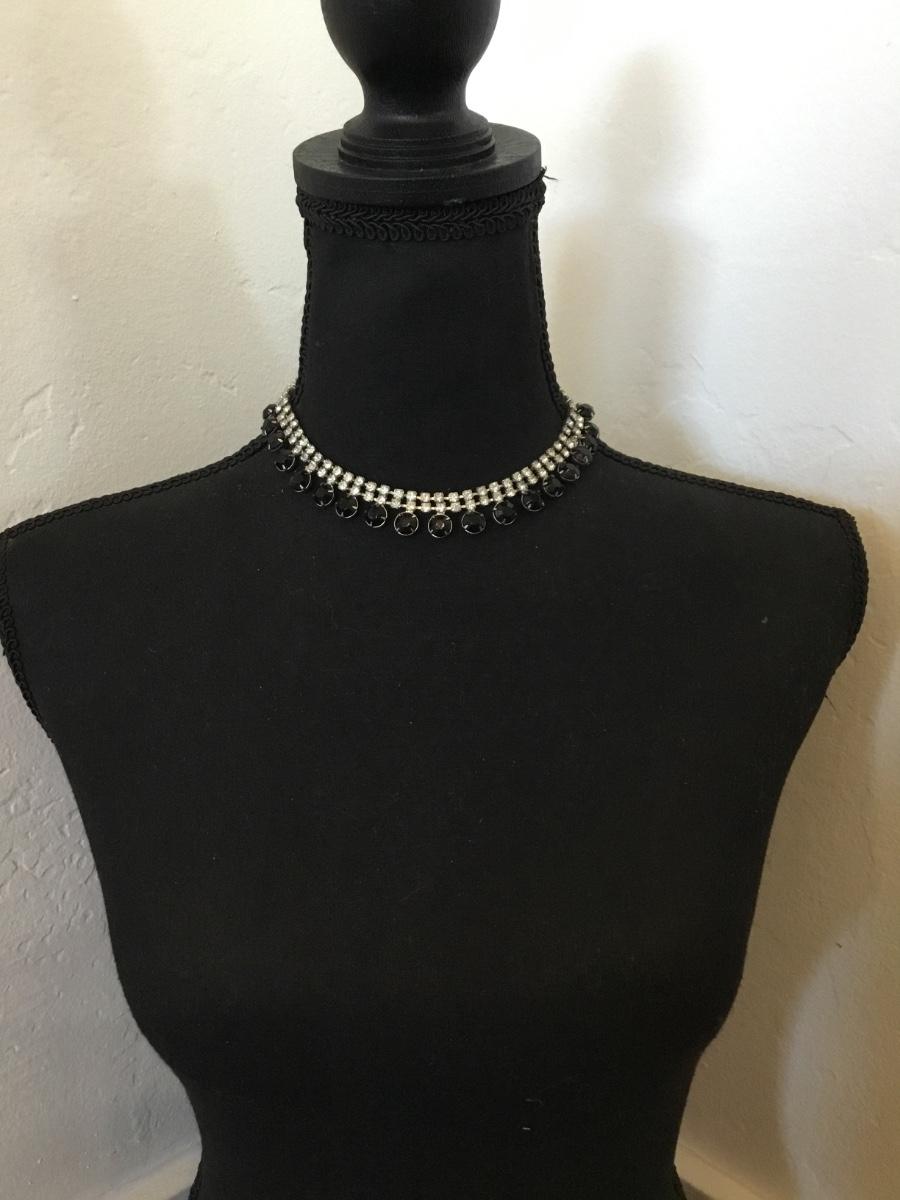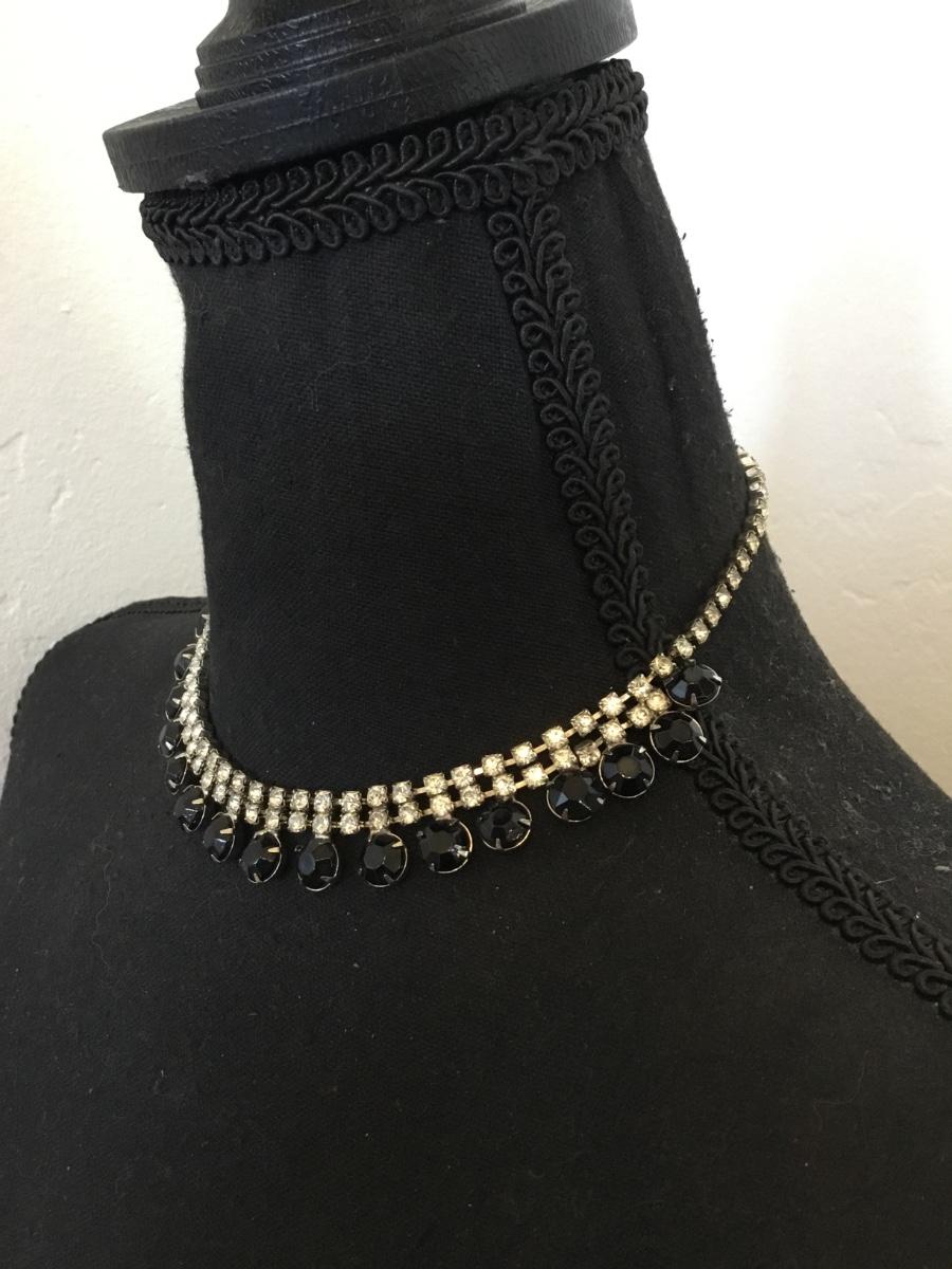 Gorgeous, vintage, art, deco, black onyx, rhinestone statement, choker necklace