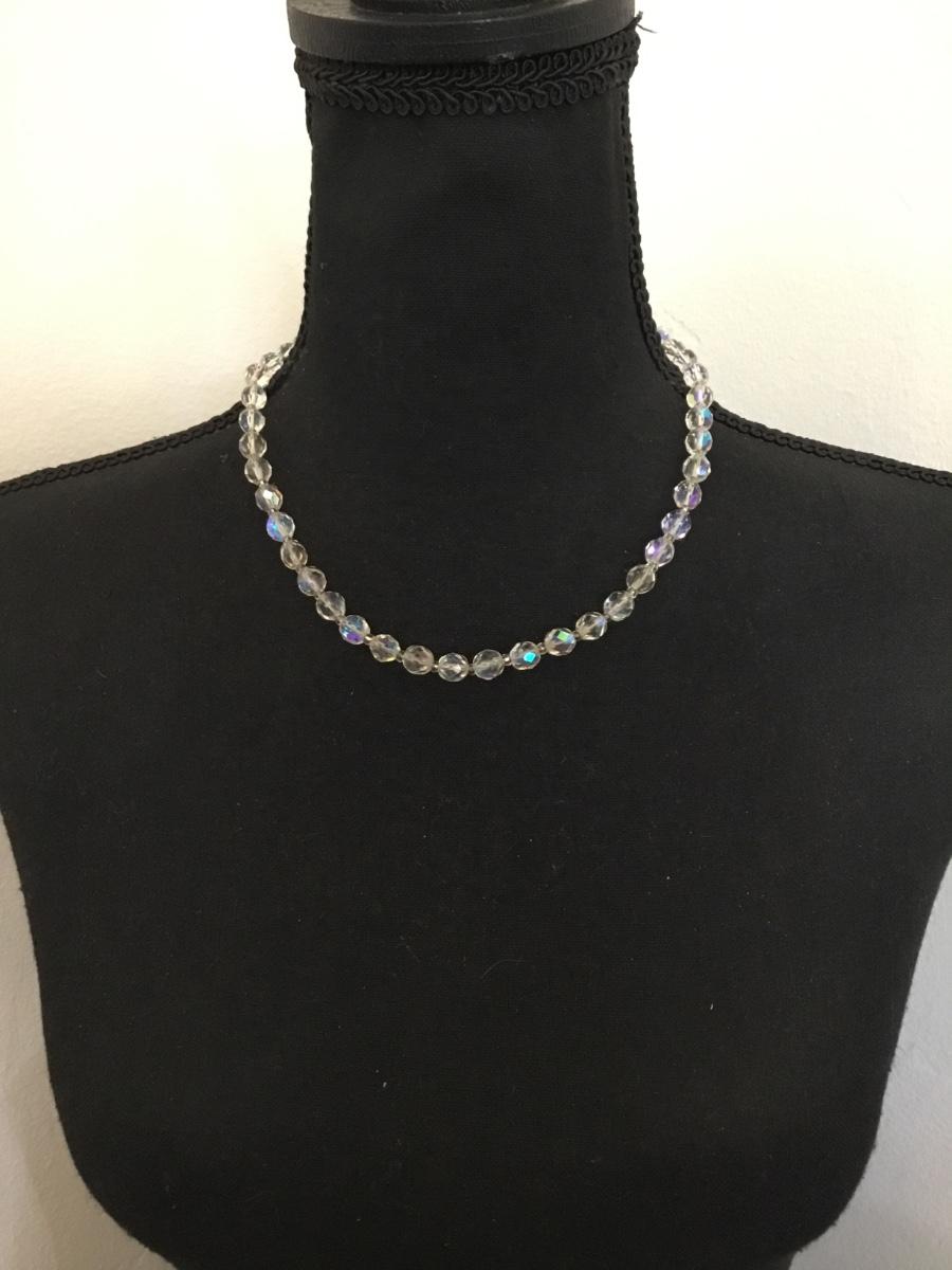 Gorgeous vintage, Aurora Borealis, Australian, crystal round faceted, bead necklace