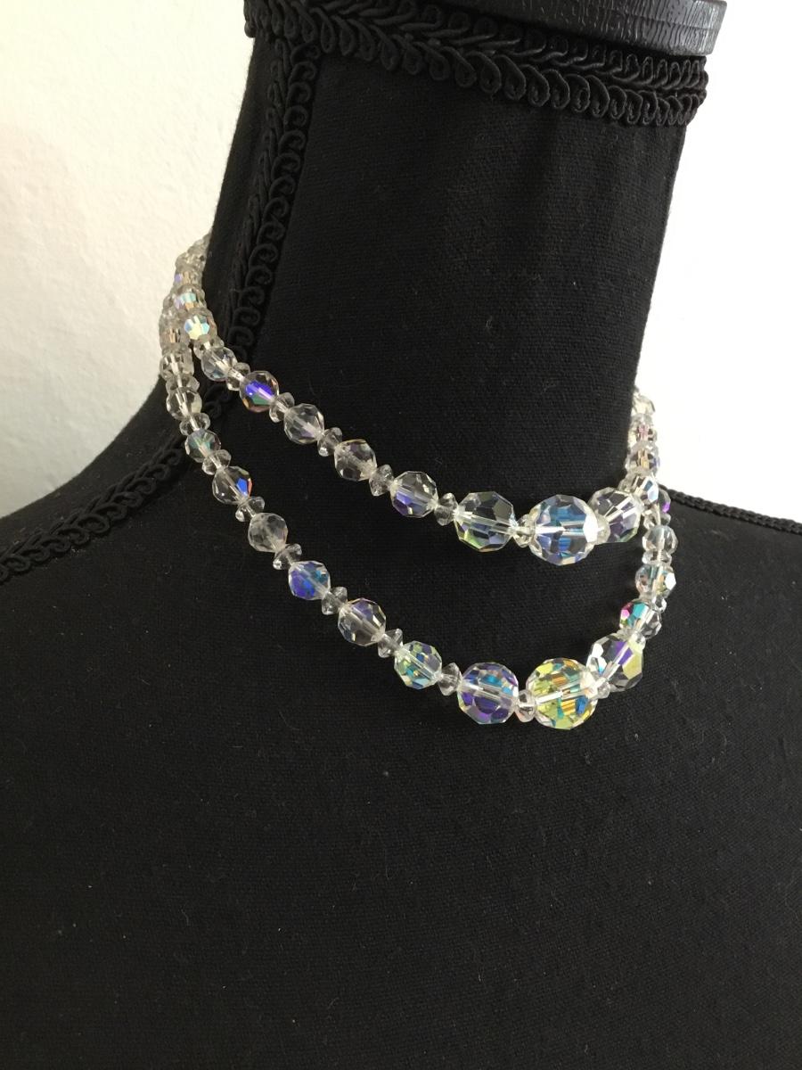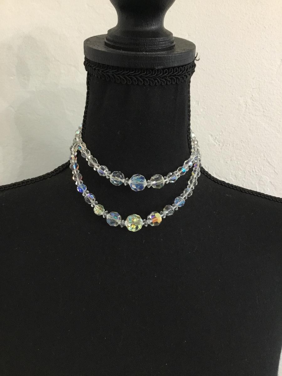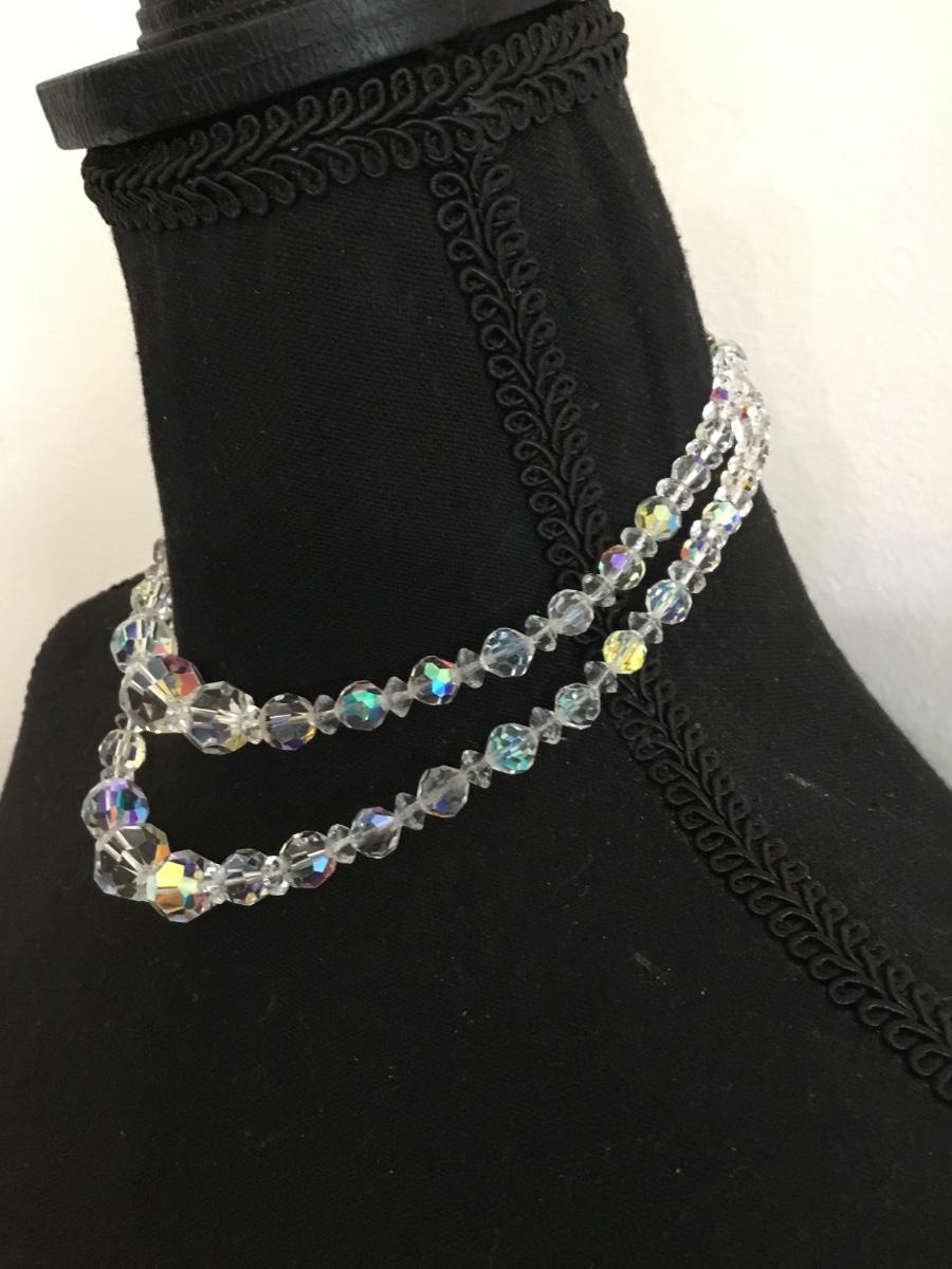 Gorgeous vintage, Aurora Borealis, crystal double strand, choker necklace