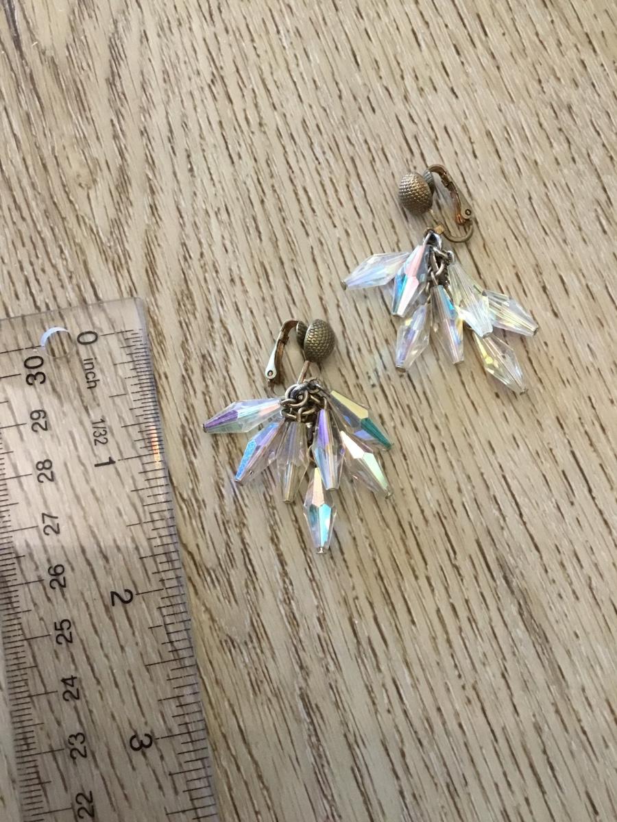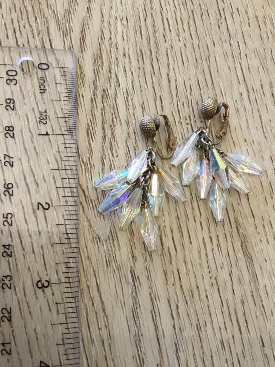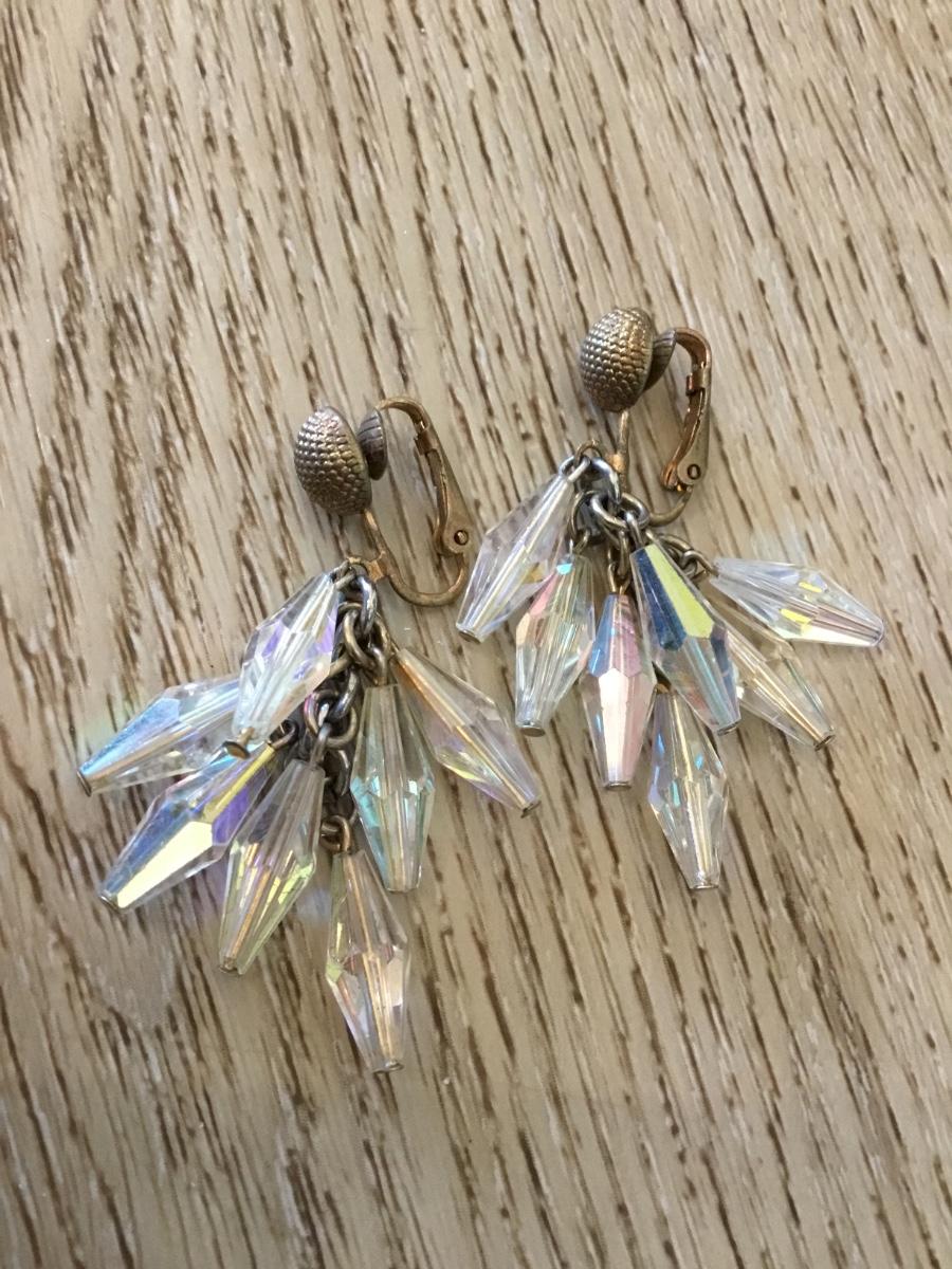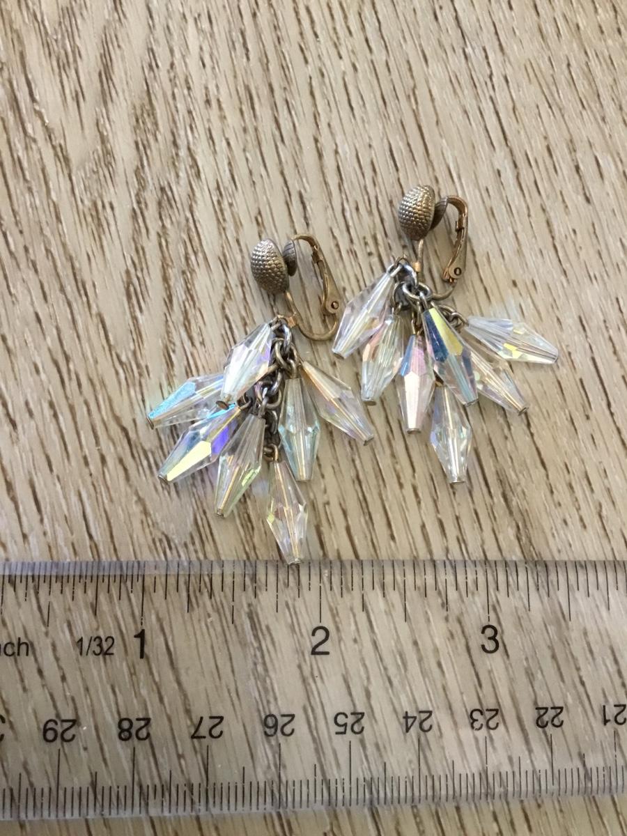 Gorgeous vintage, Aurora Borealis crystal dangle clip on earrings