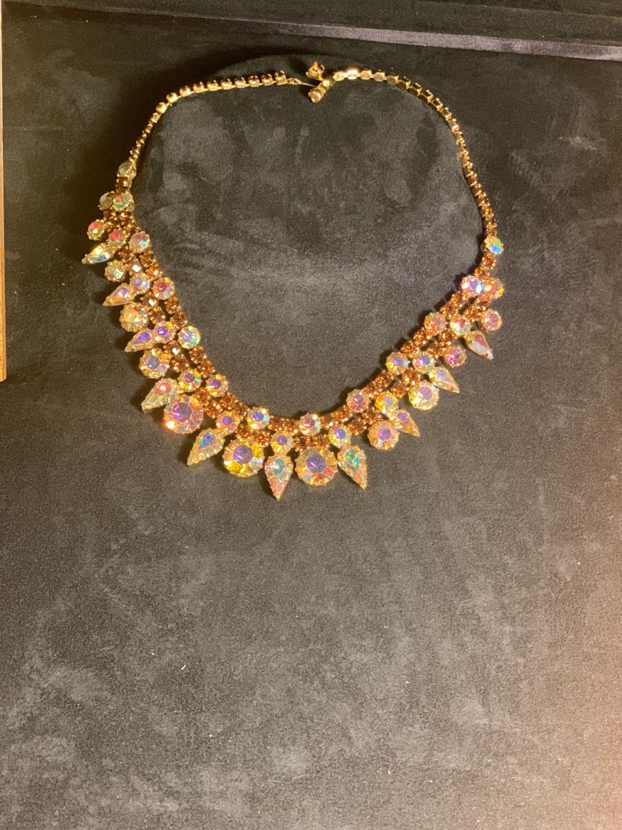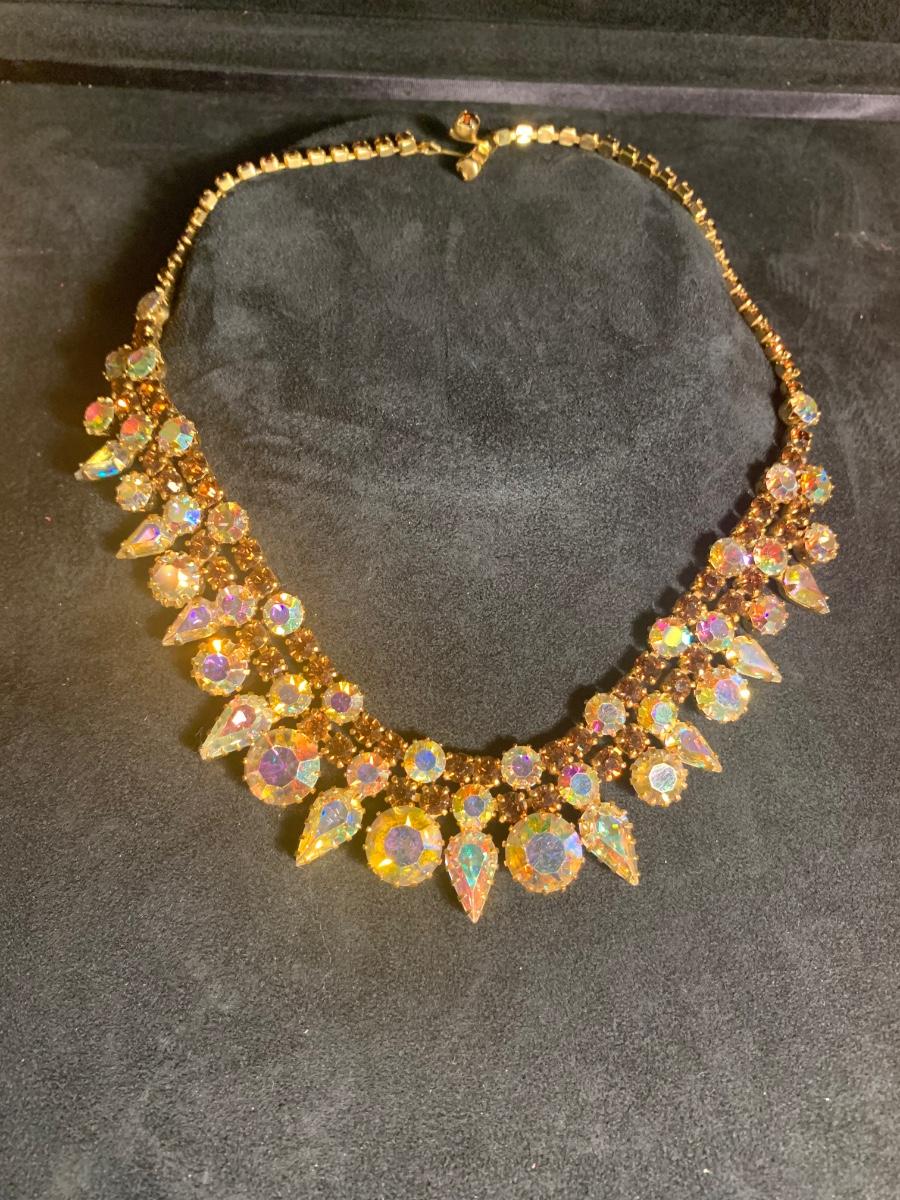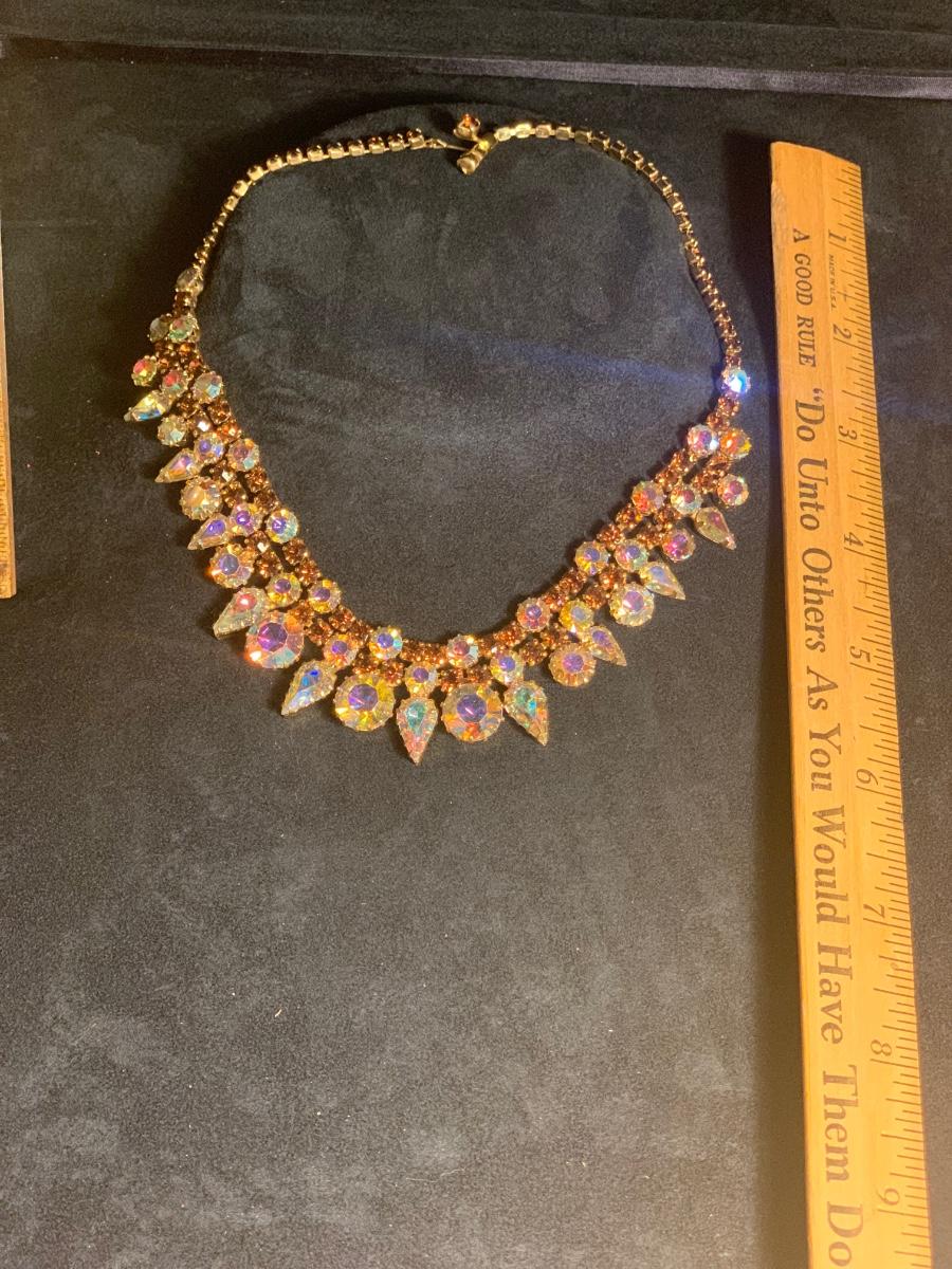 Gorgeous Vintage Aurora Borealis Rhinestone Chocker Necklace
