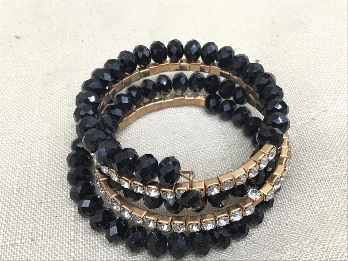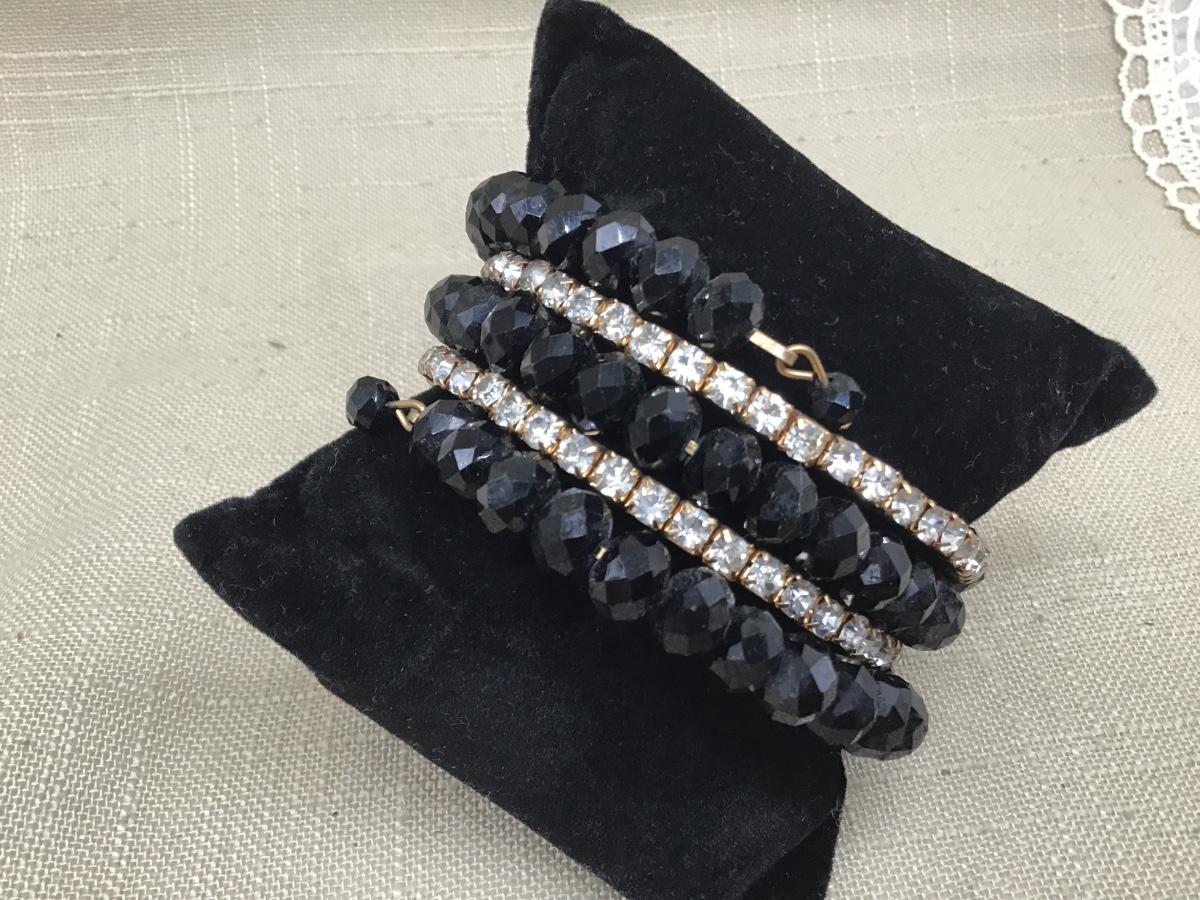 Gorgeous Vintage Black Faceted Glass Rhinestone Wrap Bangle Bracelet
