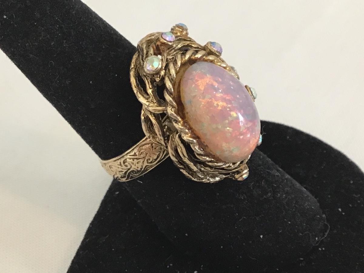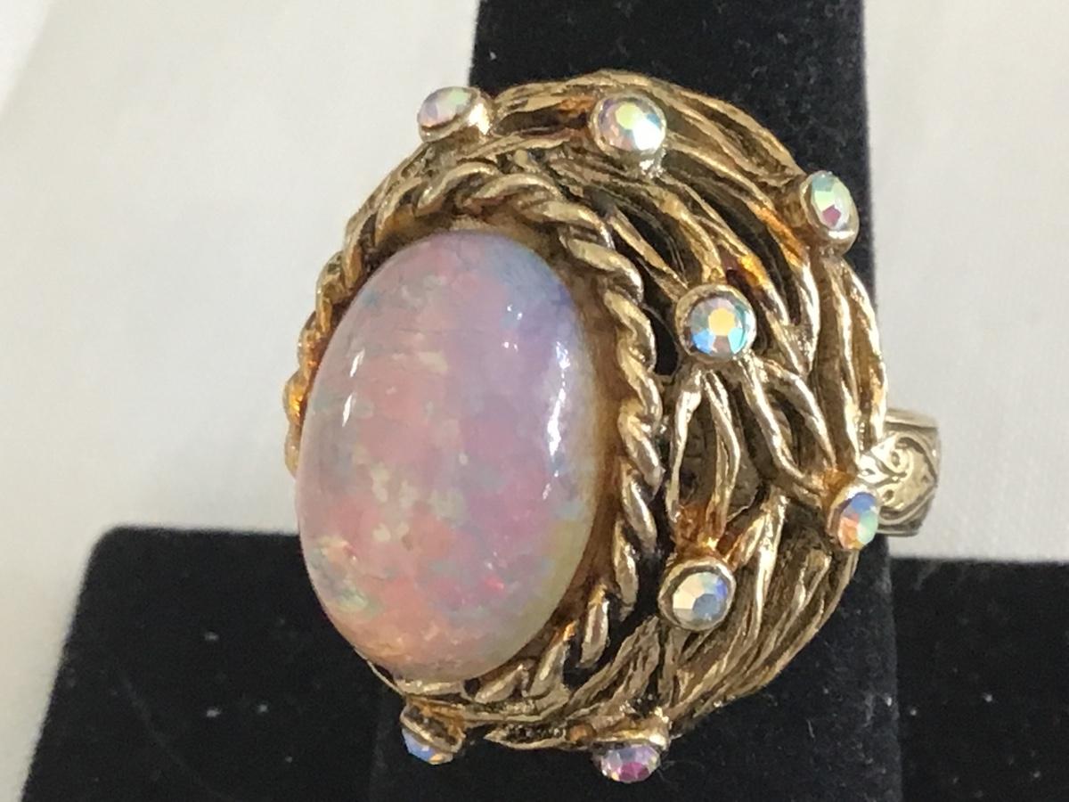 Gorgeous Vintage Cocktail Statement Ring With Stone and Aurora Borealis