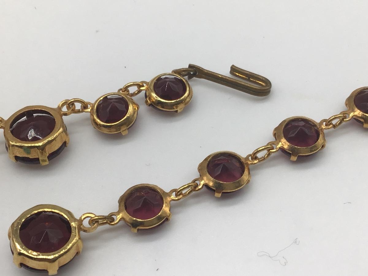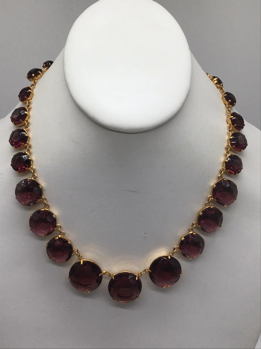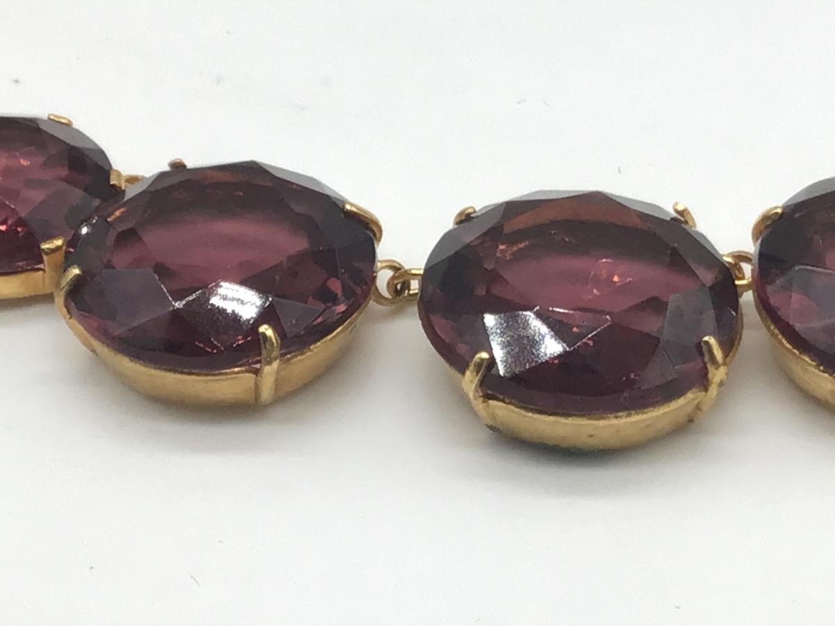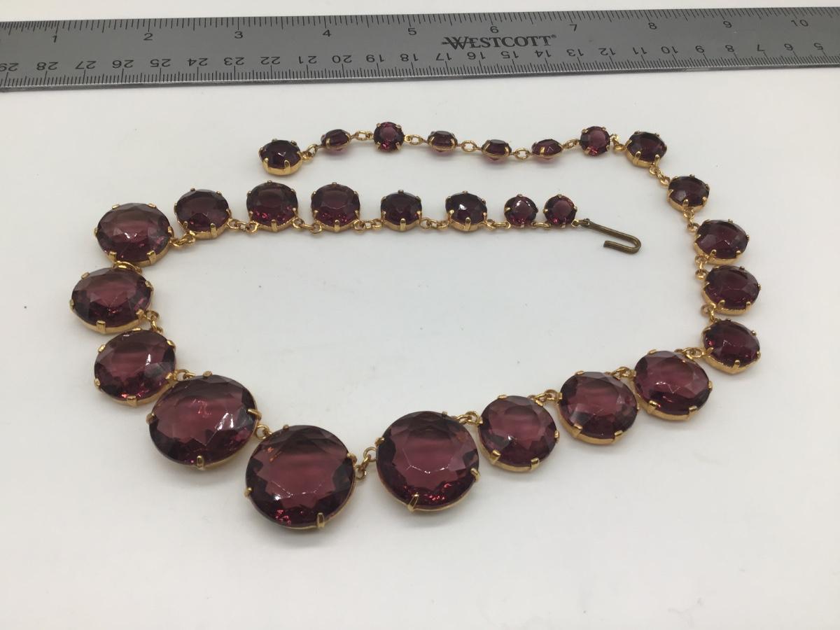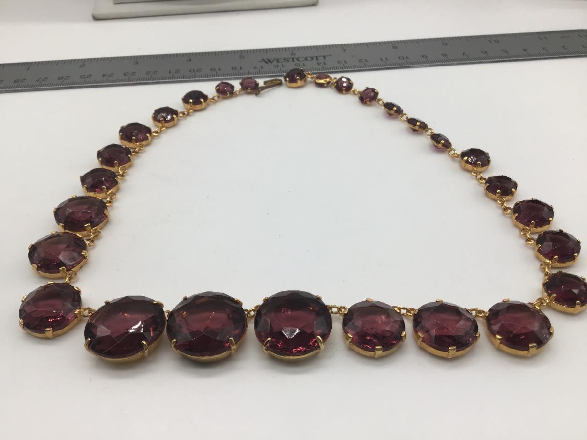 Gorgeous Vintage Costume Necklace Faceted Glass Purple Gold Tone Setting
