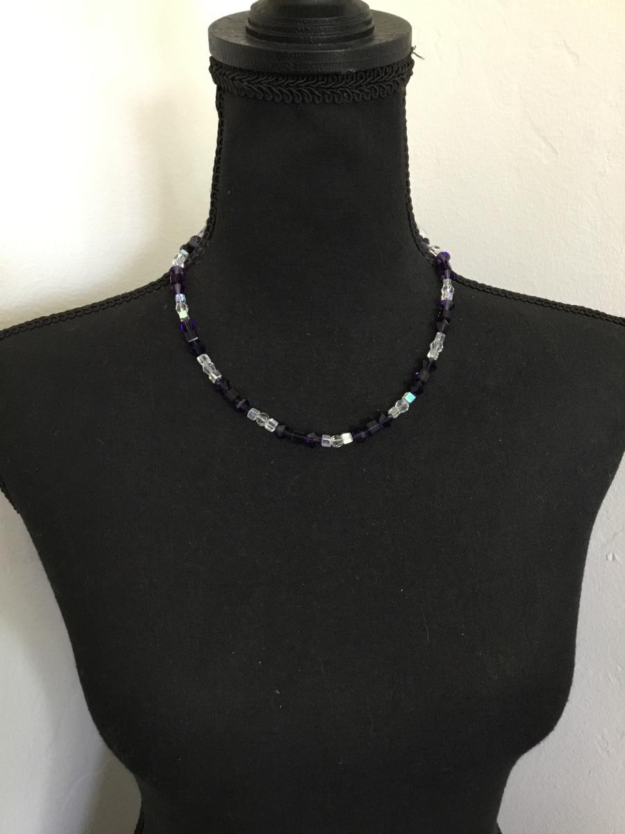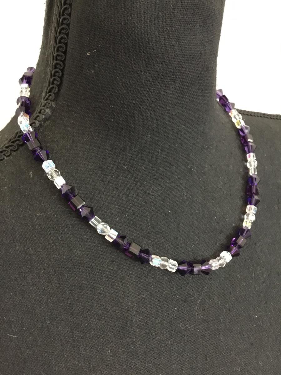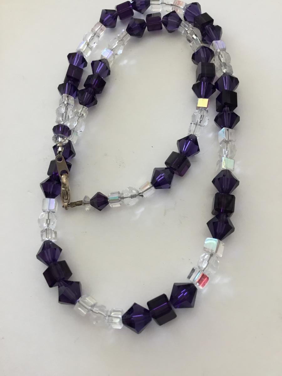 Gorgeous, vintage, crystal fasted, dark purple clear crystal bead necklace