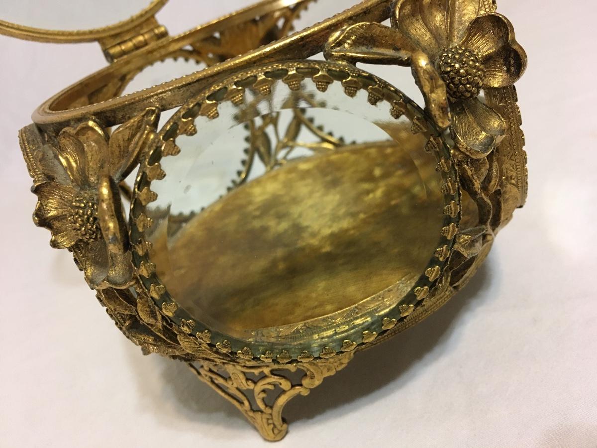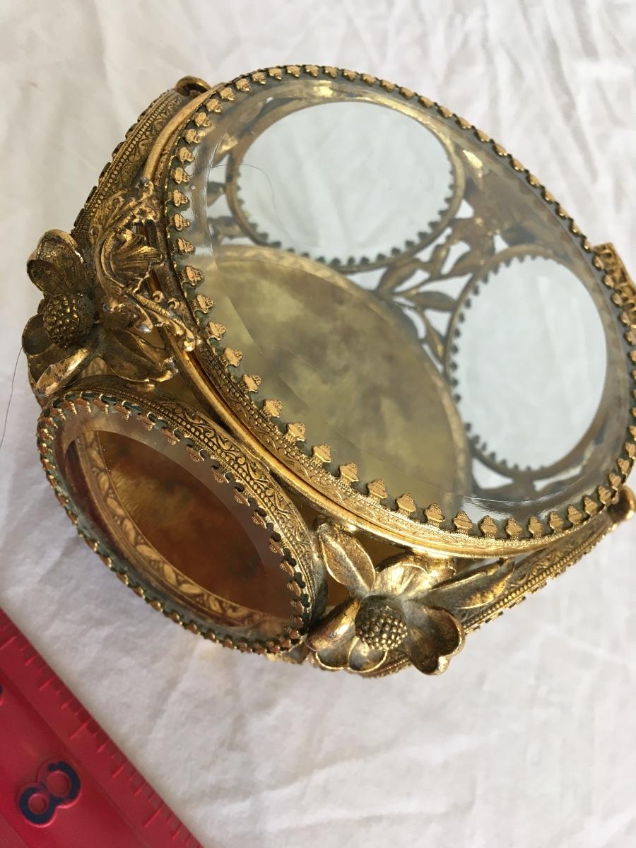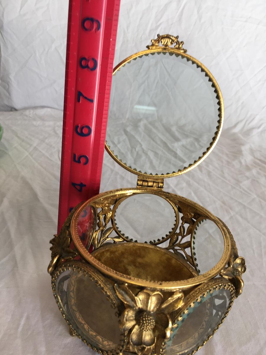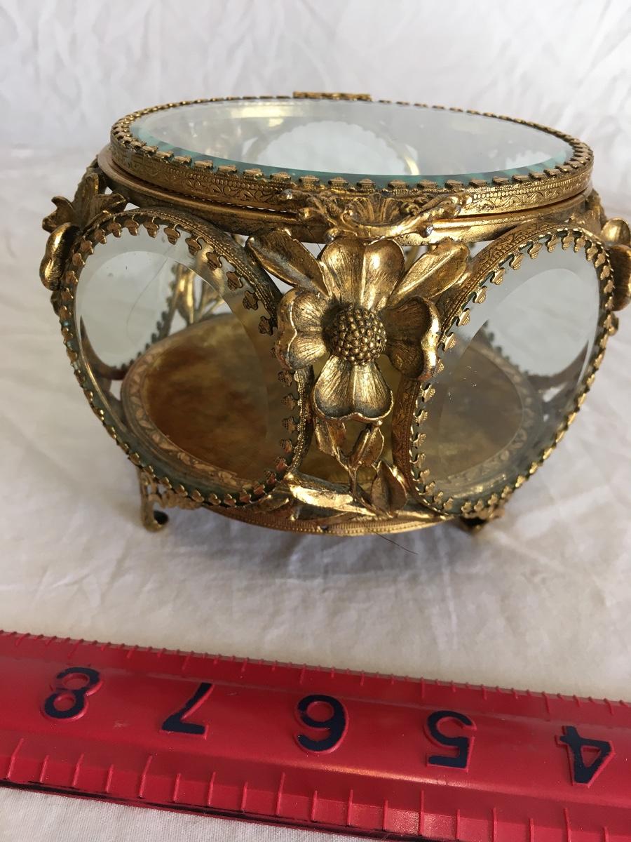 Gorgeous Vintage Glass Brass Trinket box