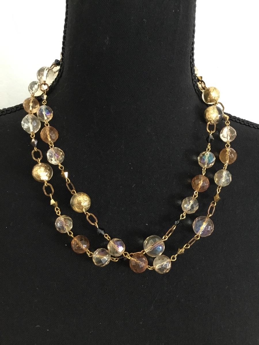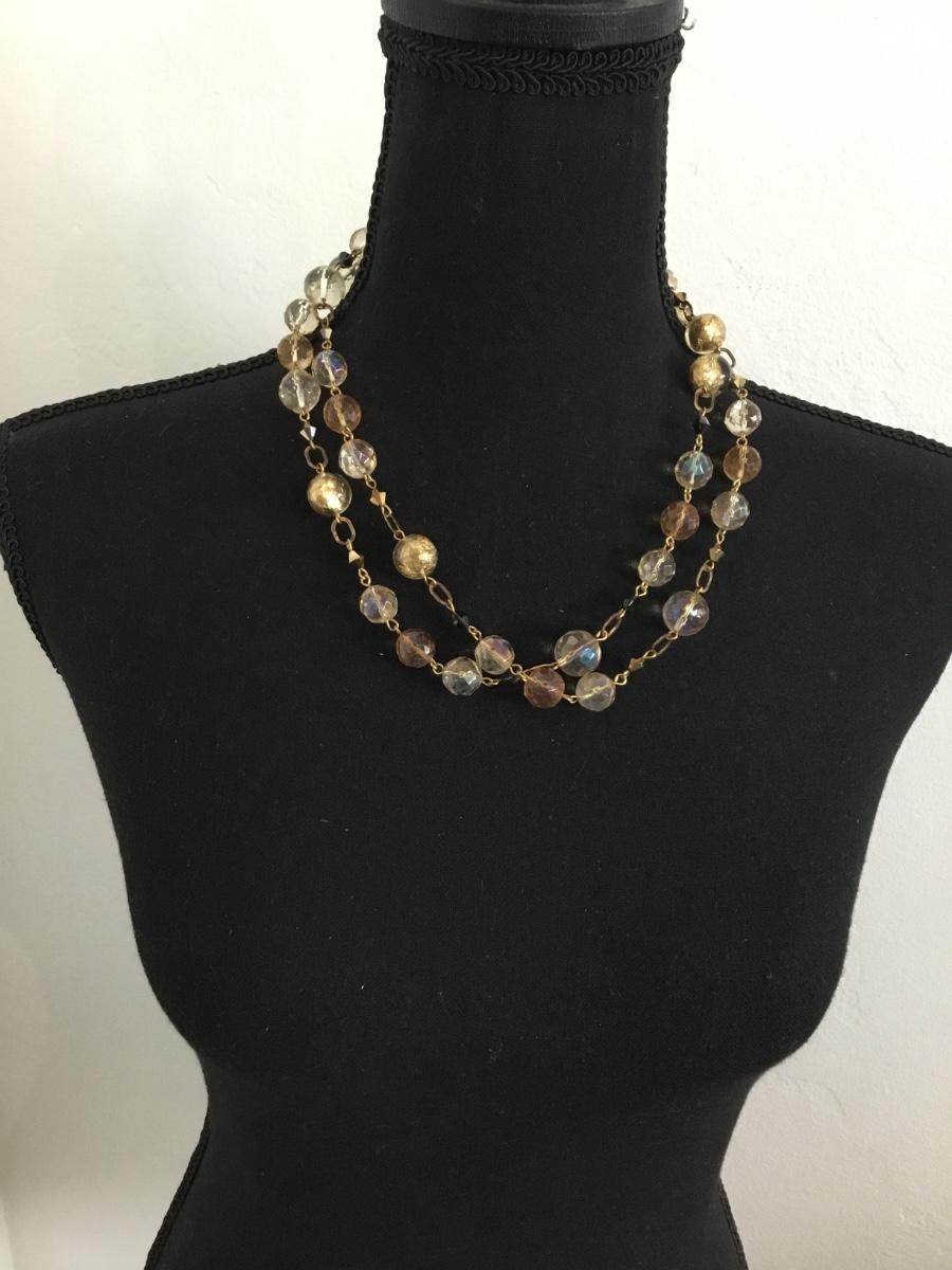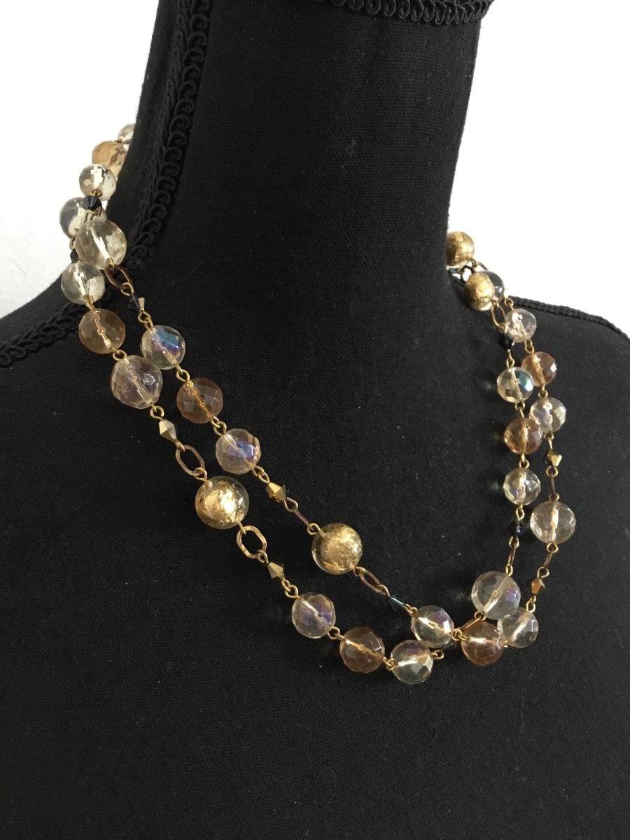 Gorgeous vintage, gold tone, double layer, glass necklace