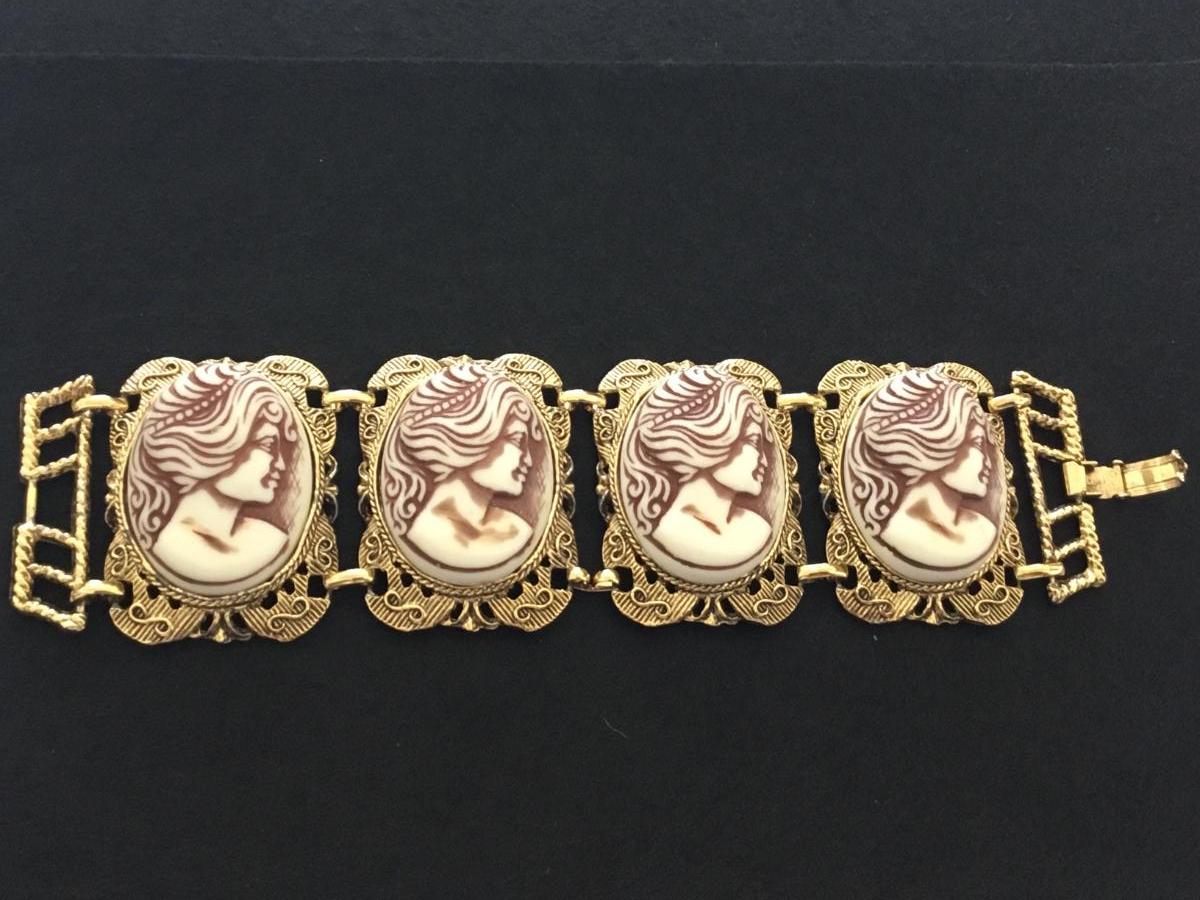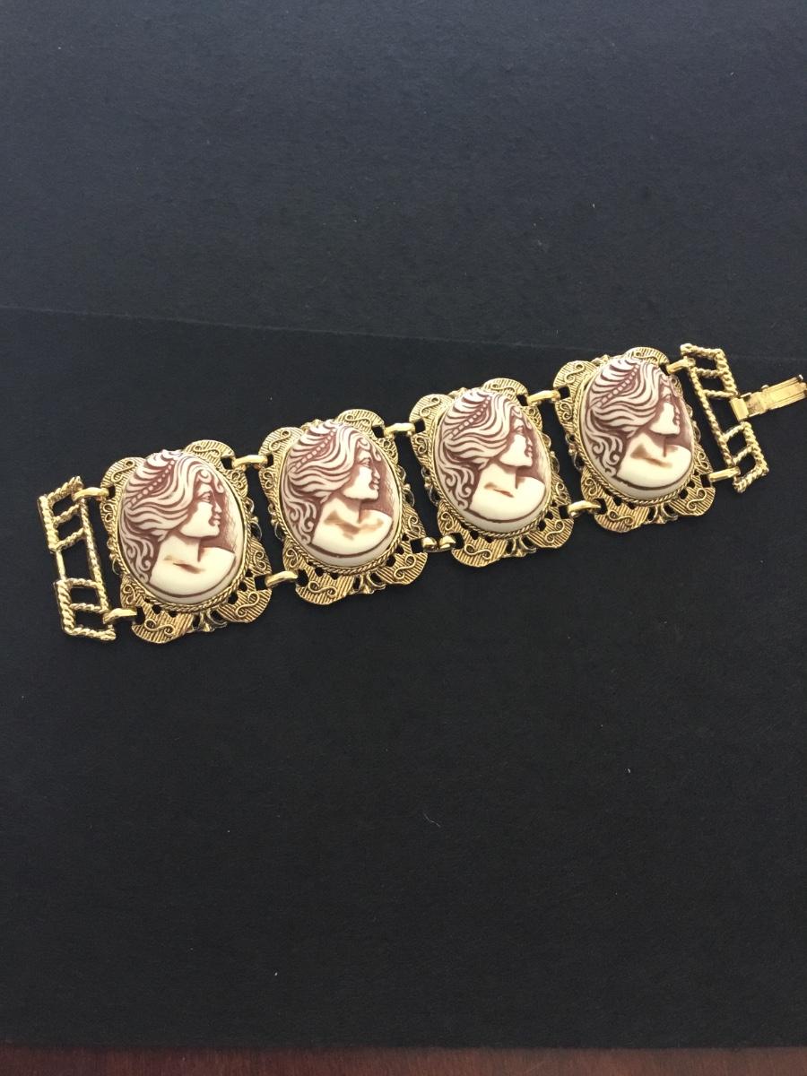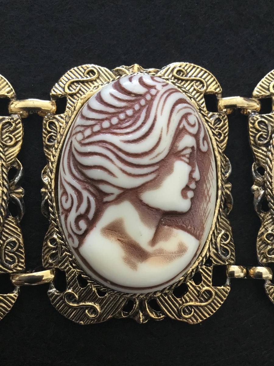 Gorgeous, vintage, gold-tone, cameo statement bracelet