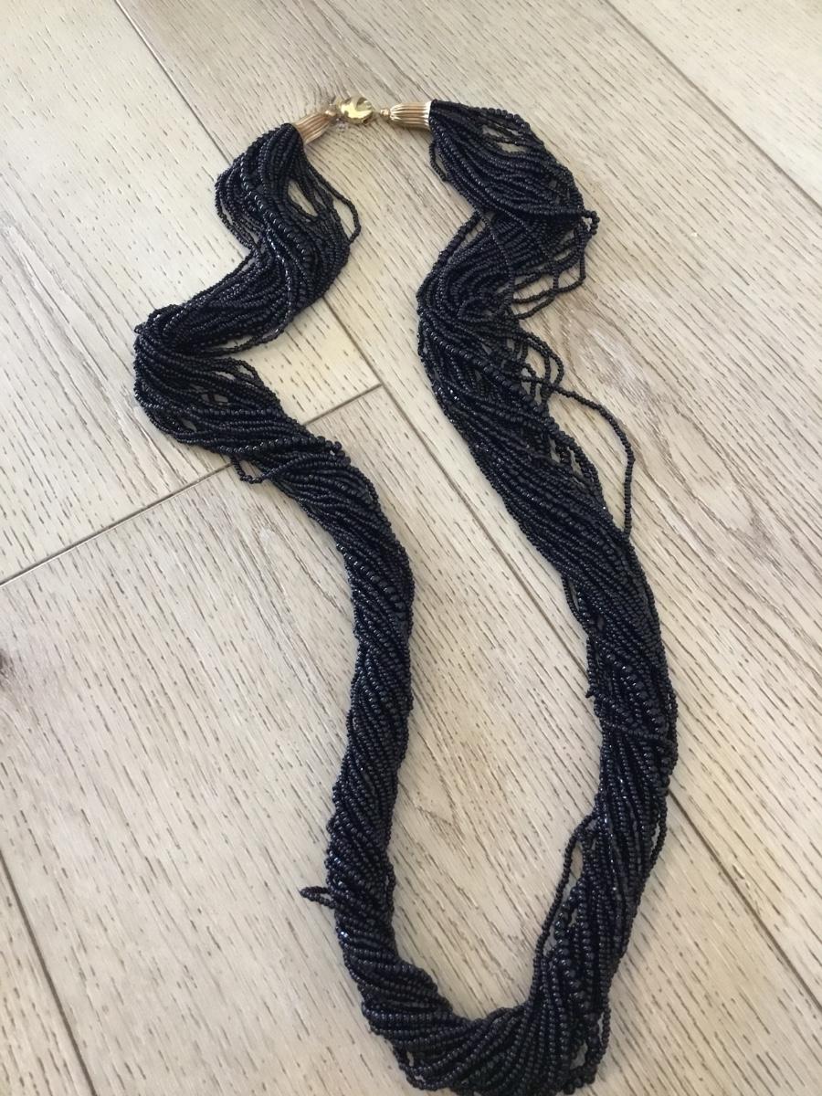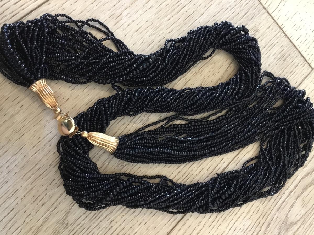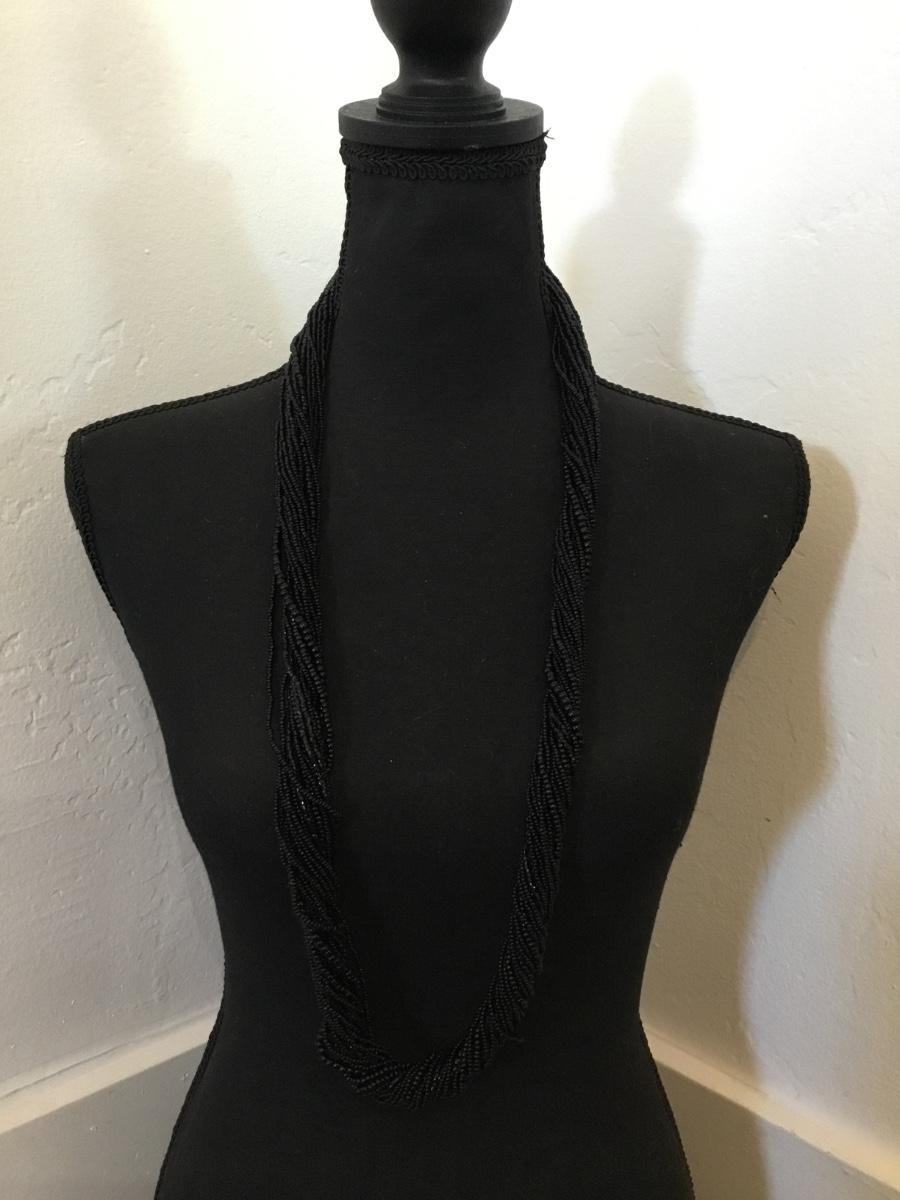 Gorgeous, vintage jet, black glass seed bead, braided statement necklace very beautiful excellent condition