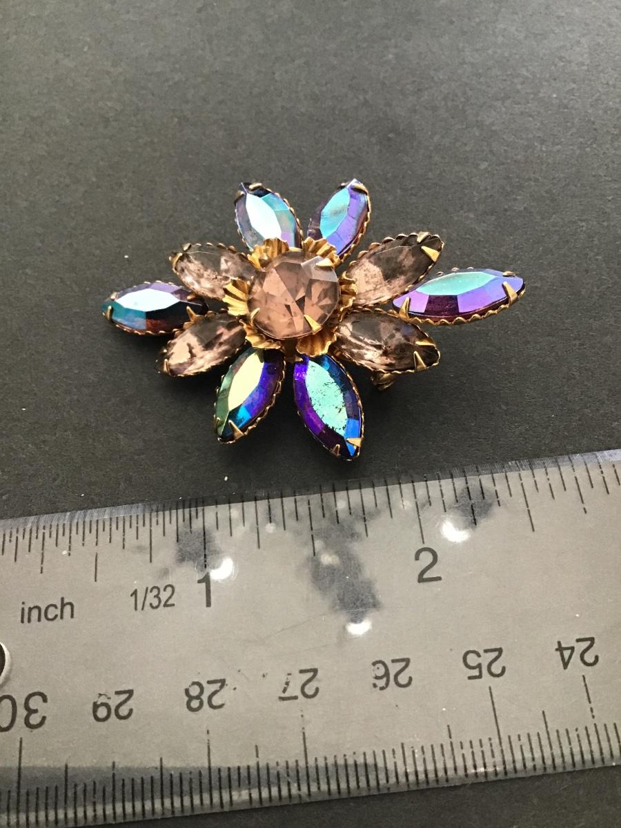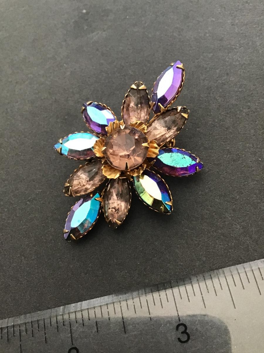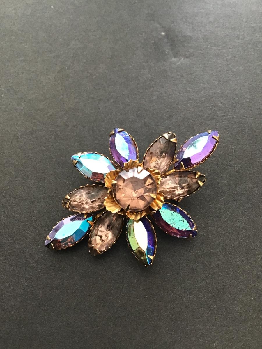 Gorgeous vintage Juliana Delizza & Elster flower, brooch, aurora borealis, faceted, rhinestones, gold toned, beautiful craftsmanship
