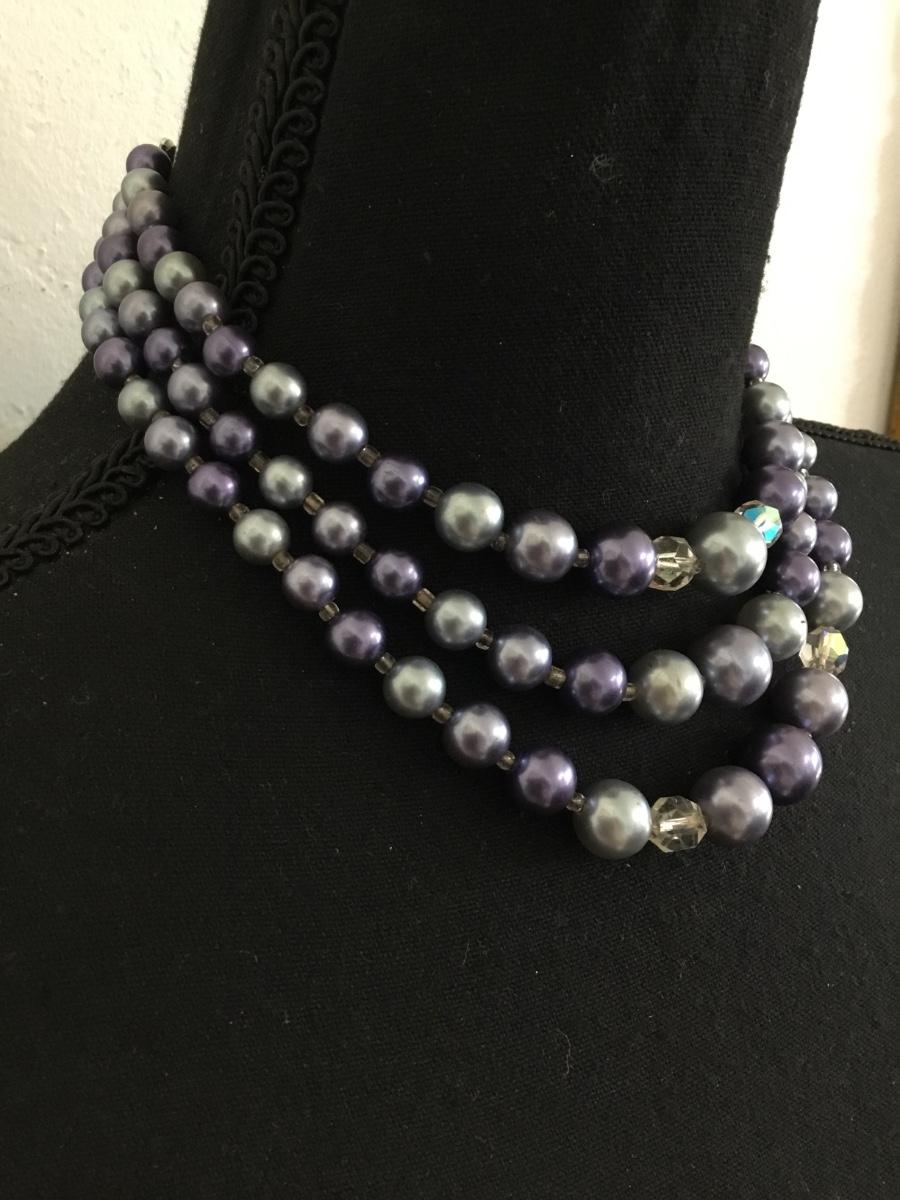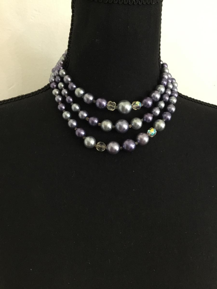 Gorgeous, vintage light, purple light, blue beaded, crystal beaded, multi layer, statement, necklace