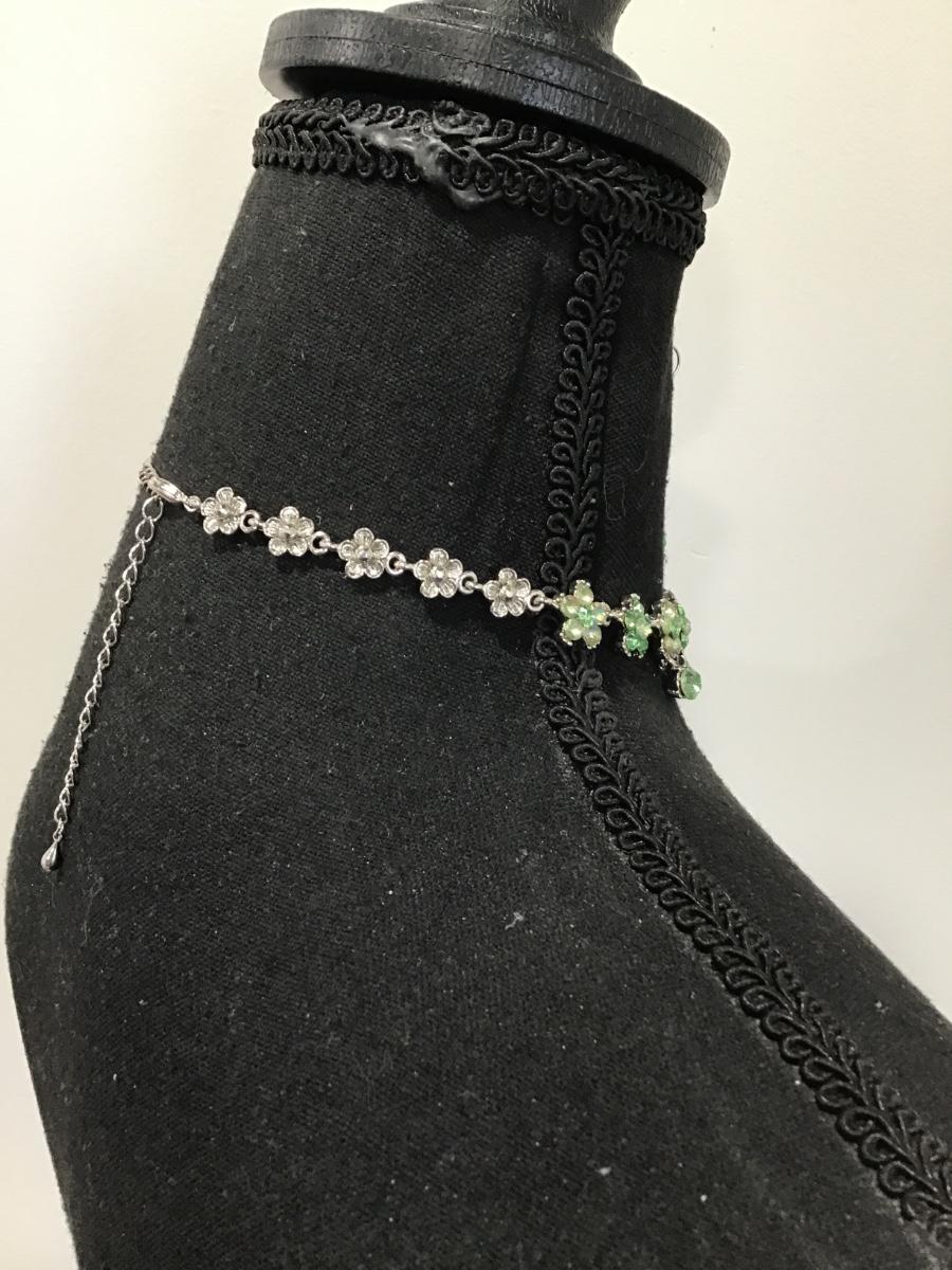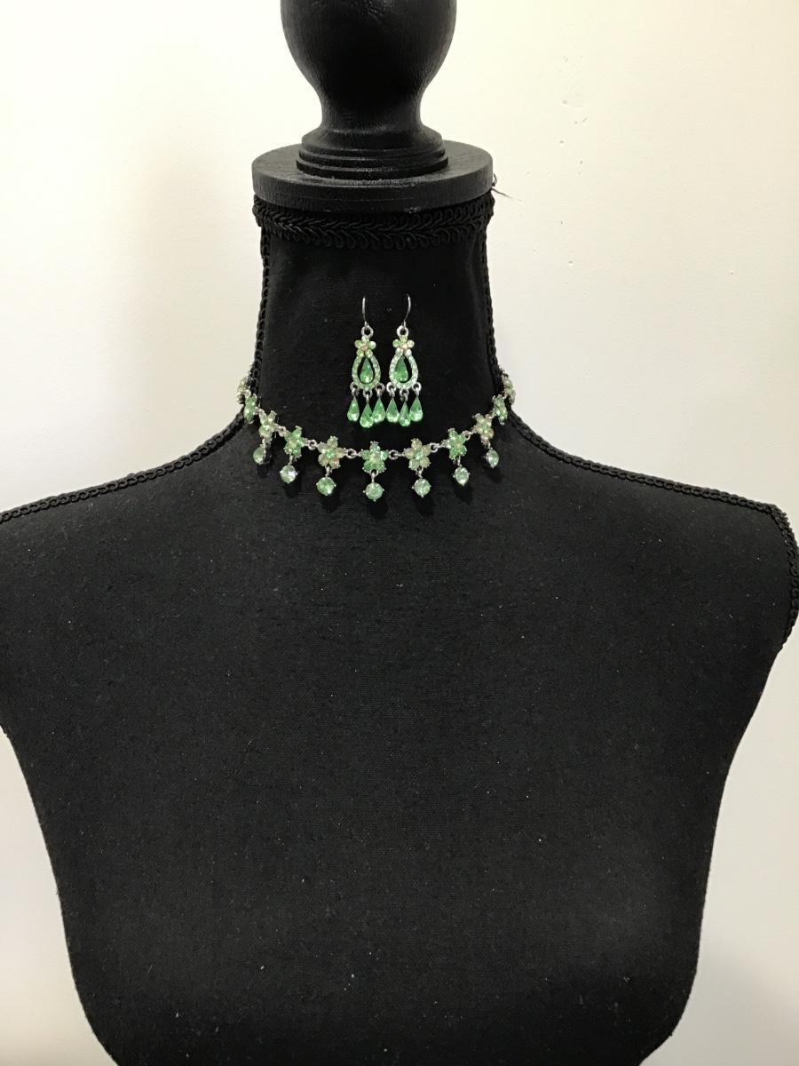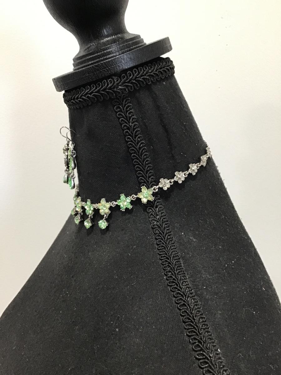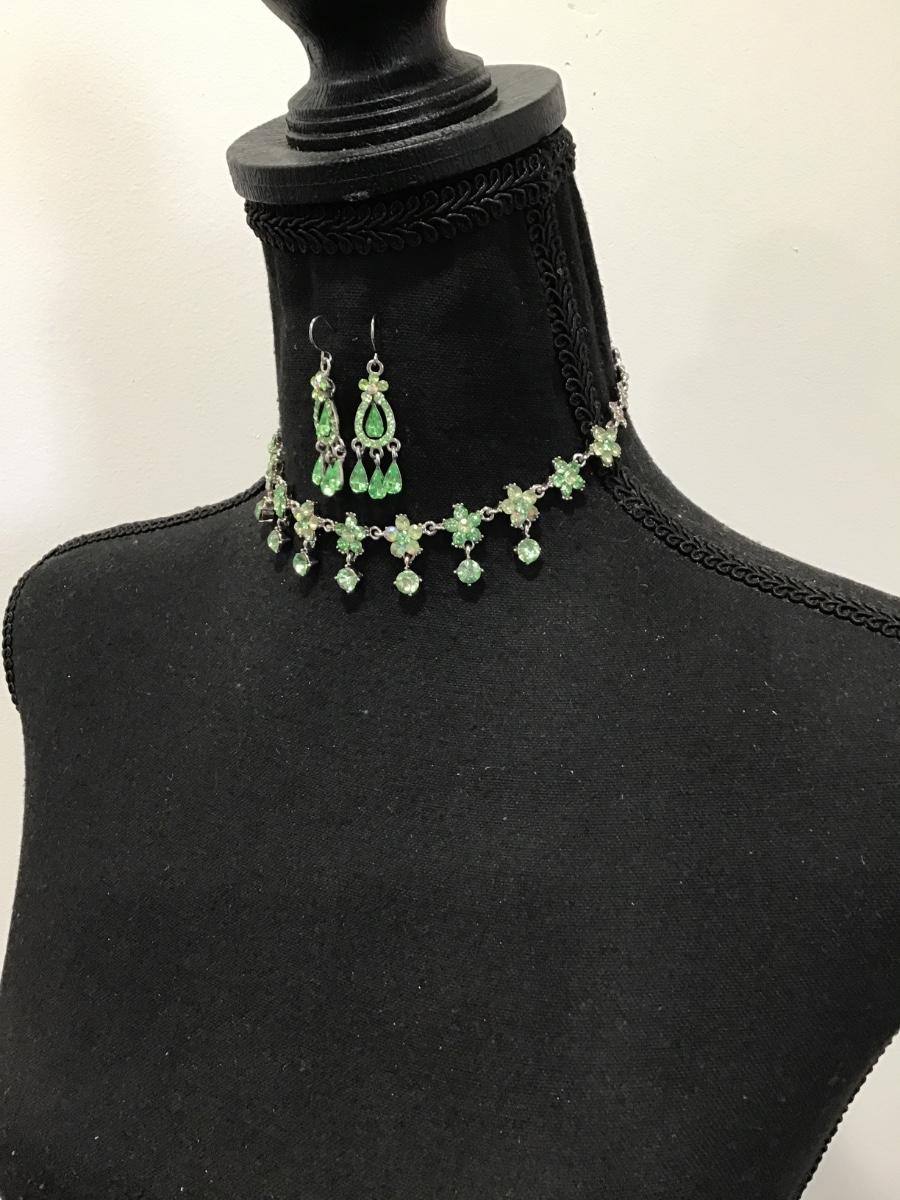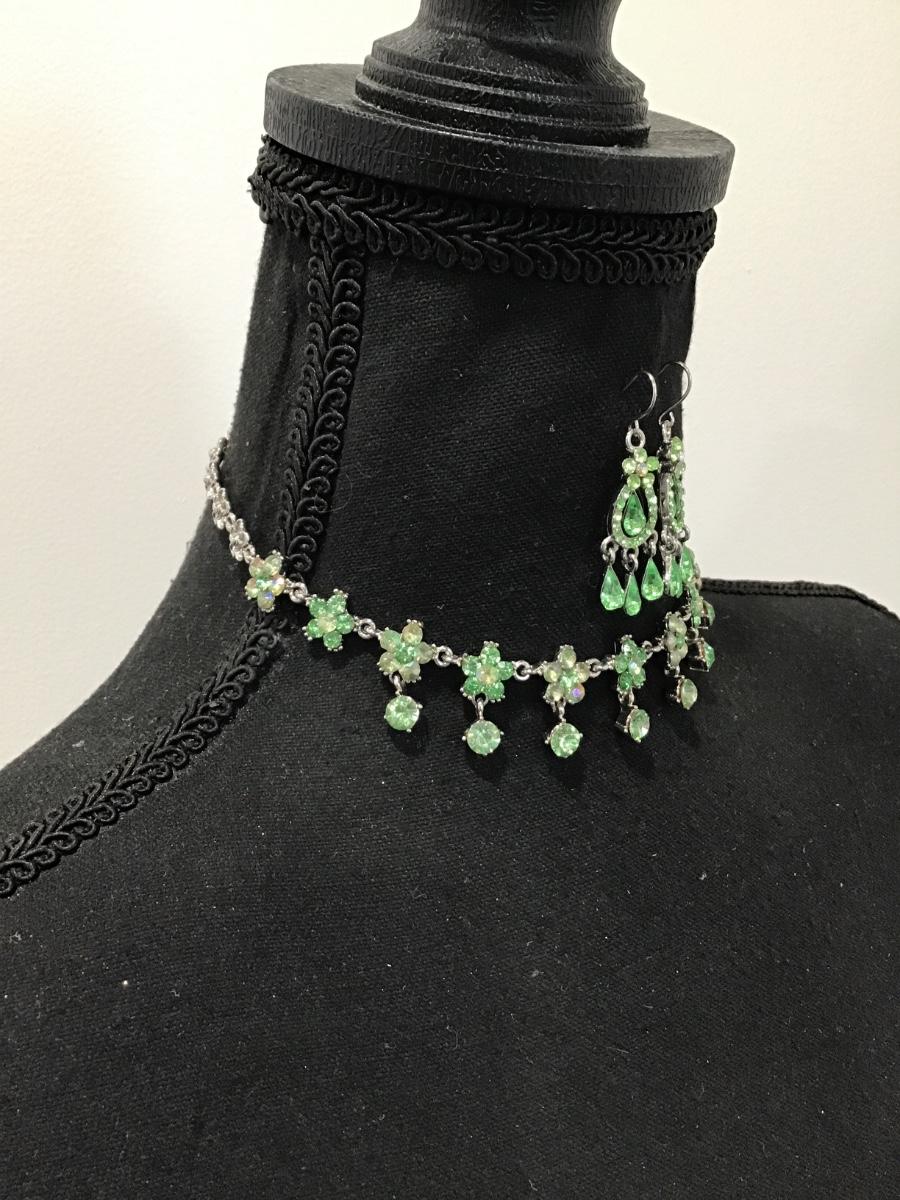 Gorgeous, vintage, lime, green rhinestone flower, choker necklace, and matching earrings set