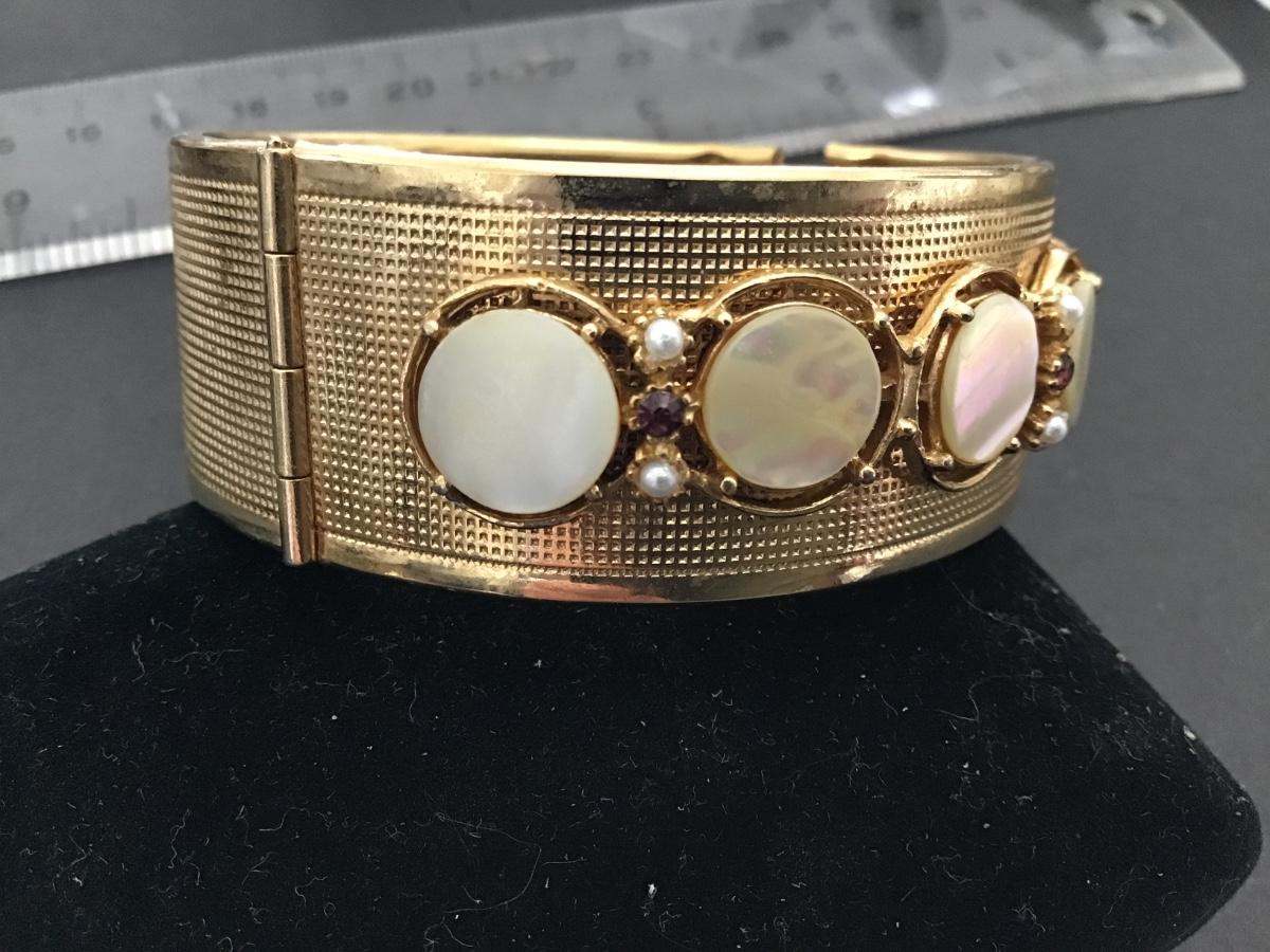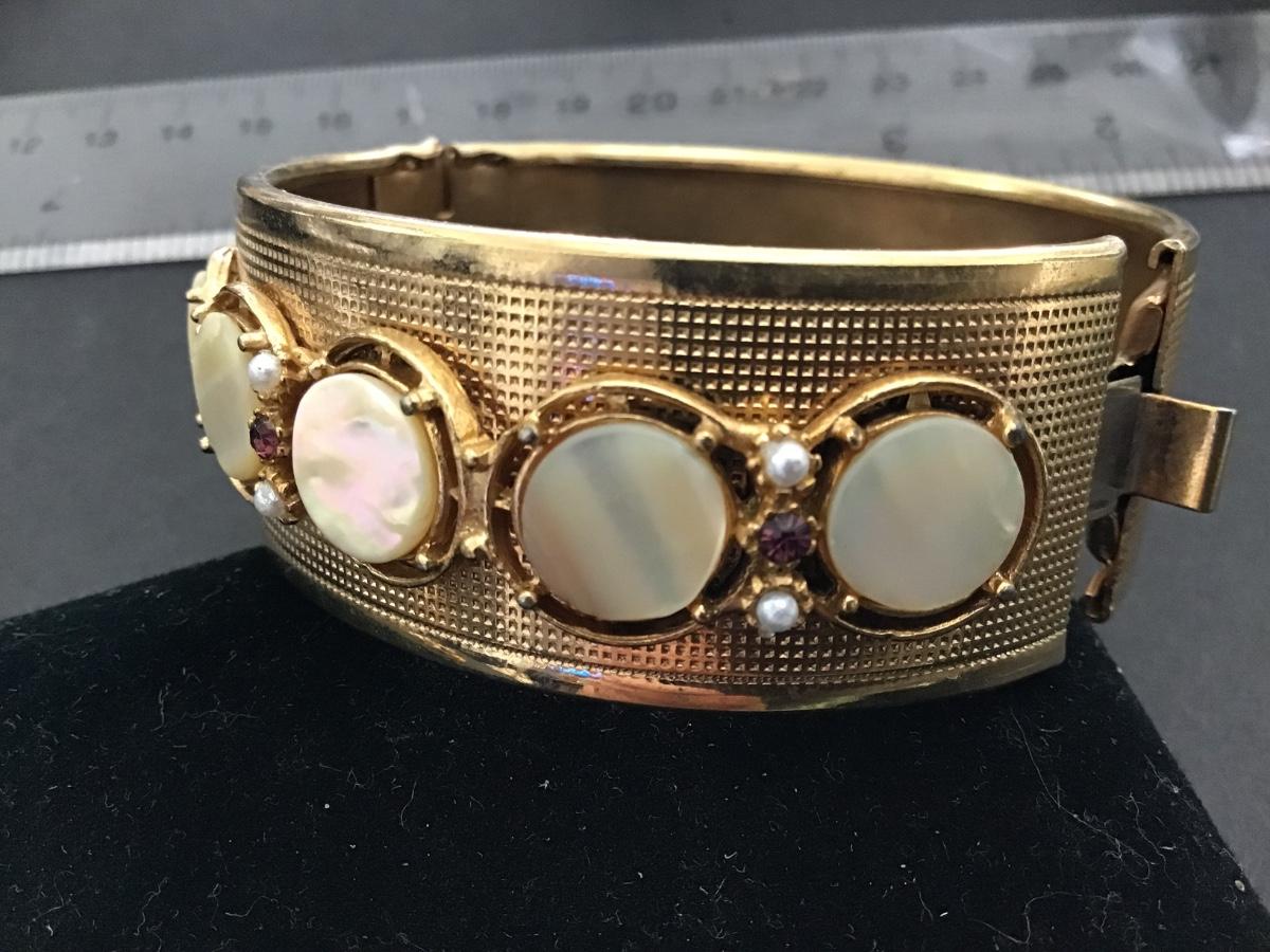 Gorgeous Vintage Locking Bracelet MOP Rhinestone.