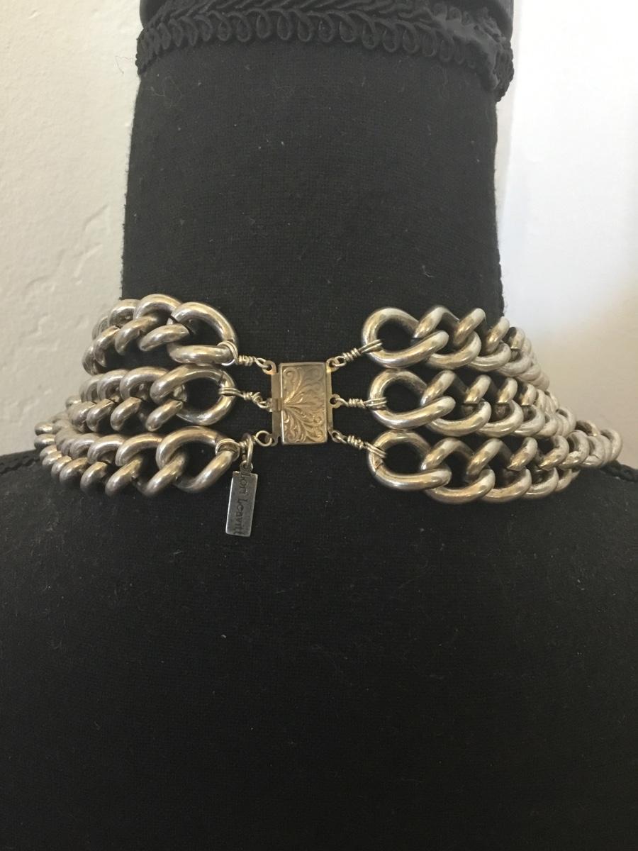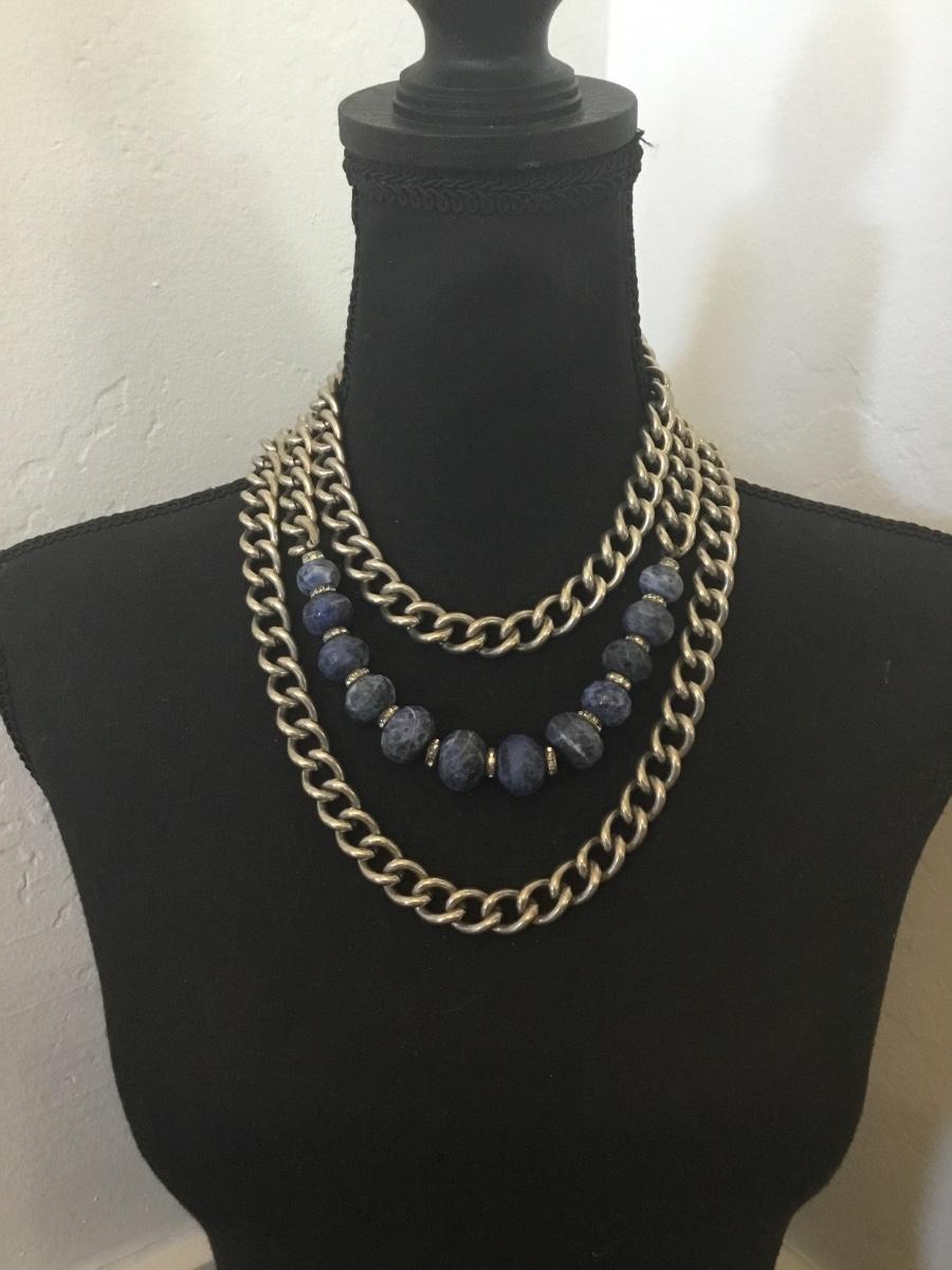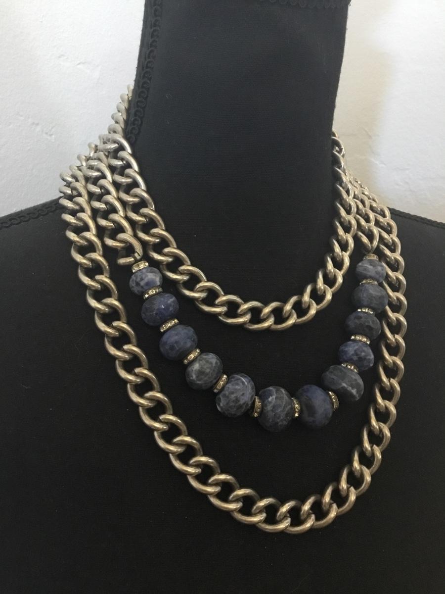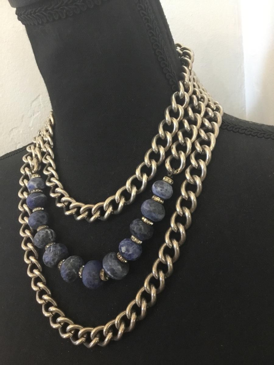 Gorgeous vintage, Lori, Levitt chunky silver tone, chain and chunky lapis stone bead statement, necklace, heavy and very chunky. Excellent quality.