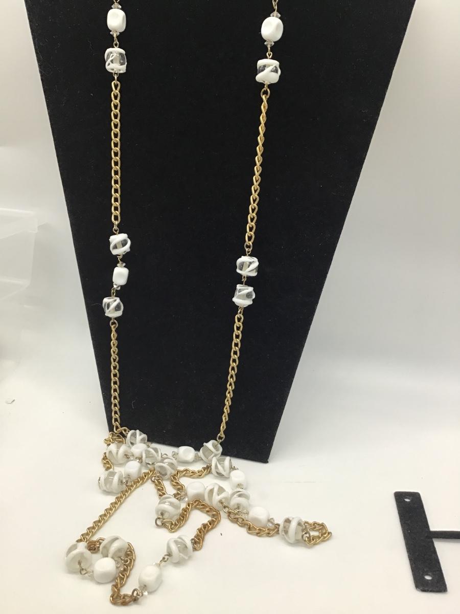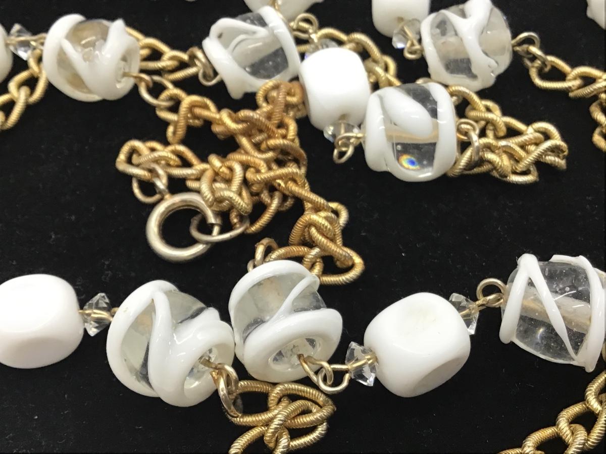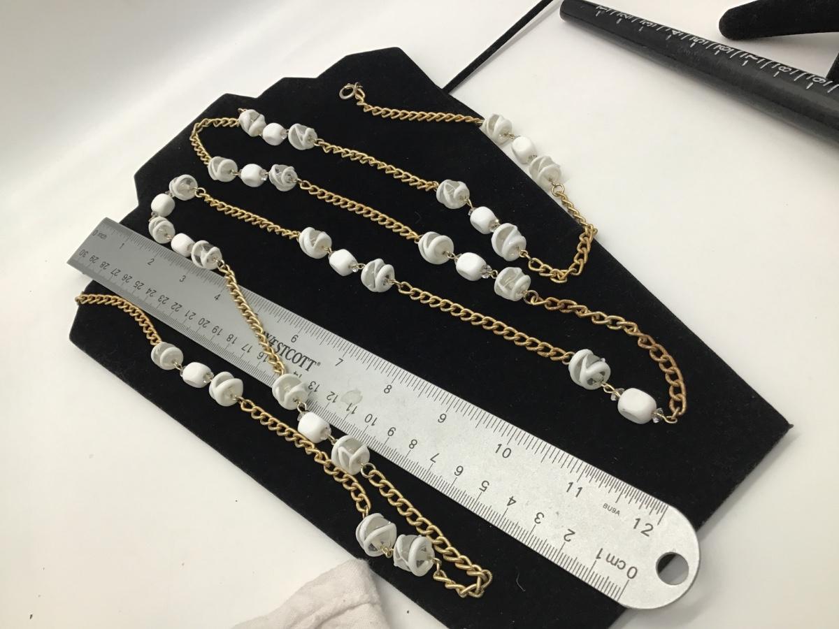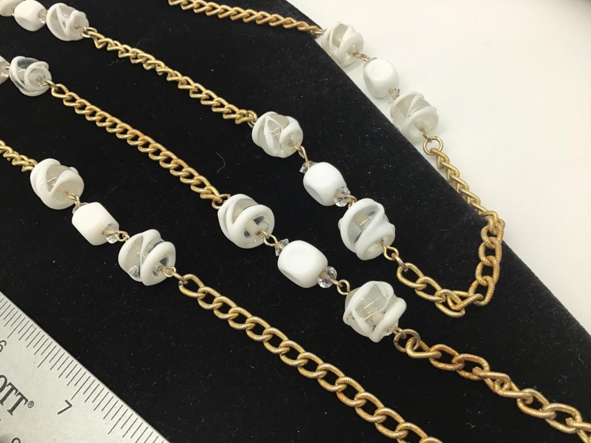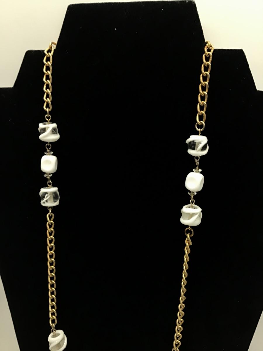 Gorgeous Vintage Milk Glass,Glass,Crystal Flapper Style Necklace