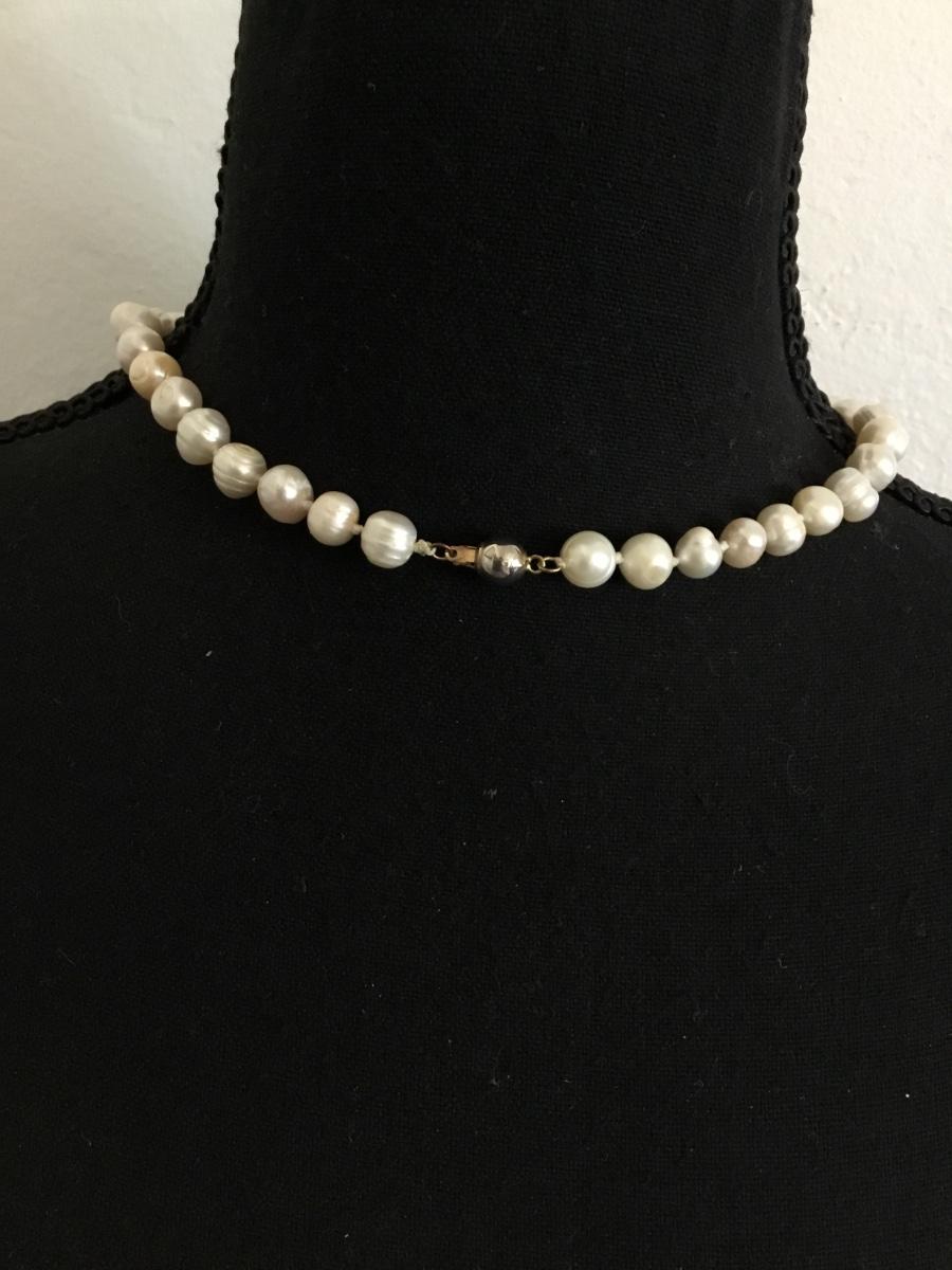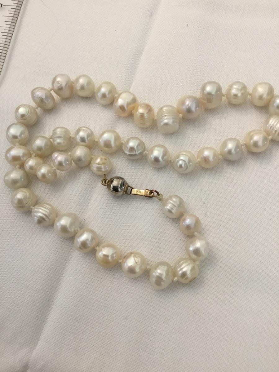Gorgeous, vintage mother of pearl/ baroque pearl necklace 14 karat gold clasp
