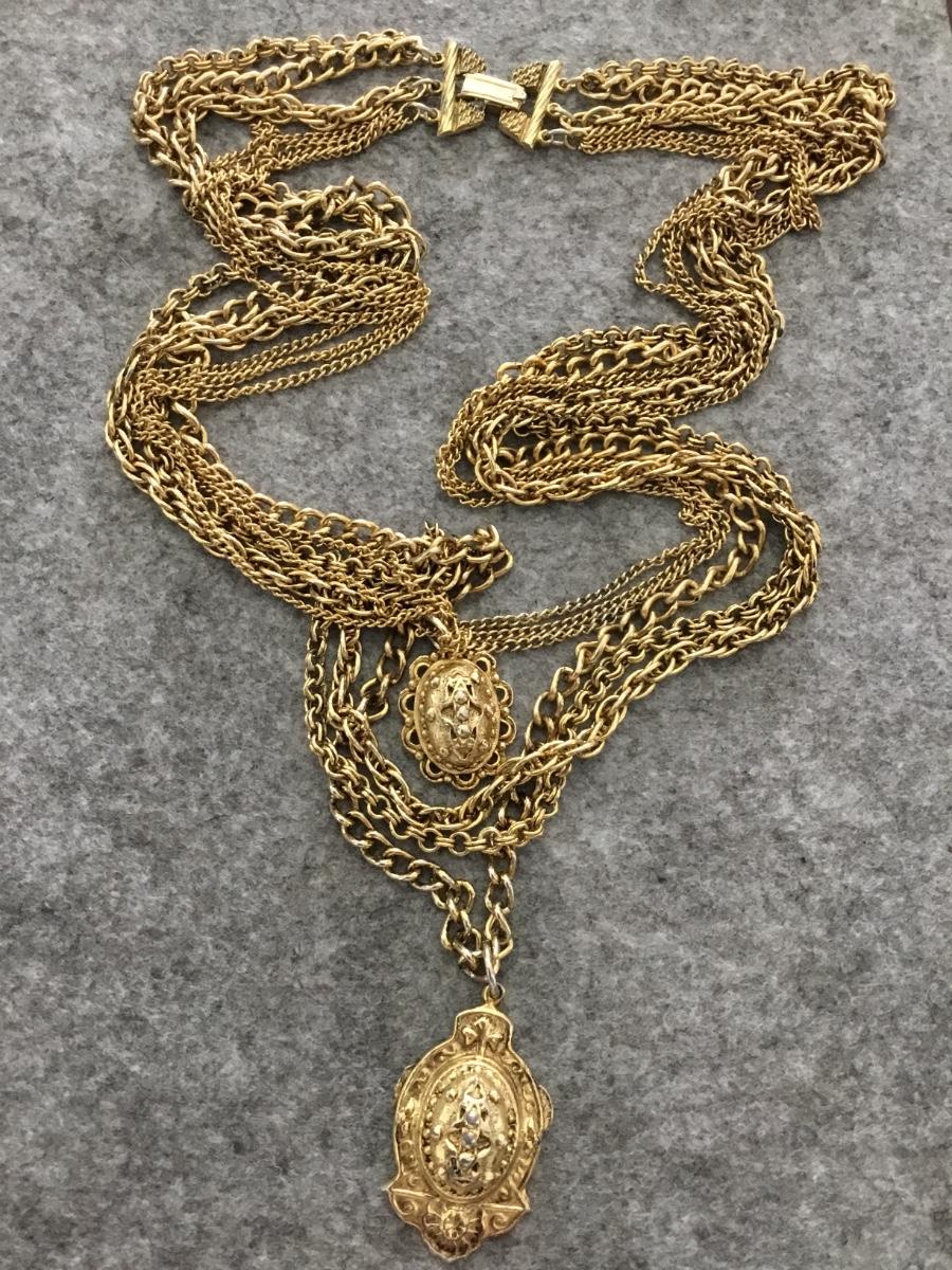 Gorgeous, vintage, multi layer, gold toned, chain, statement necklace