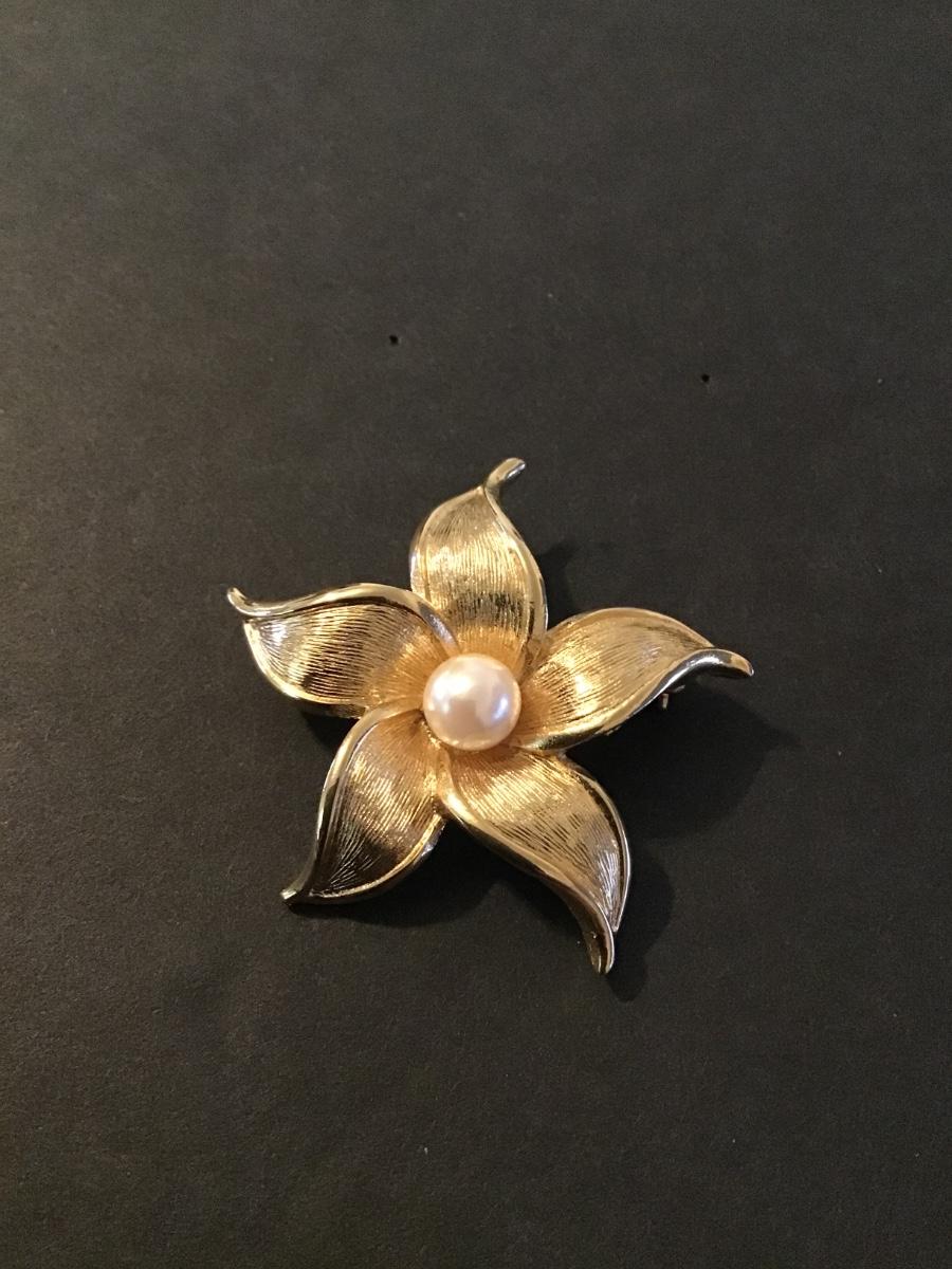 Gorgeous vintage Sarah Coventry faux pearl gold tone flower brooch