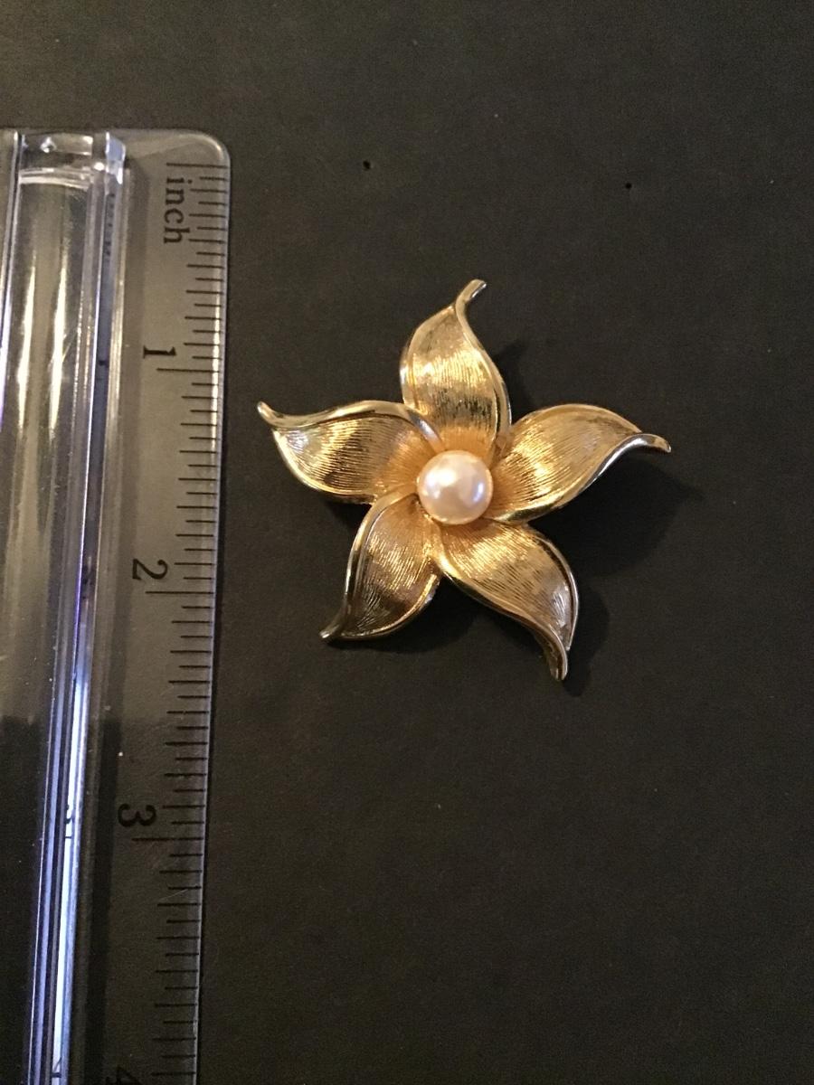 Gorgeous vintage Sarah Coventry faux pearl gold tone flower brooch Please see attached photos