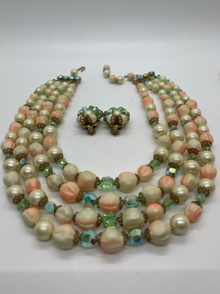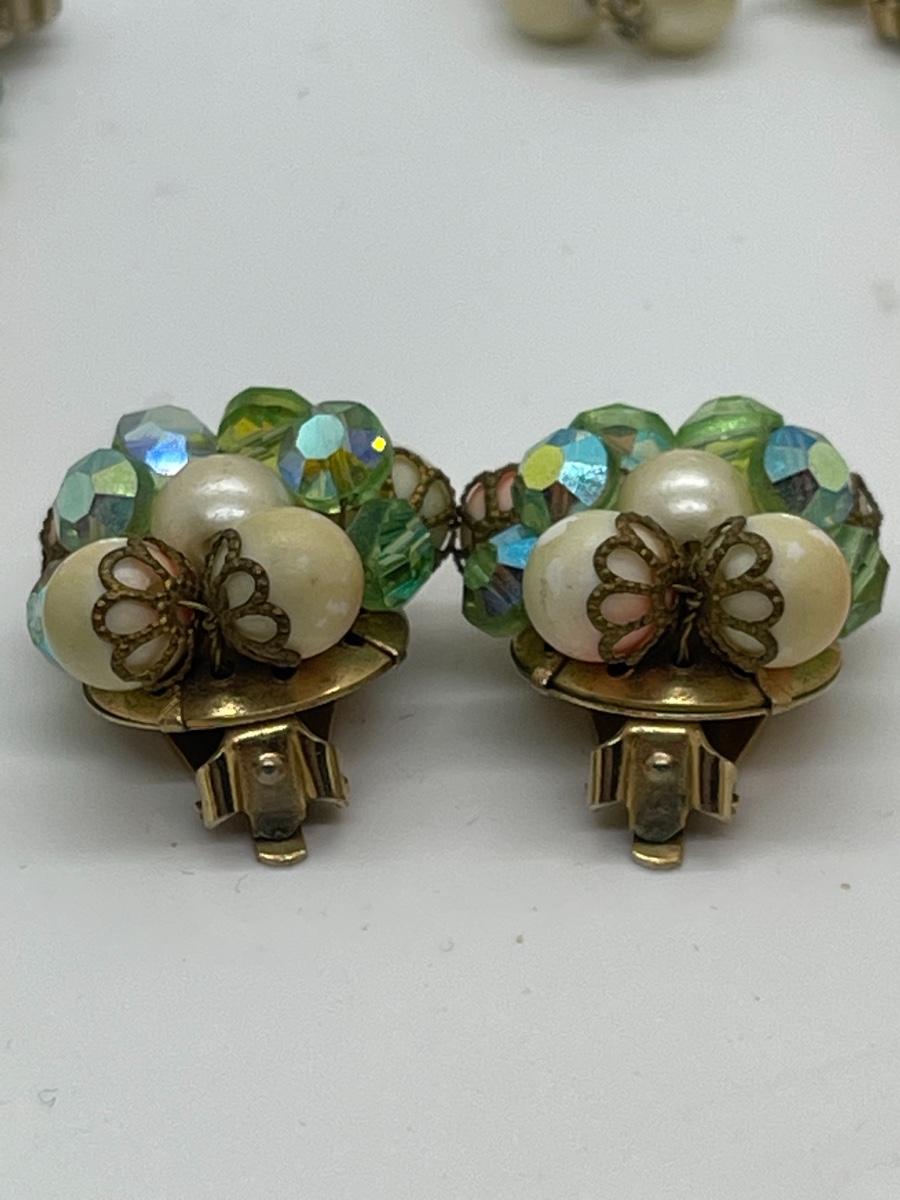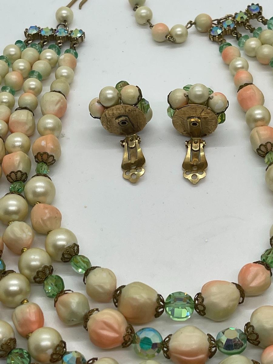 Beautiful vintage matching set. Can’t find a maker. Beads are unusual and so eyecatching. The colors are amazing!