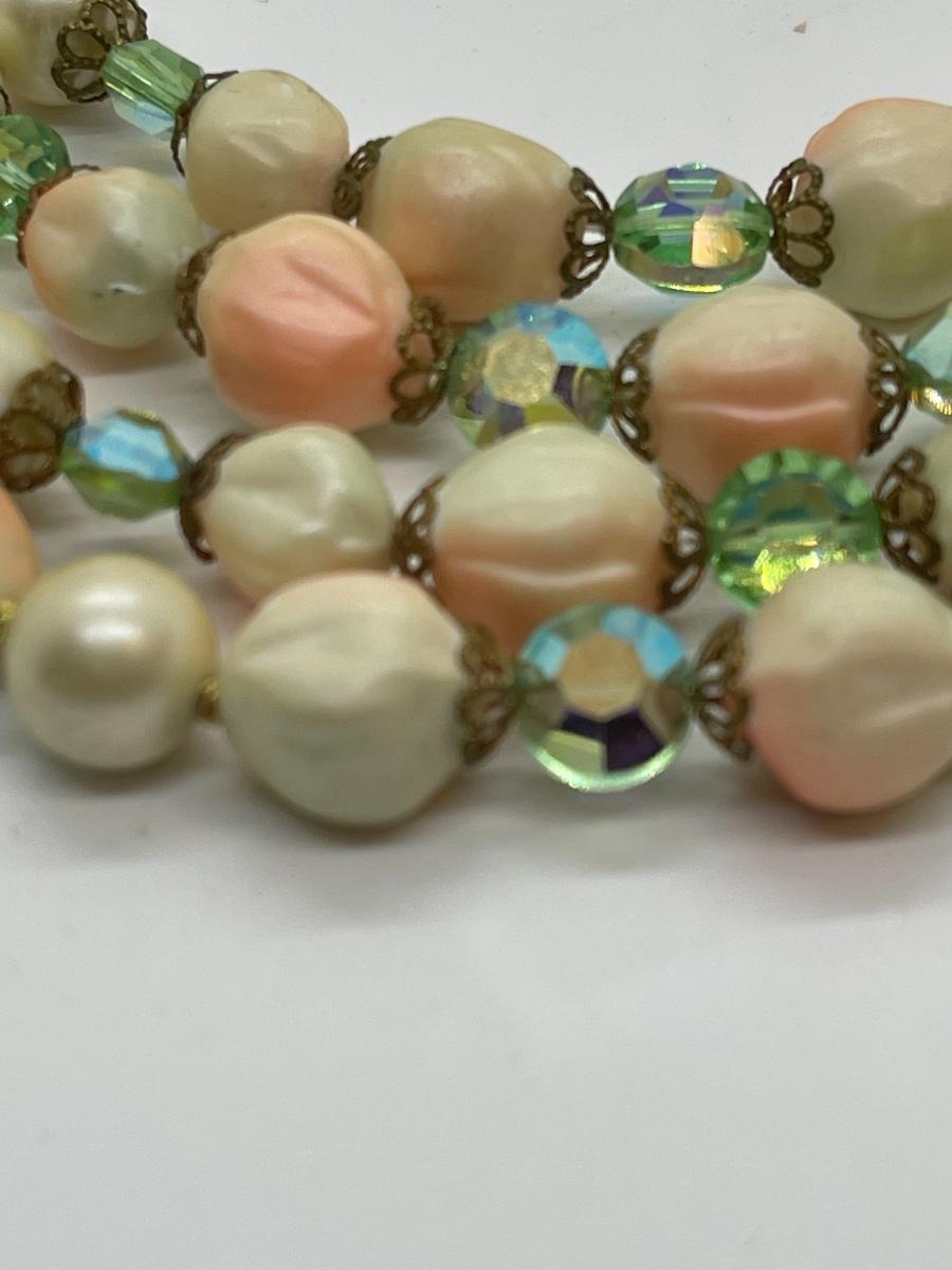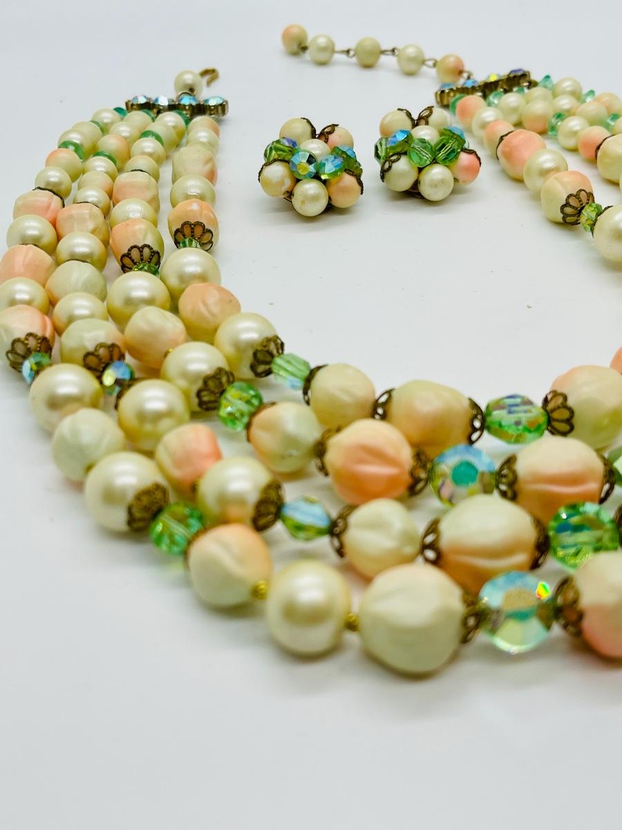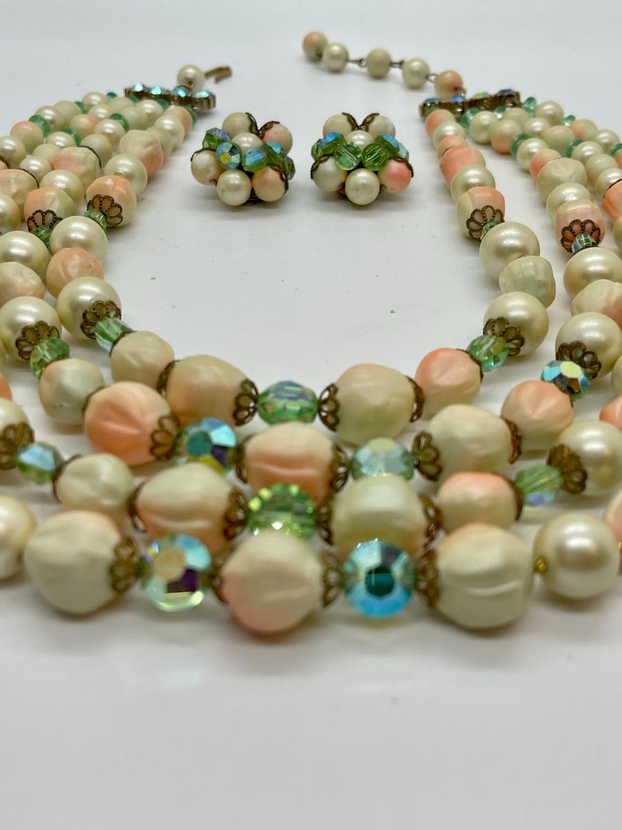 Beautiful vintage matching set. Can’t find a maker. Beads are unusual and so eyecatching. The colors are amazing!